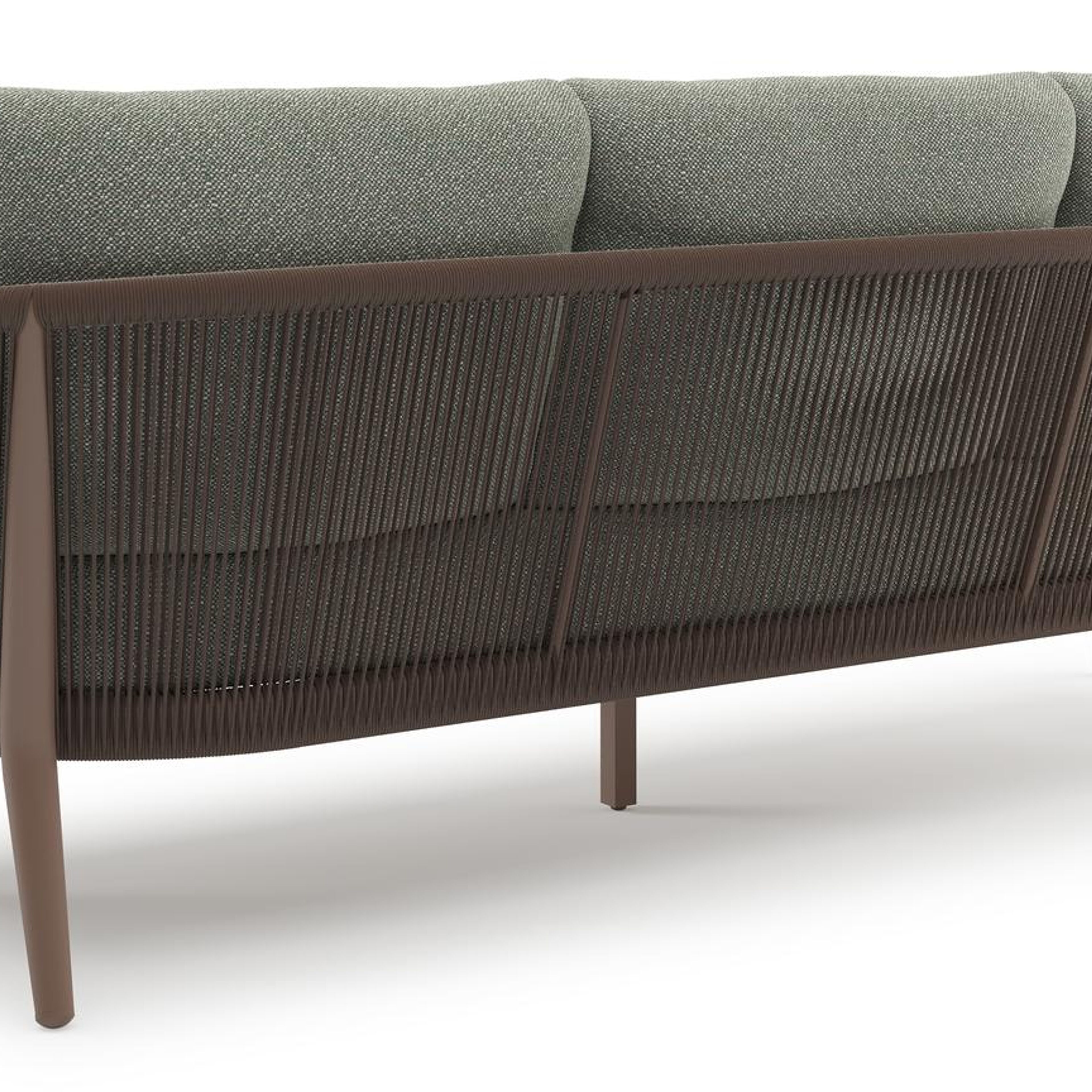 Canapé de jardin Orso en aluminium taupe en corde ronde tissée verticalement noir et coussins en all weather sunbrella® luxe Savane Leaf | Exterioo mobilier de jardin