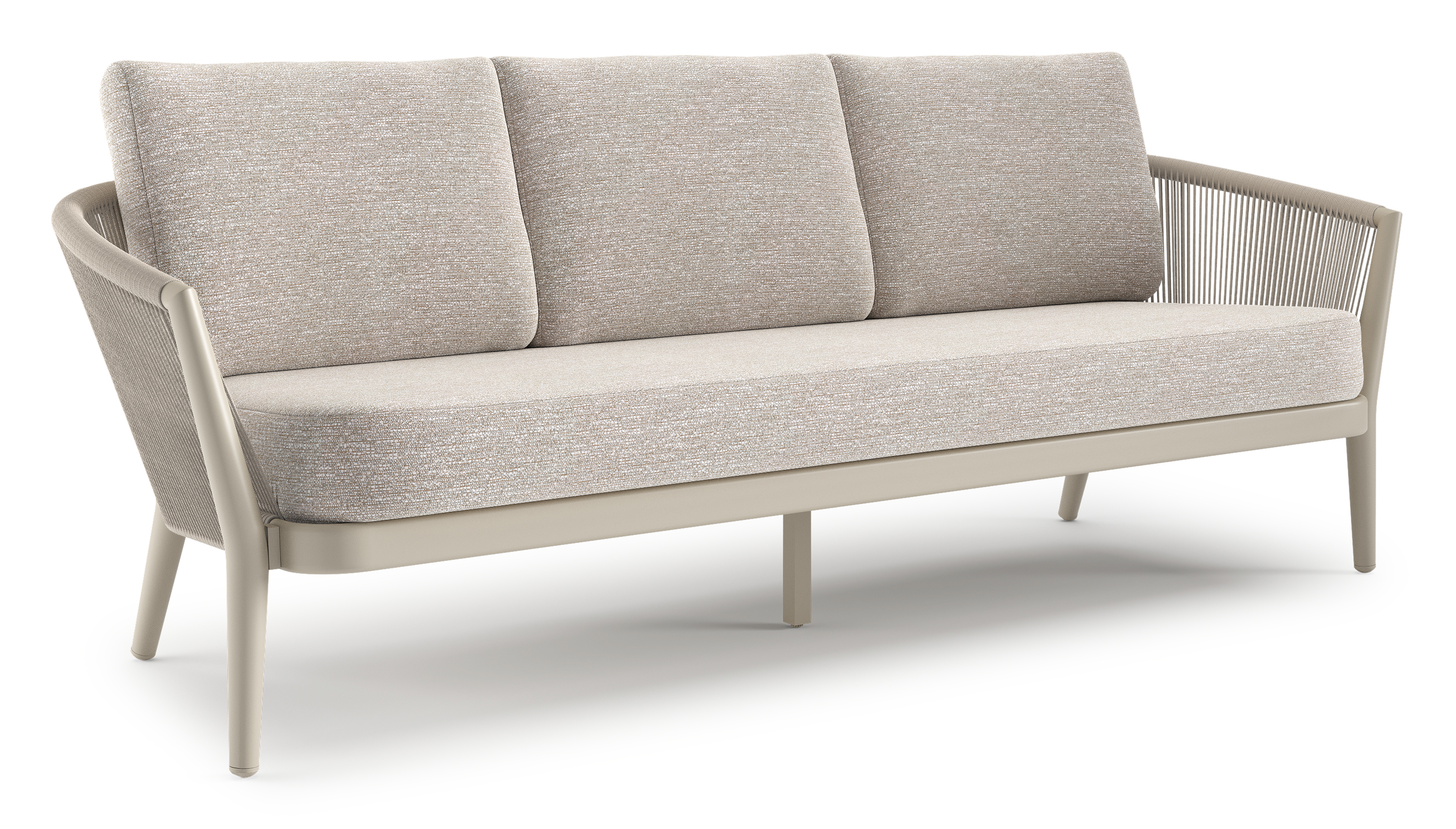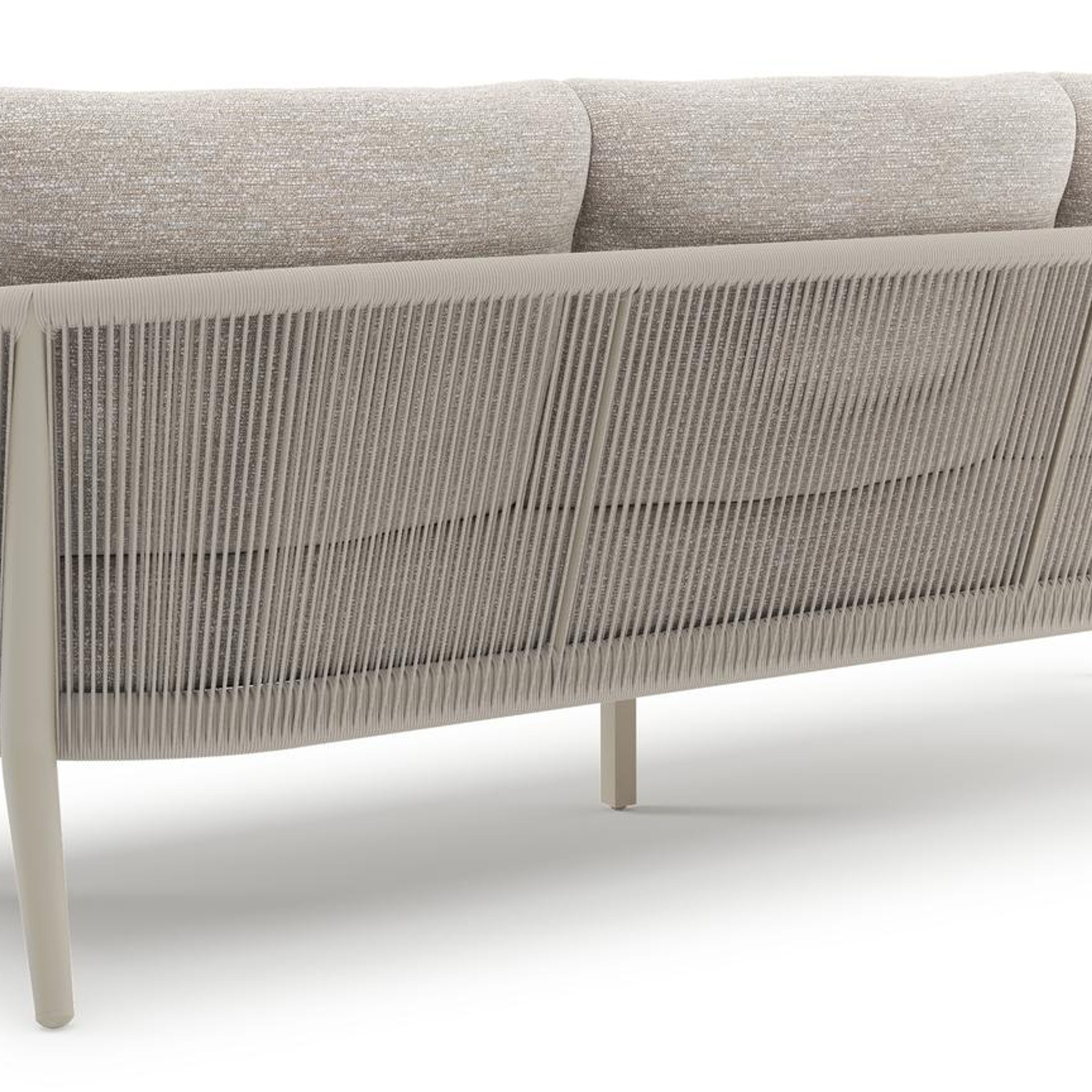 Canapé de jardin Orso en aluminium beige en corde ronde tissée verticalement beige et coussins en all weather sunbrella® luxe Tundra Sand | Exterioo mobilier de jardin