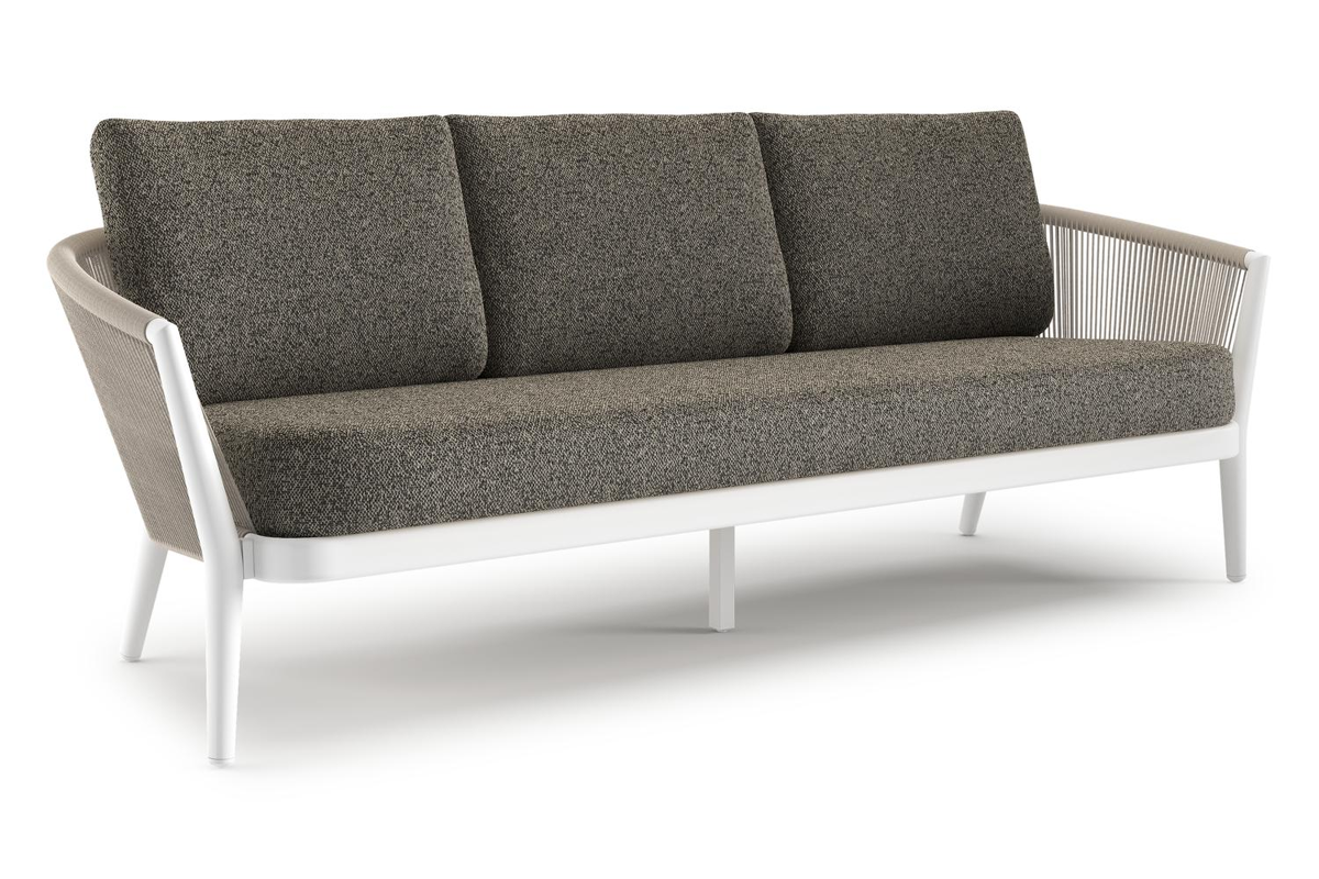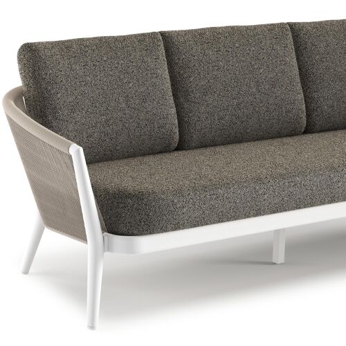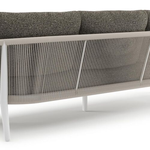 Canapé de jardin Orso en aluminium blanc en corde ronde tissée verticalement beige et coussins en all weather cosytica Marbella Tunder | Exterioo