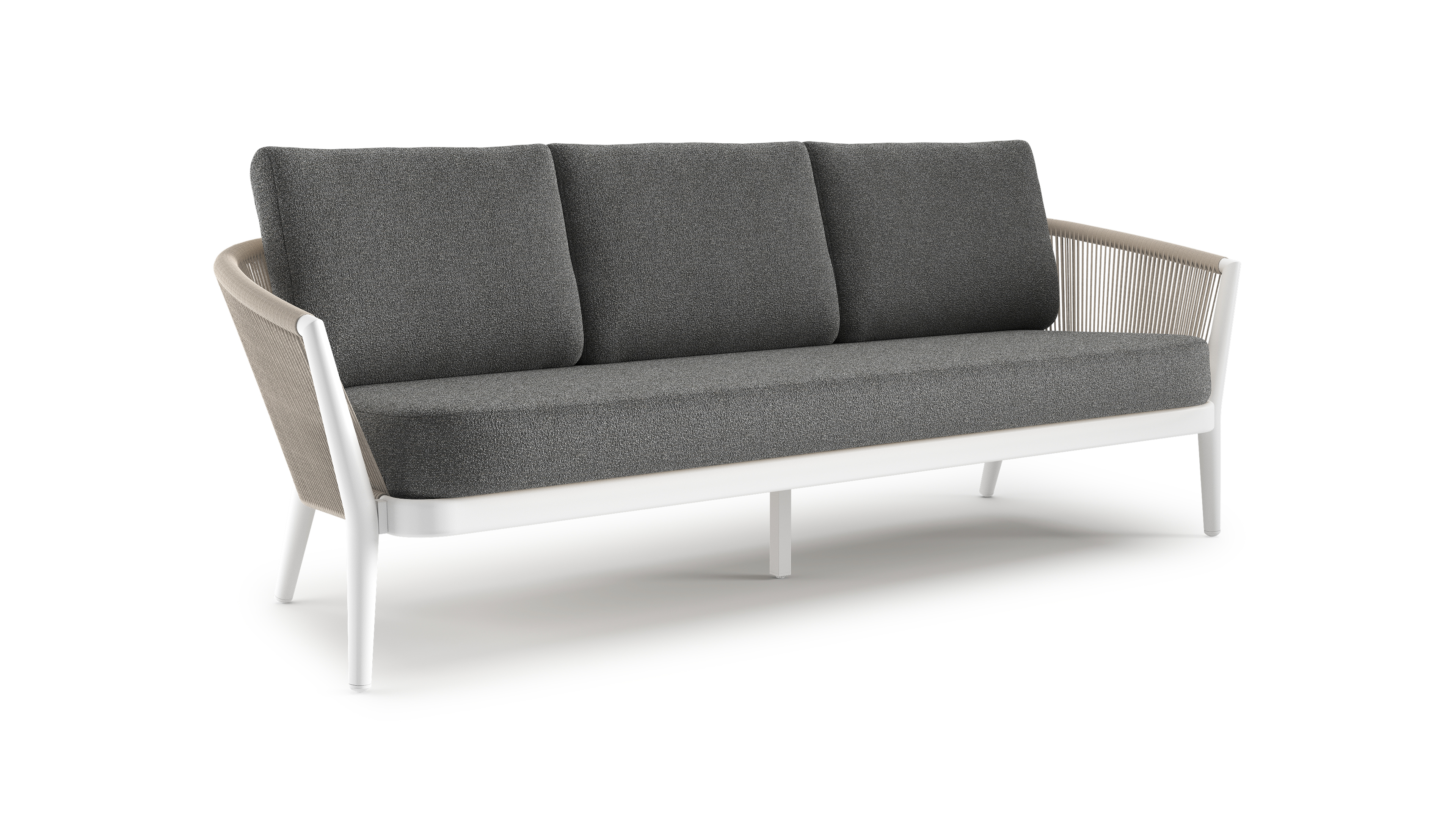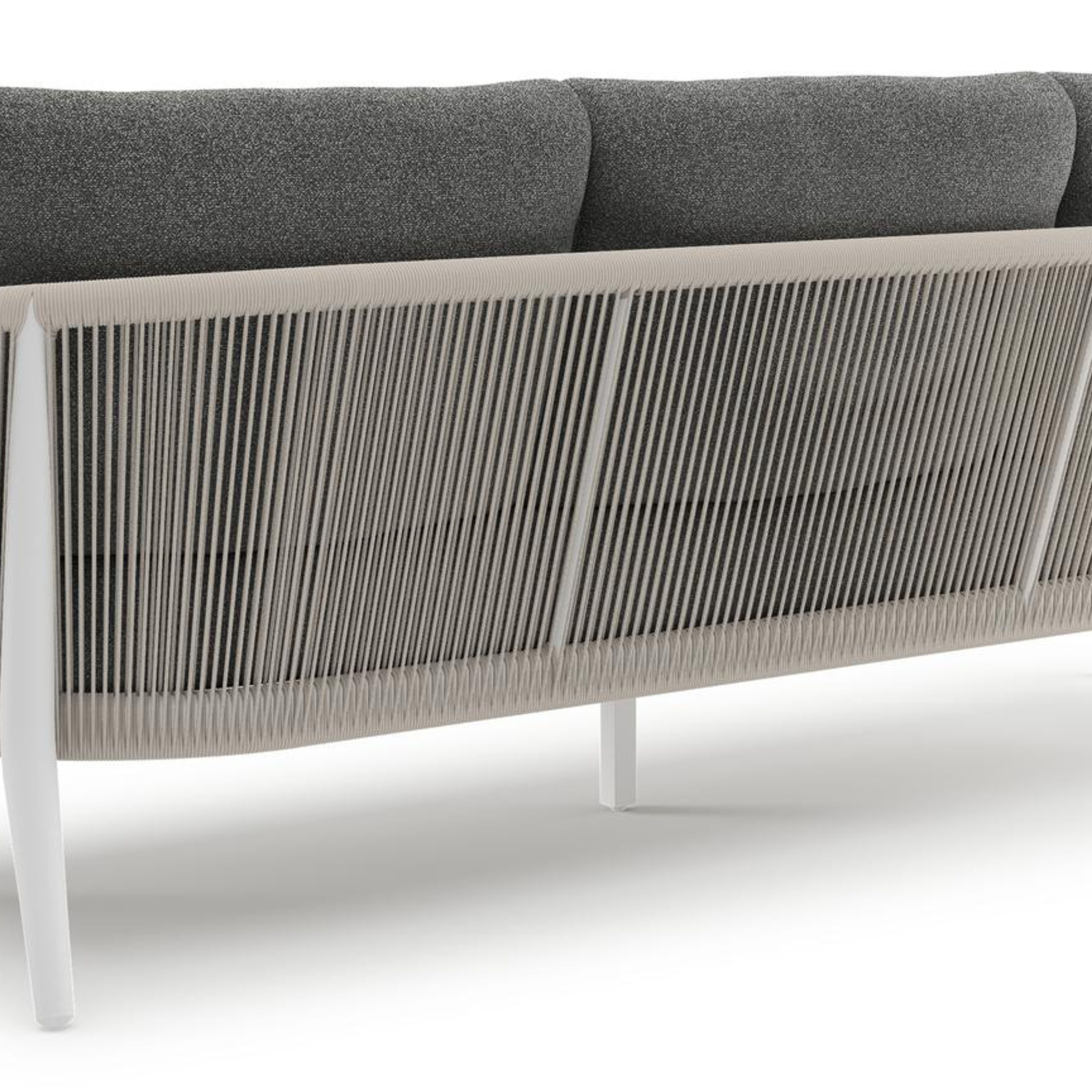 Canapé de jardin Orso en aluminium blanc en corde ronde tissée verticalement beige et coussins en all weather cosytica Catania Black | Exterioo mobilier de jardin