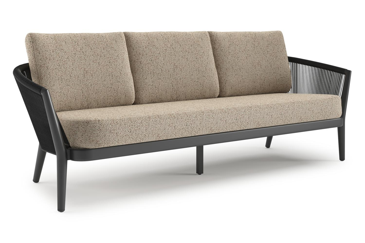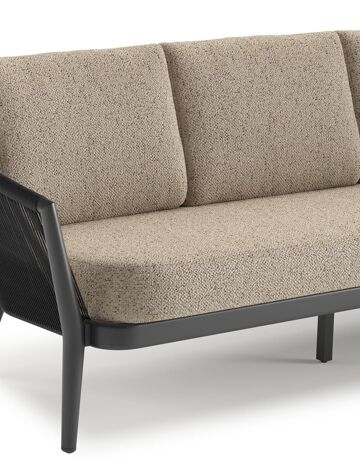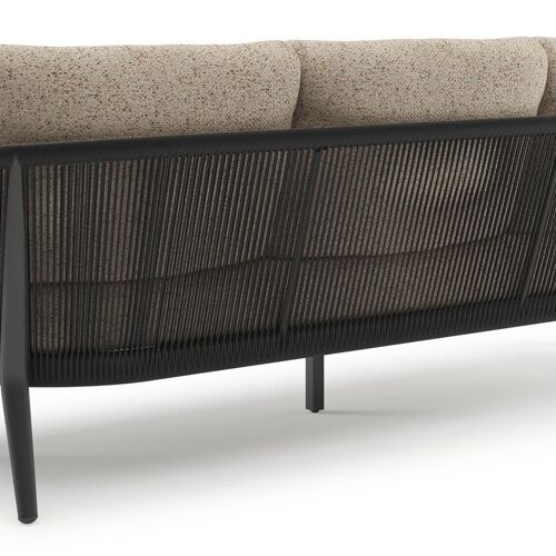 Canapé de jardin Orso en aluminium noir en corde ronde tissée verticalement noir et coussins en all weather cosytica Bora Jungle | Exterioo