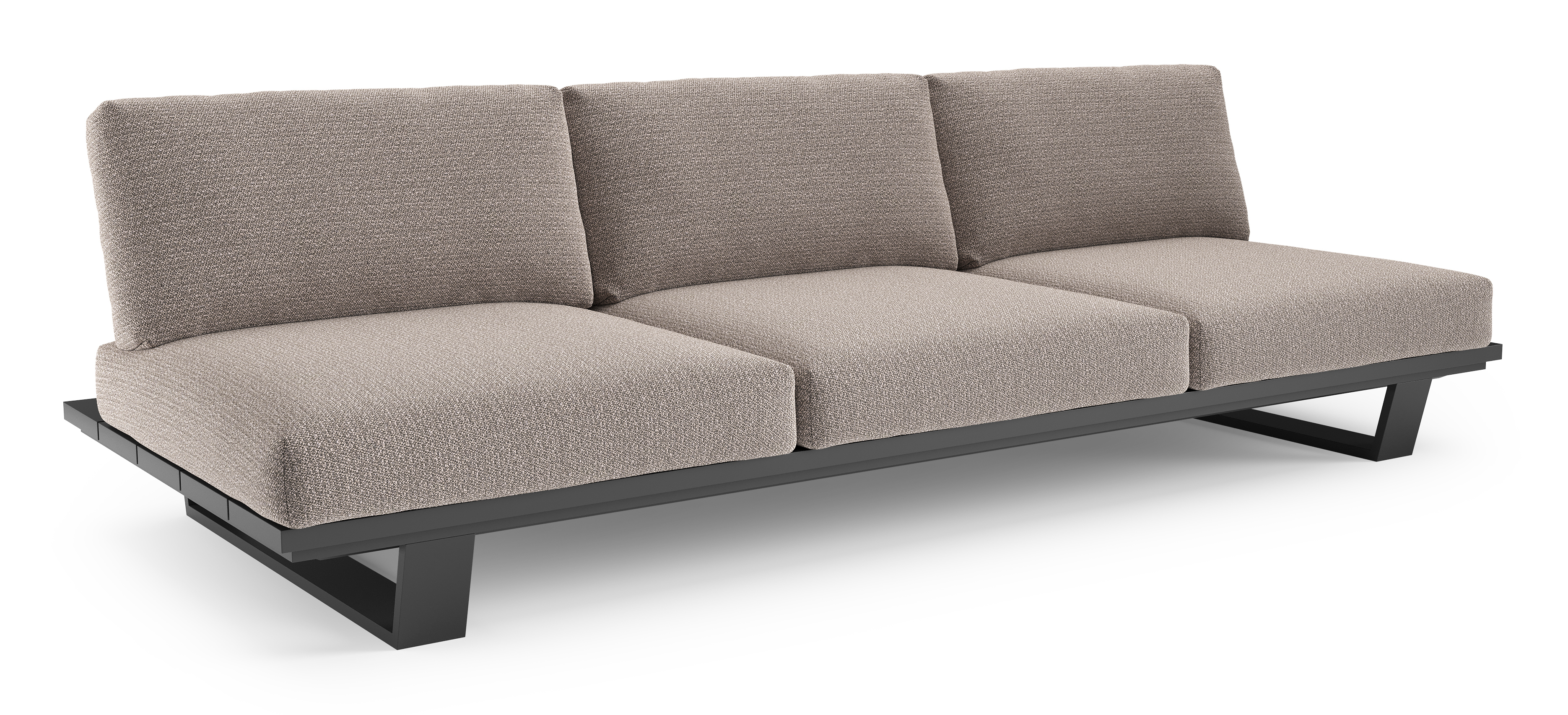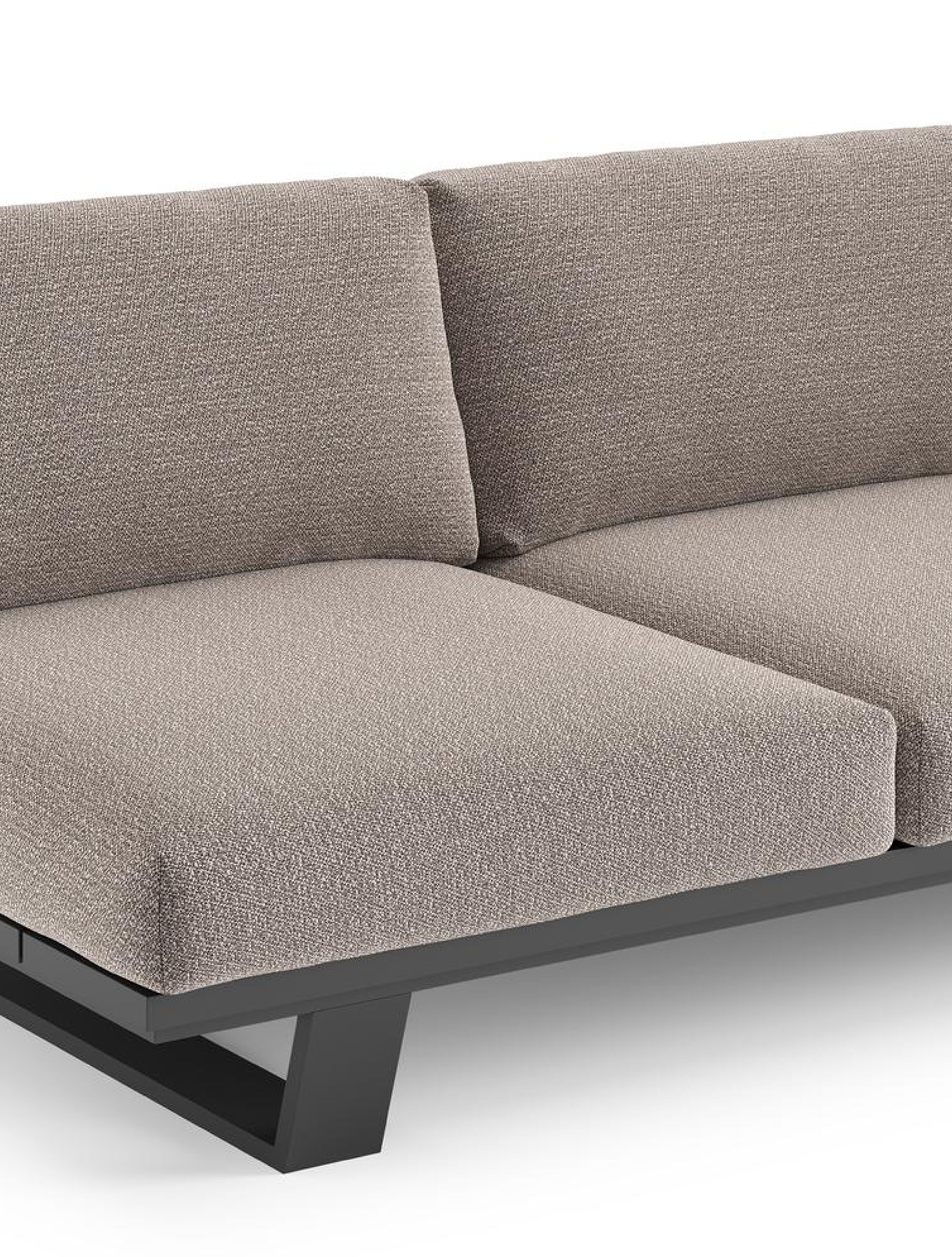 Canapé de jardin Pagino en aluminium noir et coussins en all weather sunbrella® luxe wander granite | Exterioo mobilier de jardin