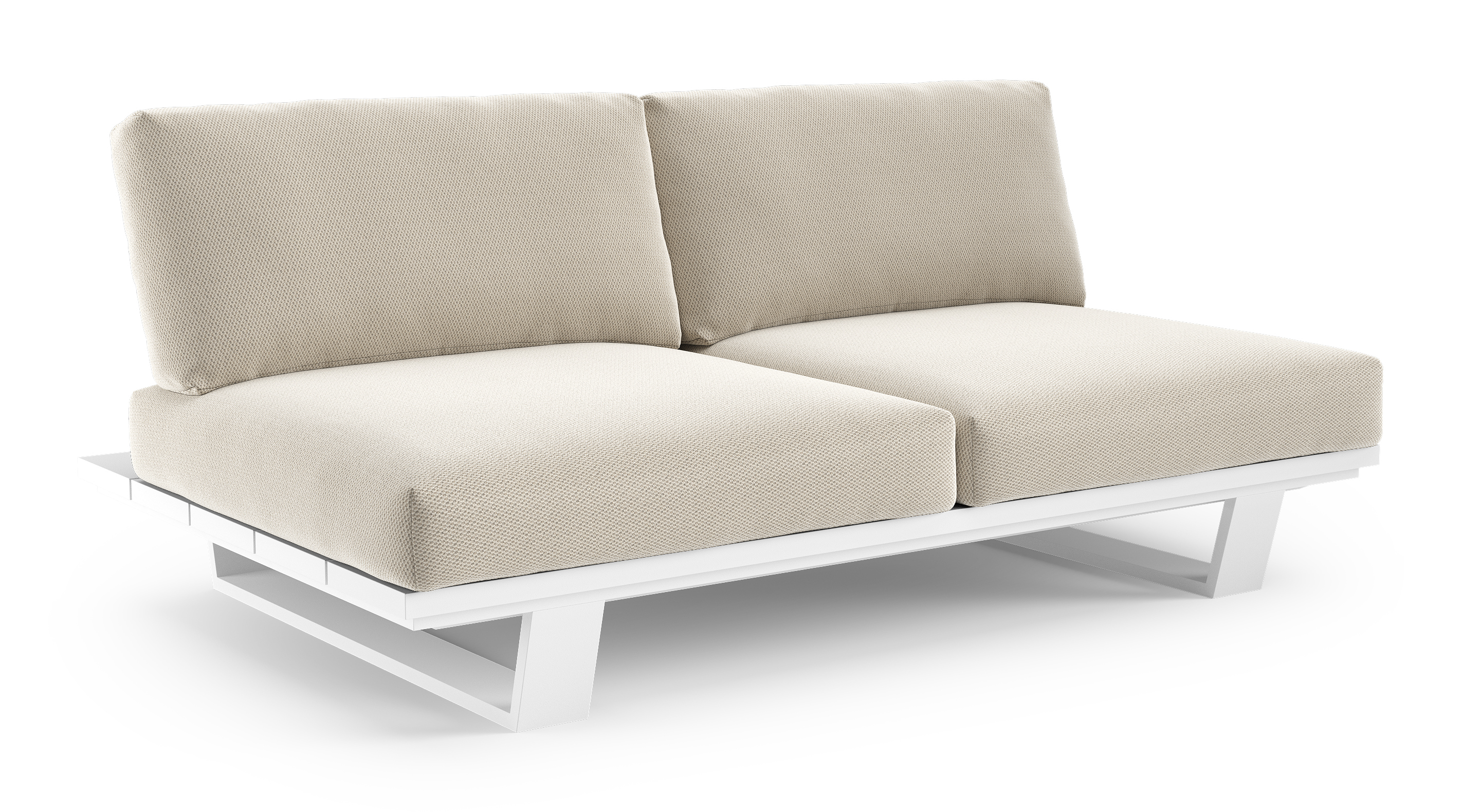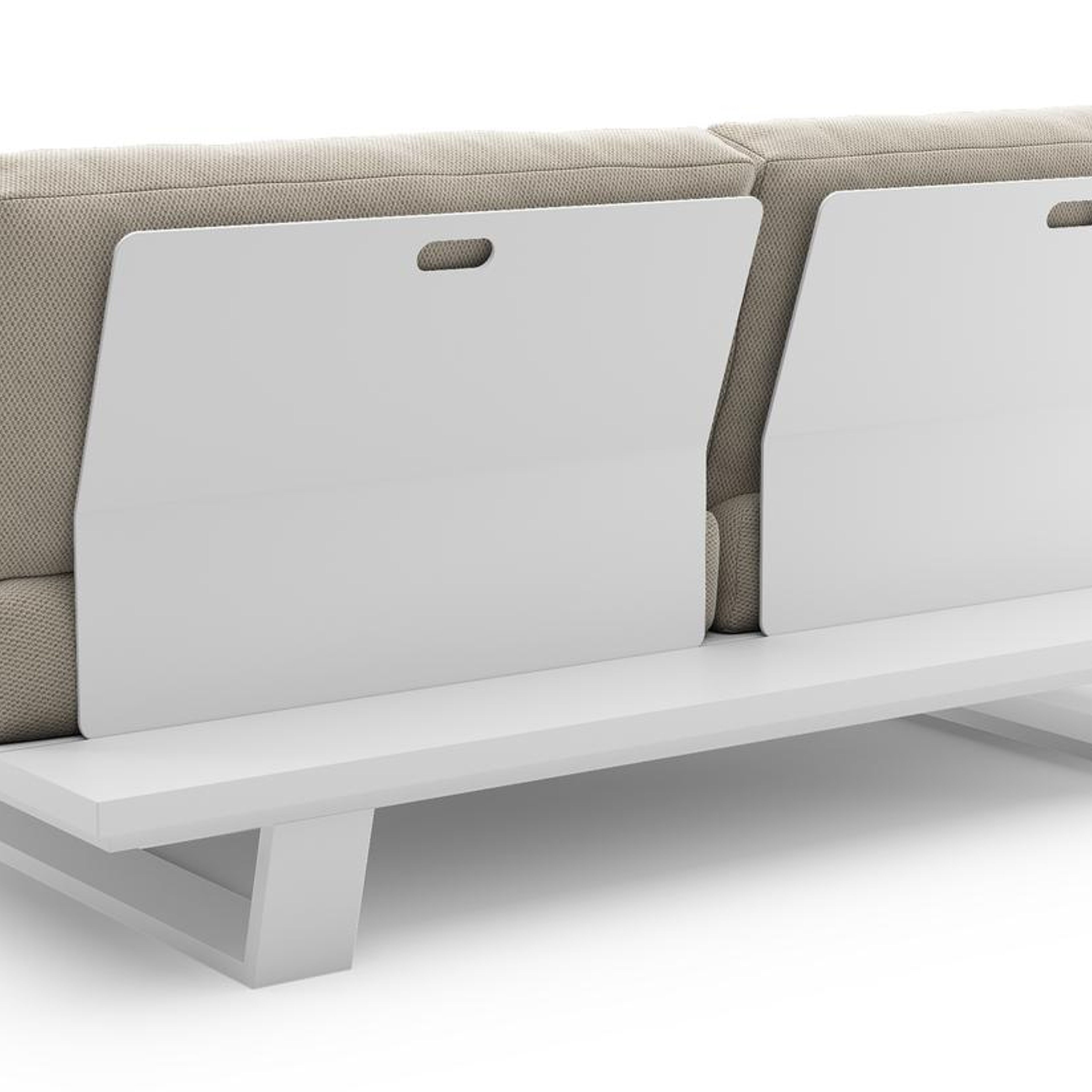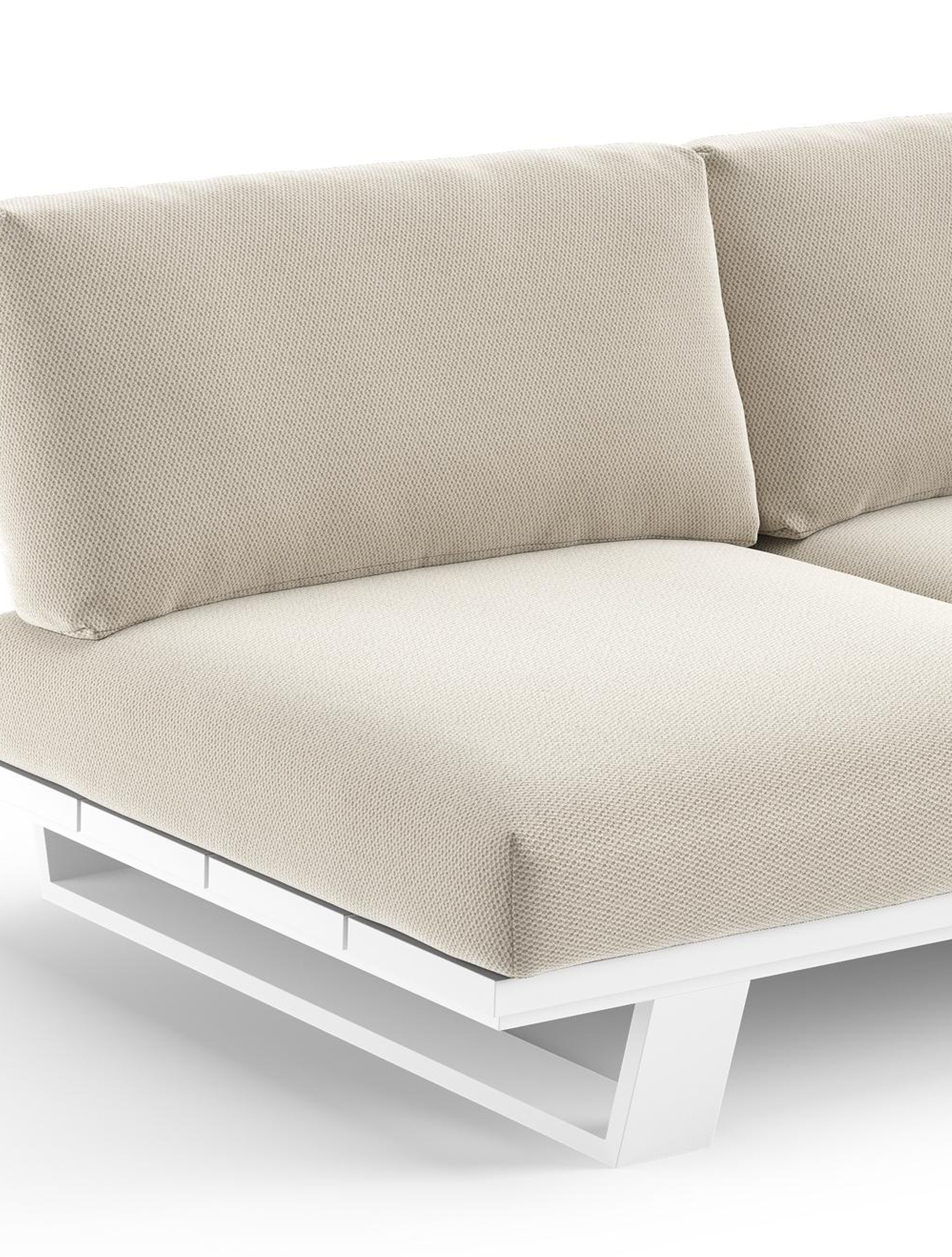 Canapé de jardin Pagino en aluminium blanc et coussins en all weather sunbrella® luxe lopi marble | Exterioo mobilier de jardin