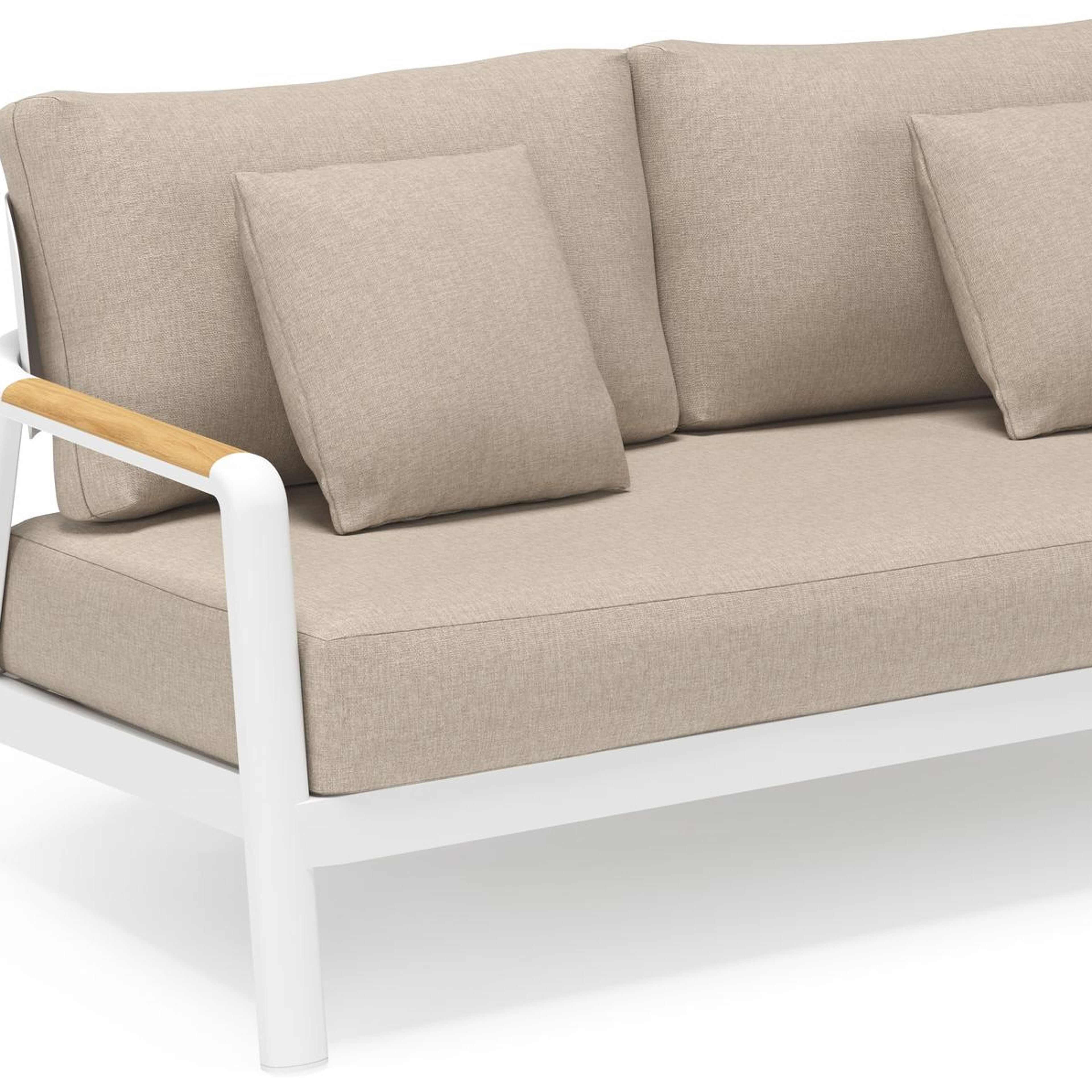 L'armature du salon de jardin est en aluminium inoxydable, un matériau robuste mais léger, qui est facile à déplacer. La surface présente une finition lisse, de sorte qu’elle n'attire pas la saleté et est facile à entretenir. Le revêtement poudré garantit la résistance aux UV et aux intempéries de votre meuble. Les accoudoirs en teck sont synonymes de qualité exceptionnelle et de design naturel. Le teck est une essence de qualité qui se caractérise par sa dureté.