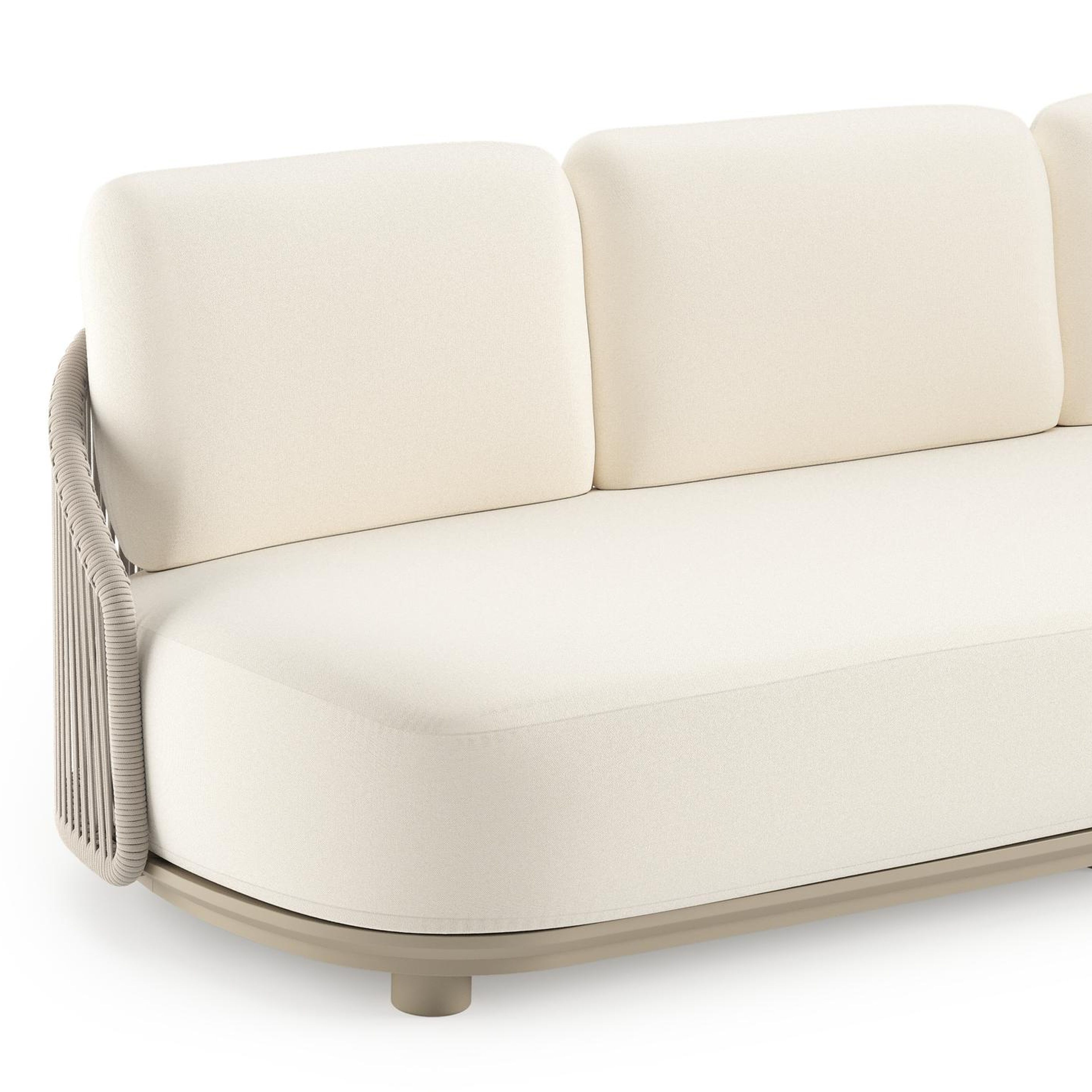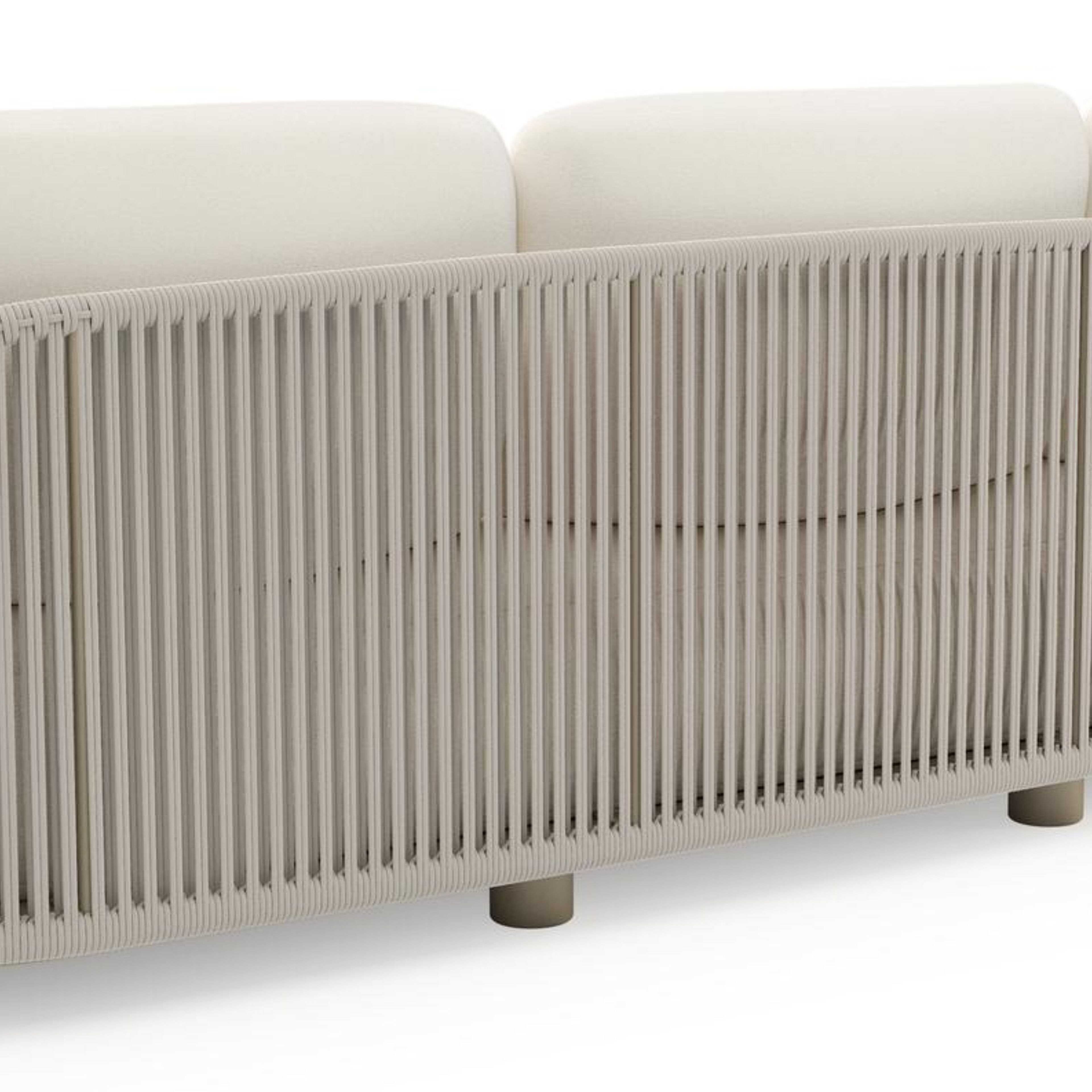 Canapé de jardin Vadelo en aluminium beige et corde ronde tissée verticalement beige et coussins en all weather sunbrella® luxe natte white | Exterioo mobilier de jardin