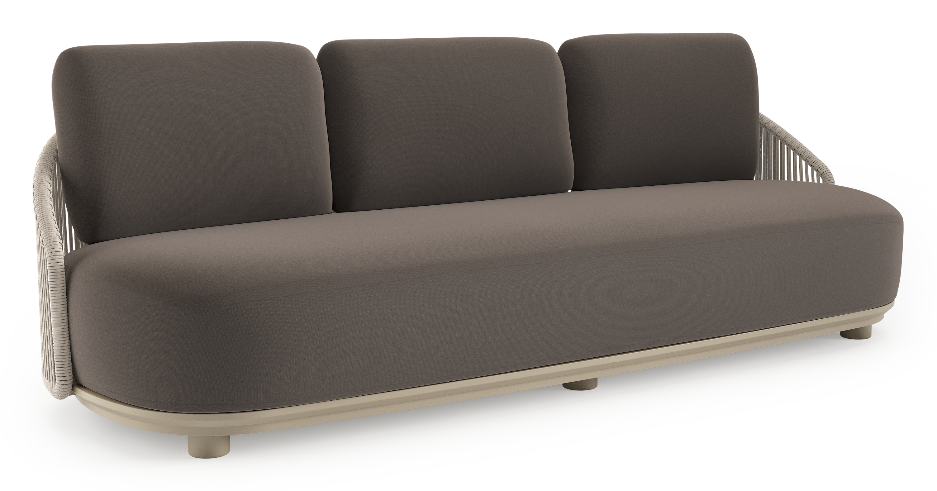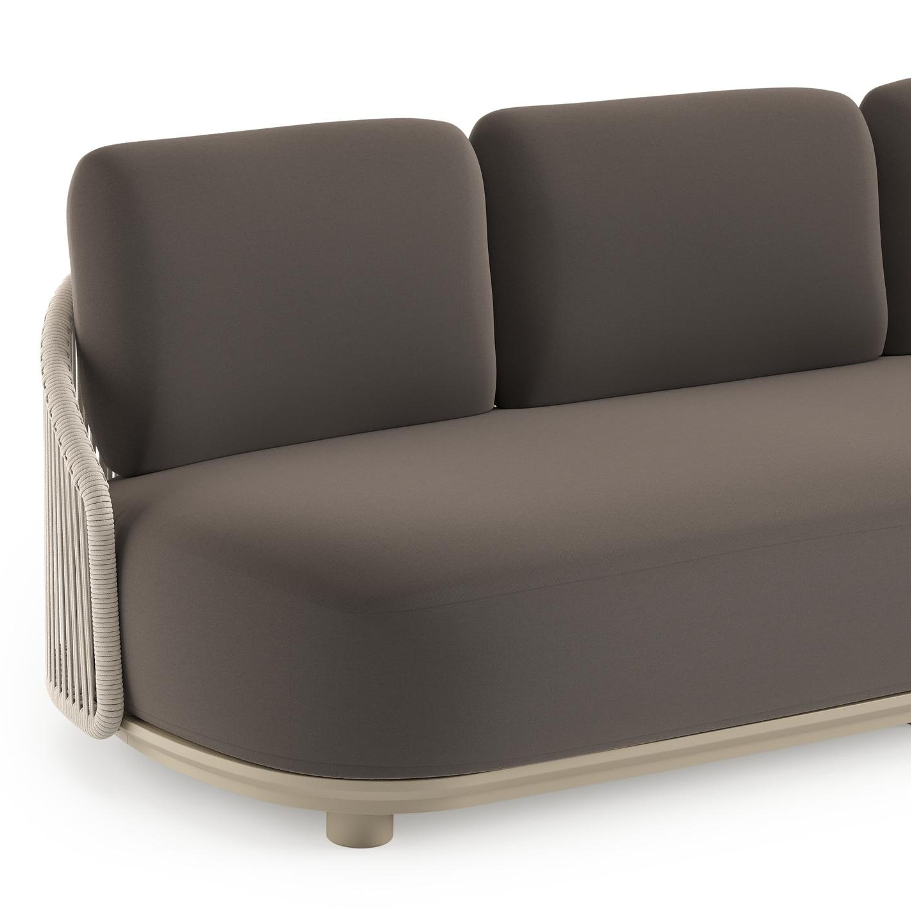 Canapé de jardin Vadelo en aluminium beige et corde ronde tissée verticalement beige et coussins en all weather sunbrella® luxe natte nature grey | Exterioo mobilier de jardin