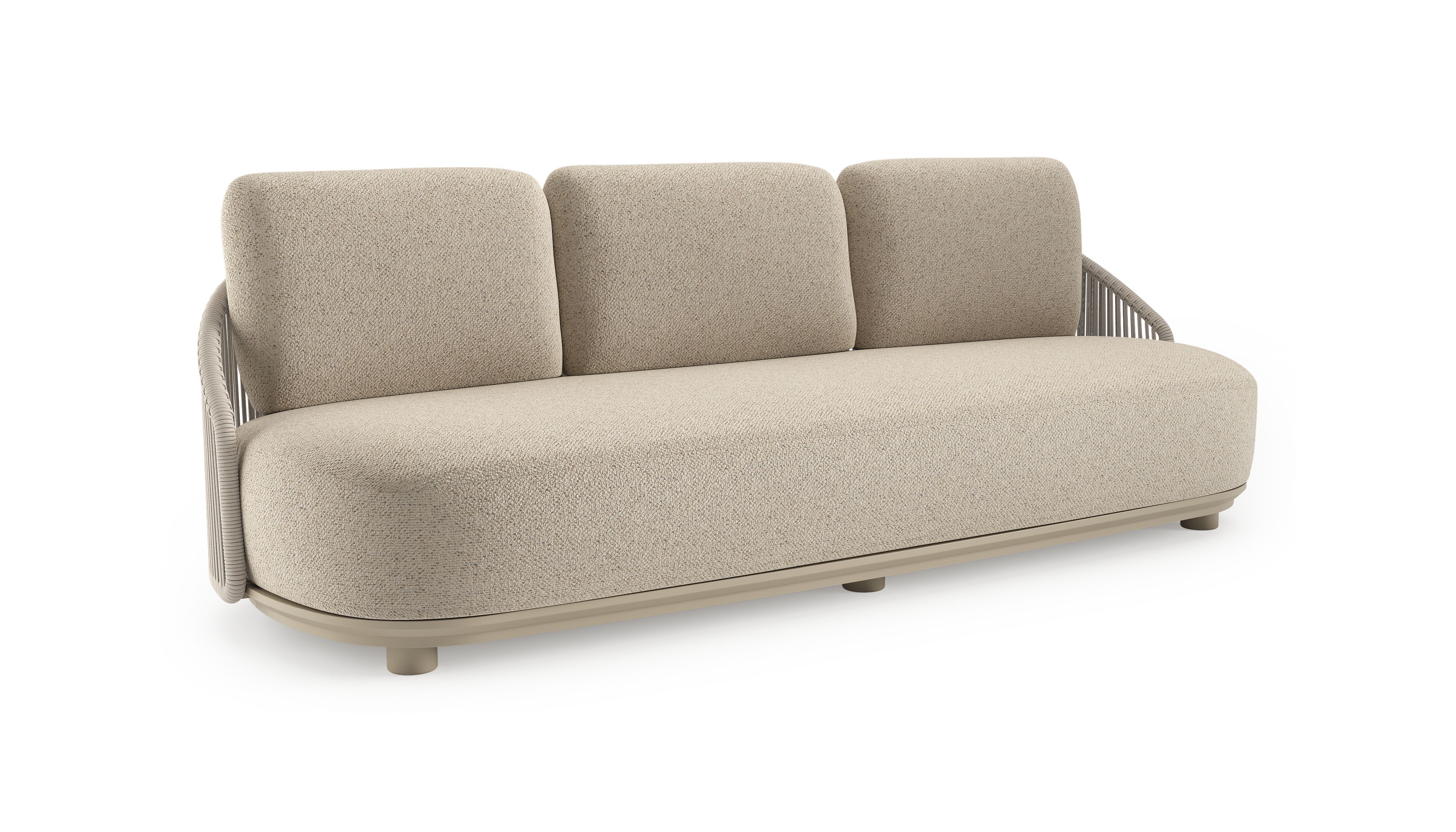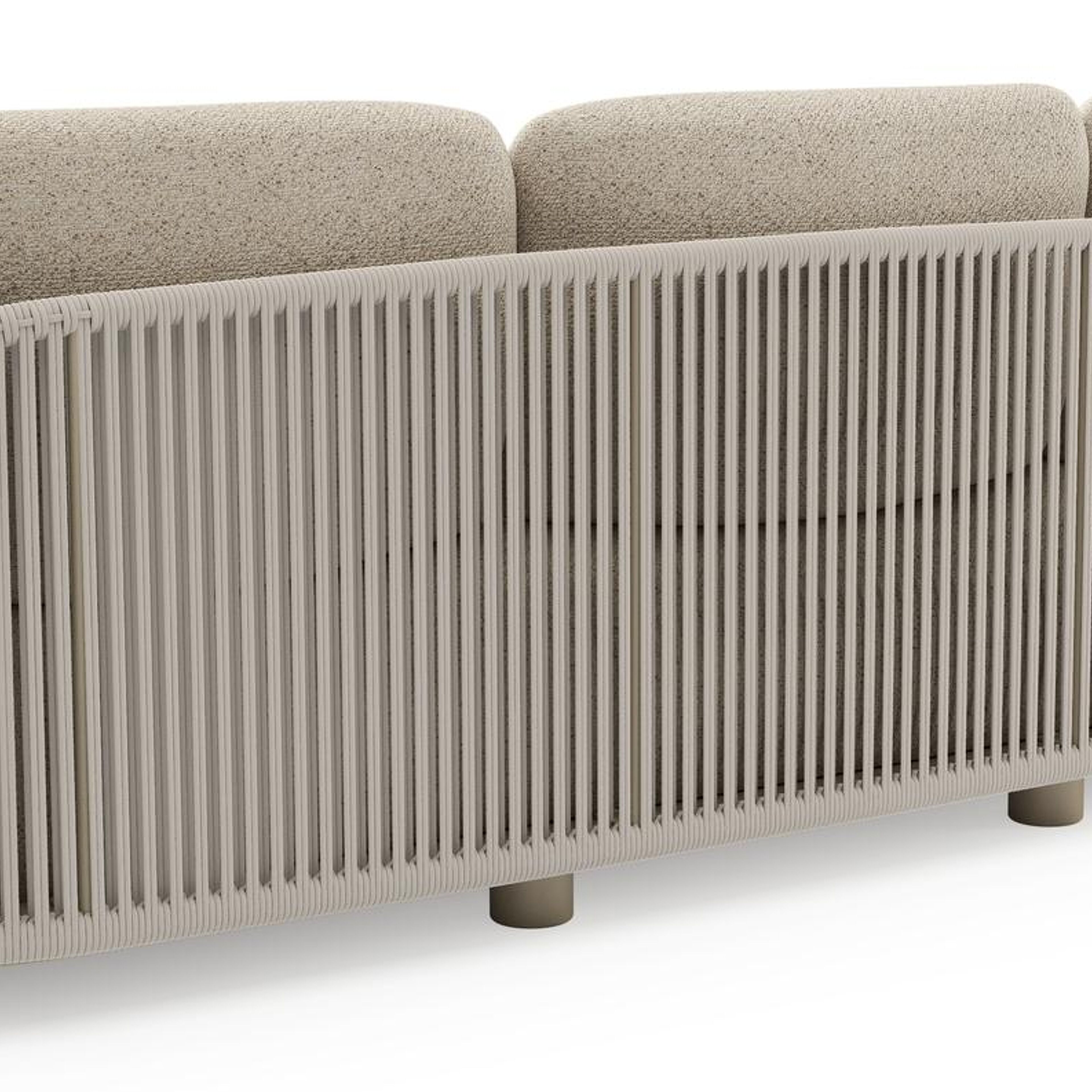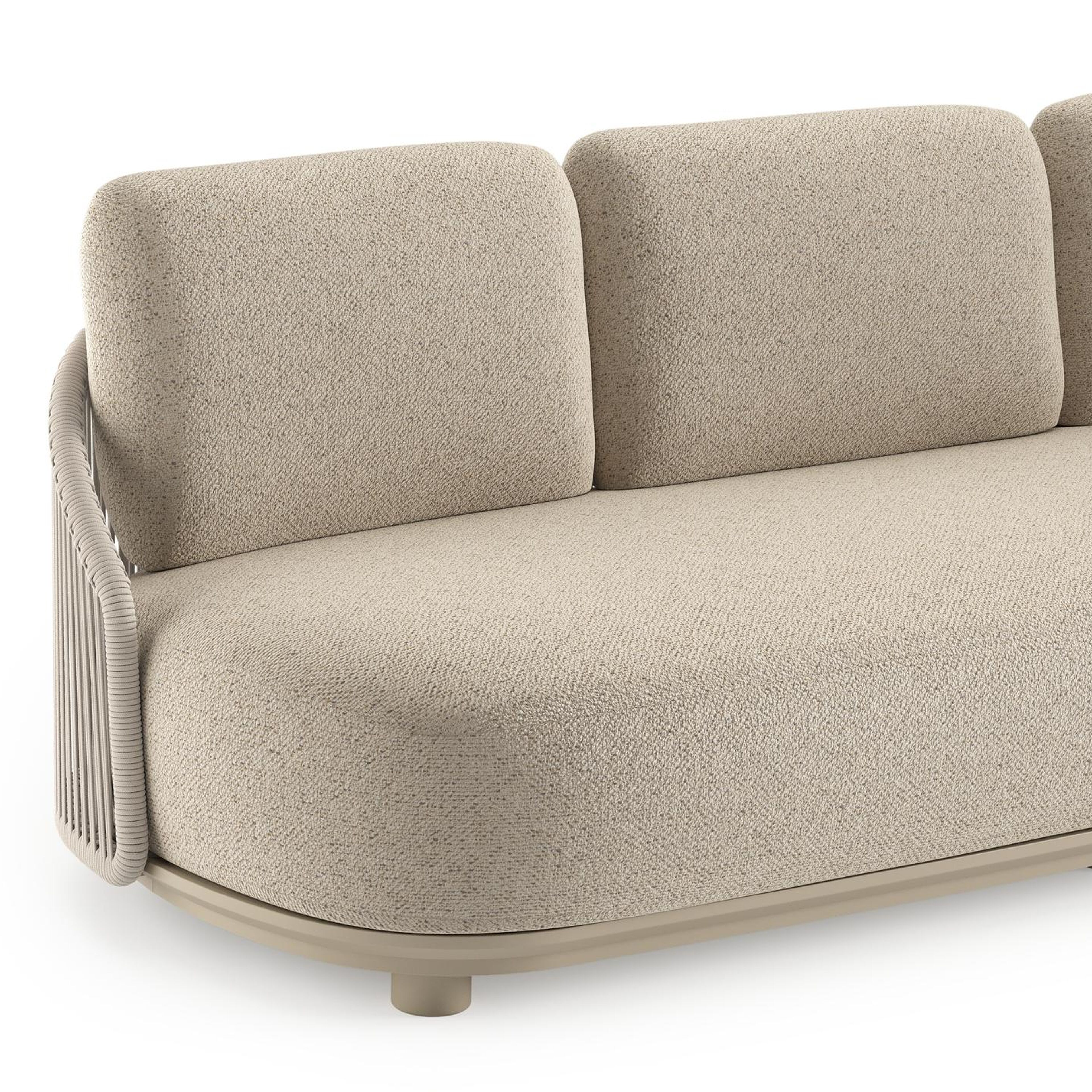 Canapé de jardin Vadelo en aluminium beige et corde ronde tissée verticalement beige et coussins en all weather cosytica bora desert | Exterioo mobilier de jardin