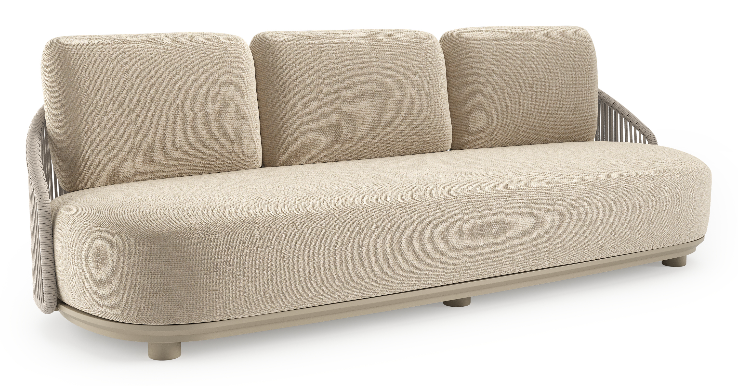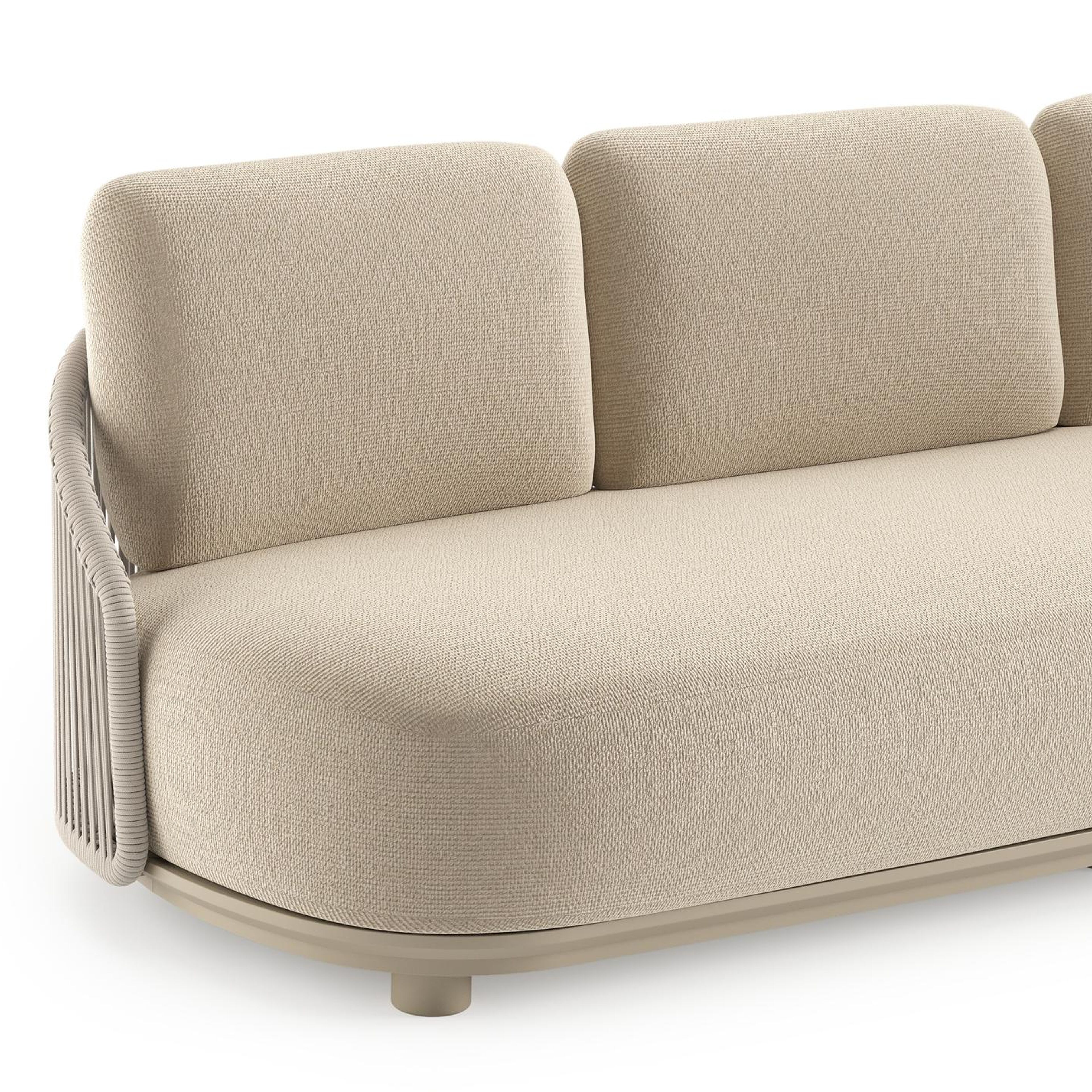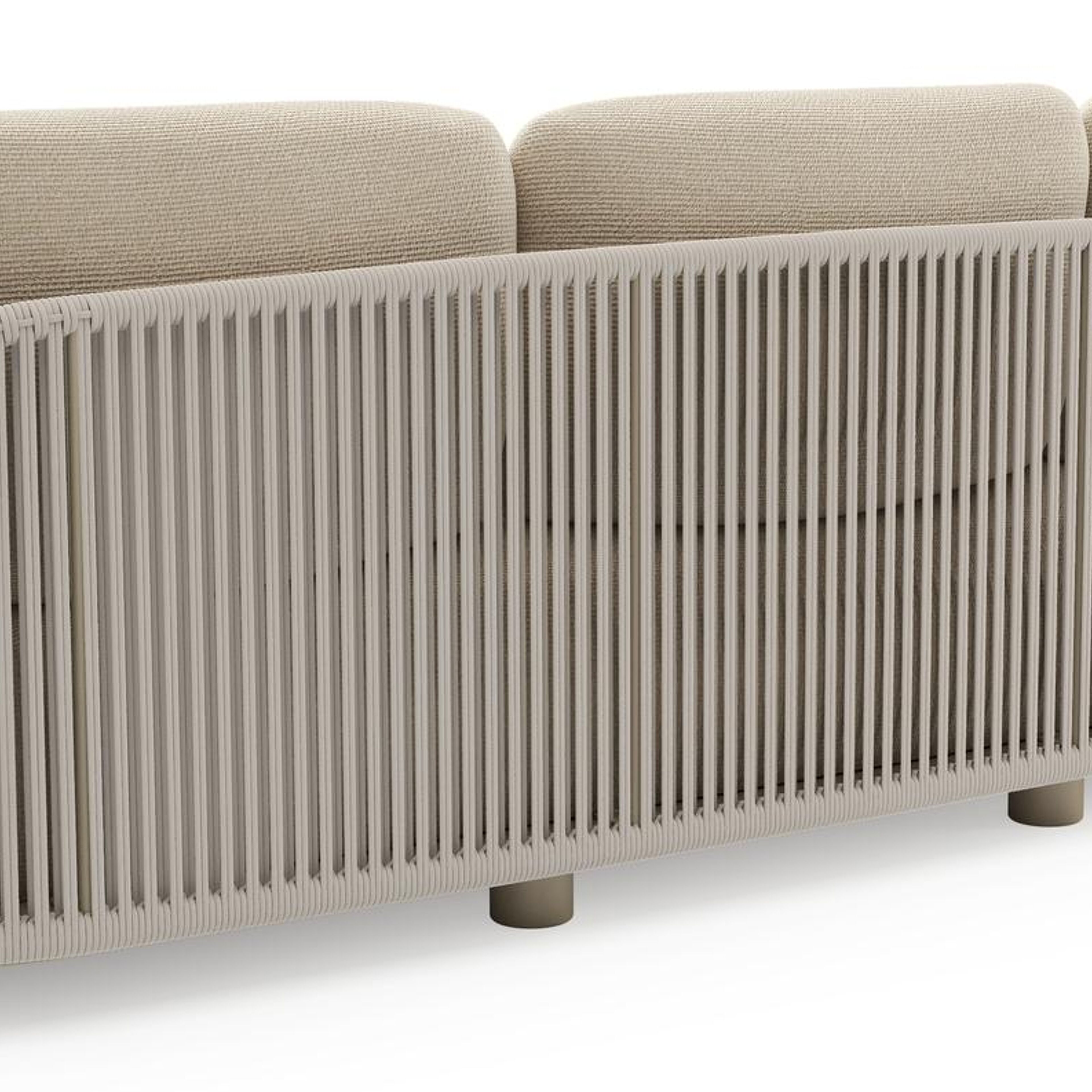 Canapé de jardin Vadelo en aluminium beige et corde ronde tissée verticalement beige et coussins en all weather cosytica althea chalk | Exterioo mobilier de jardin