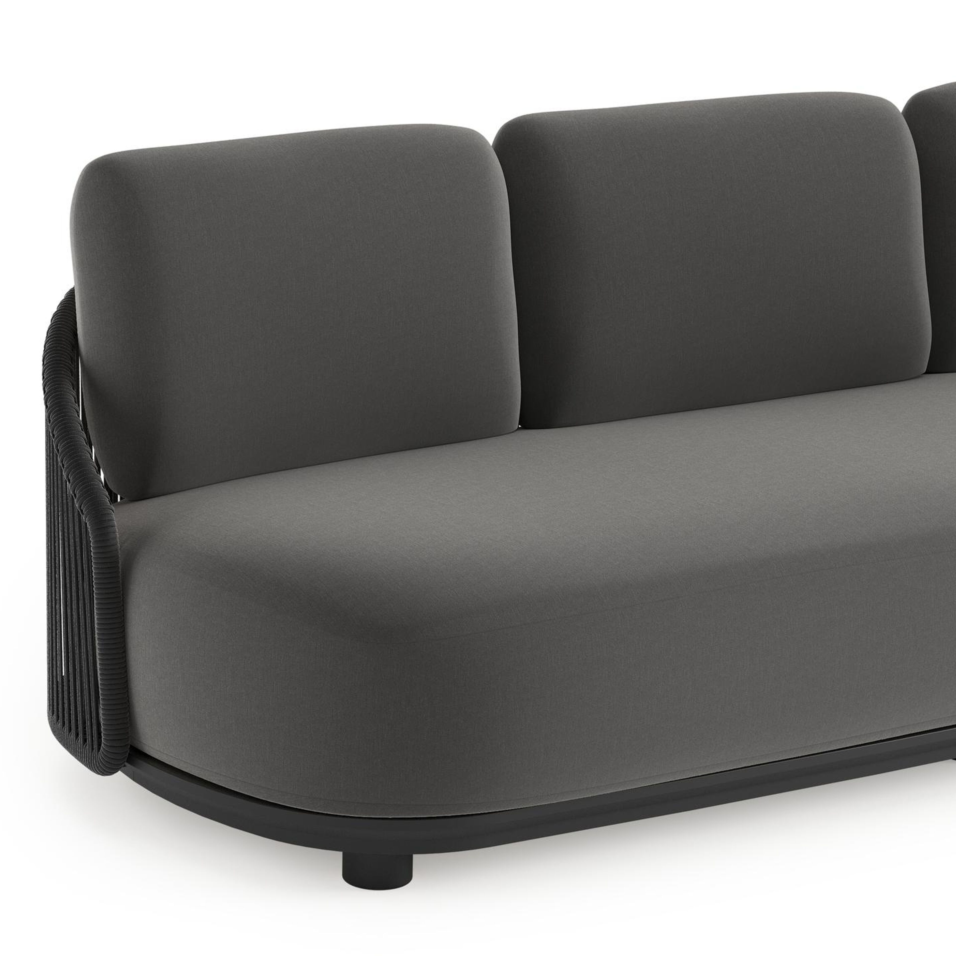 Canapé de jardin Vadelo en aluminium noir et corde ronde tissée verticalement noir et coussins en all weather sunbrella® luxe natte charcoal chine | Exterioo mobilier de jardin