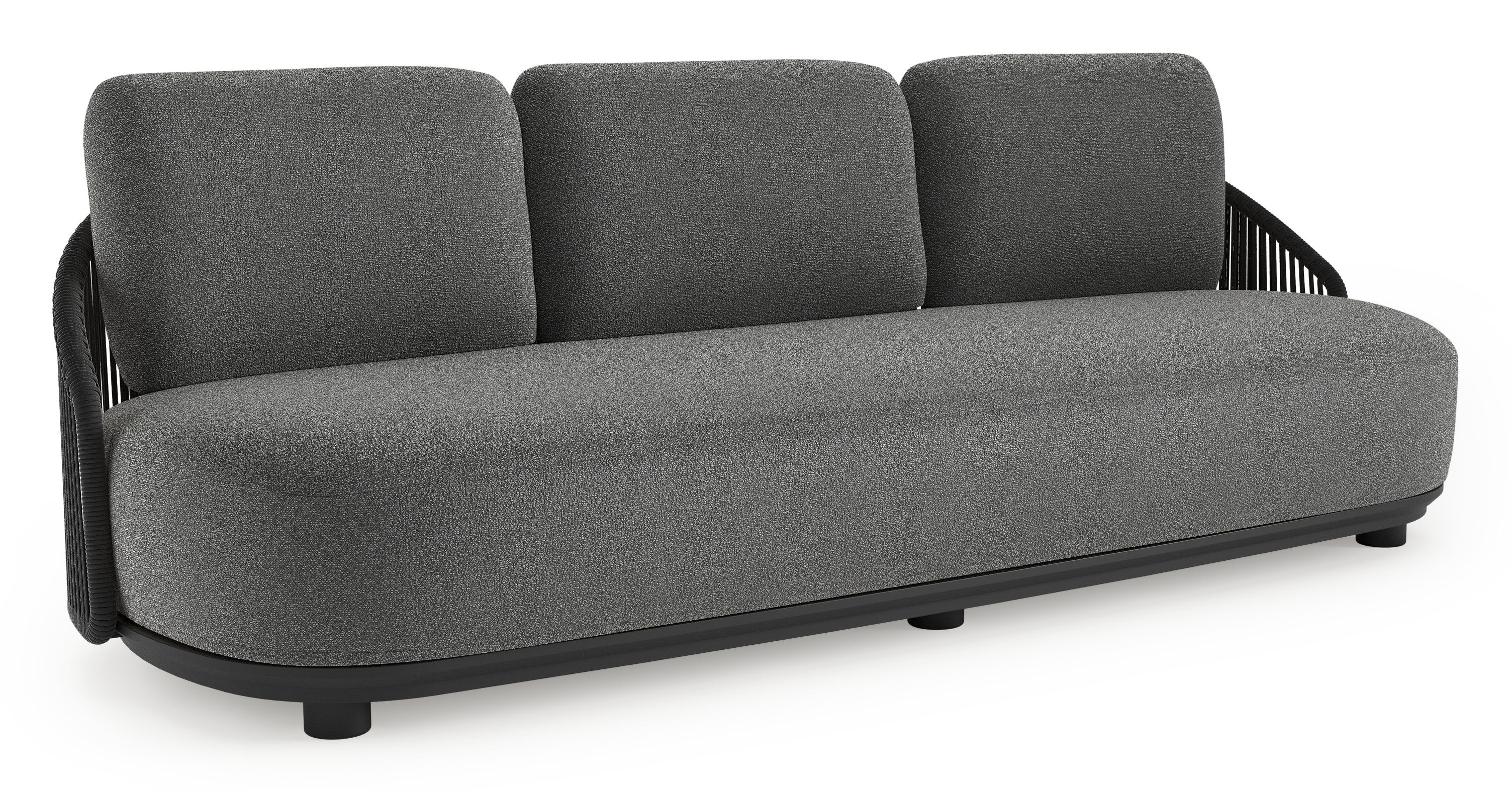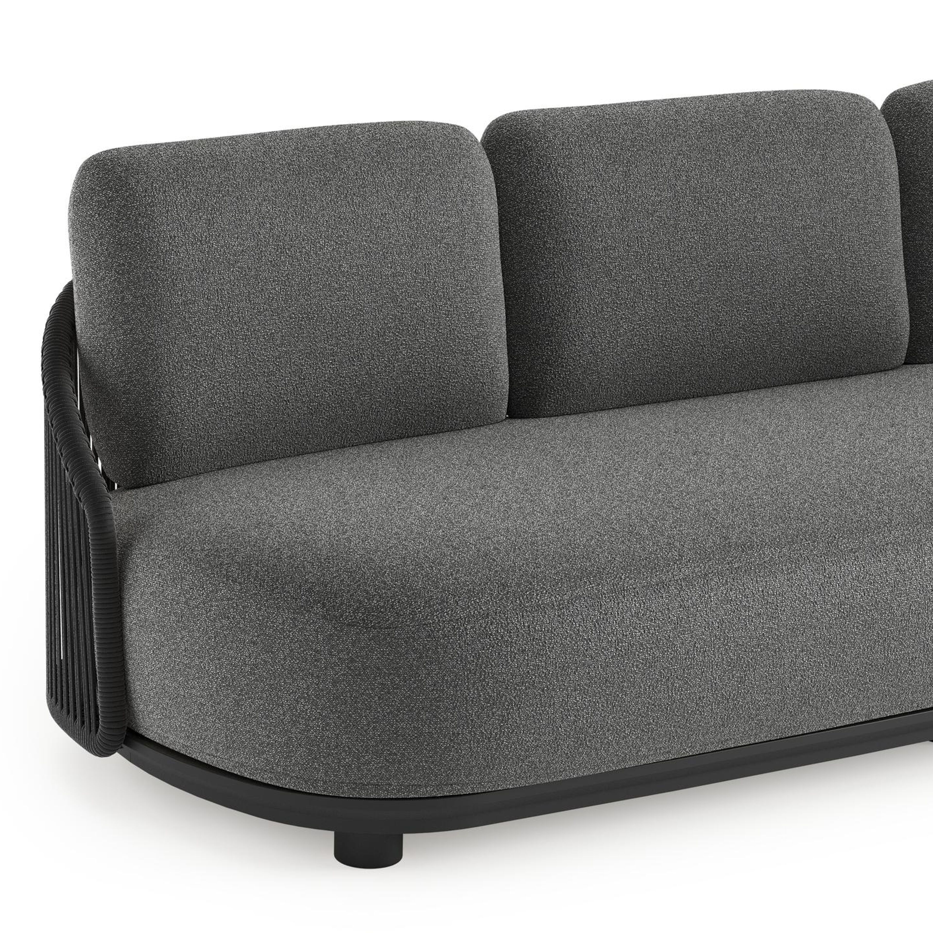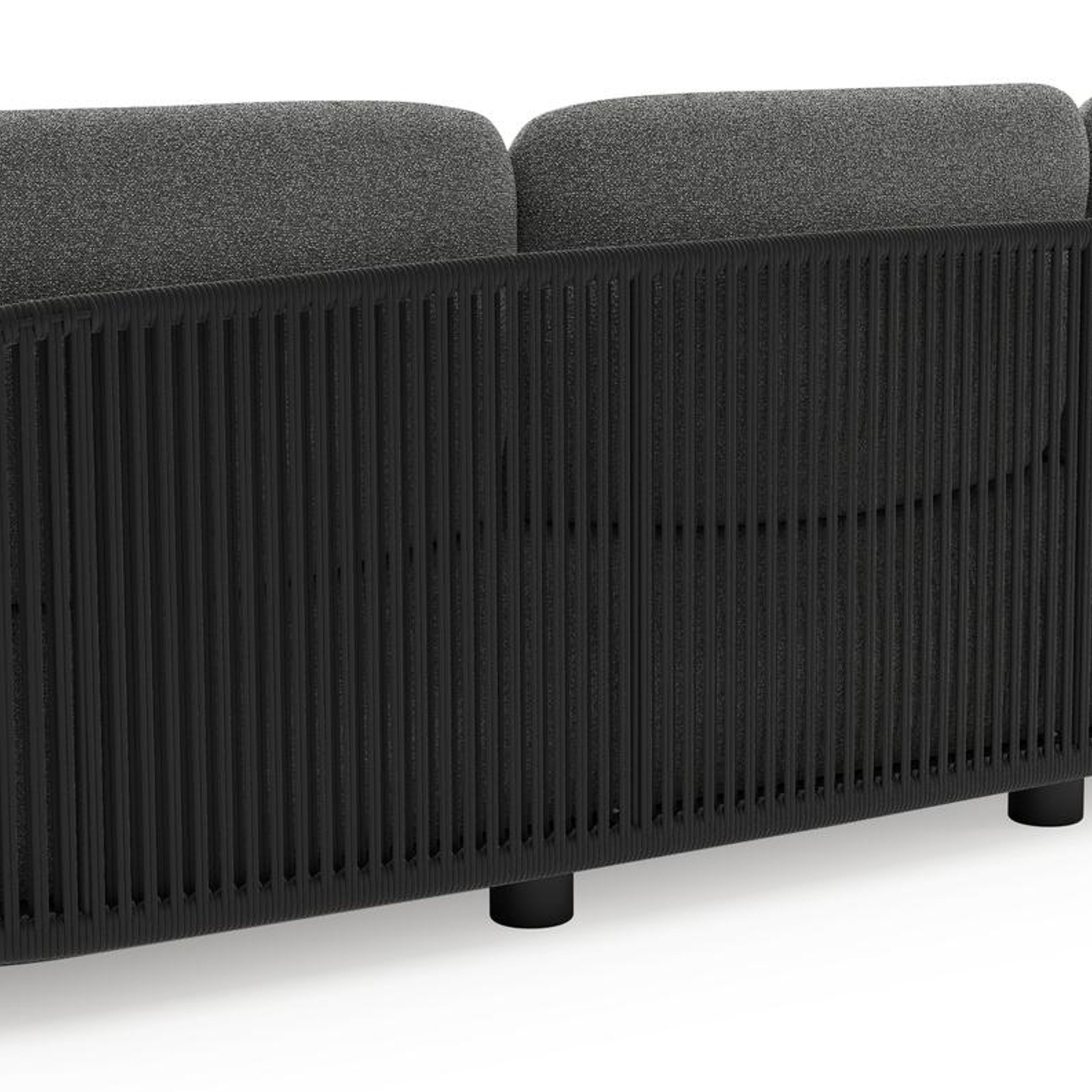 Canapé de jardin Vadelo en aluminium noir et corde ronde tissée verticalement noir et coussins en all weather cosytica catania black | Exterioo mobilier de jardin