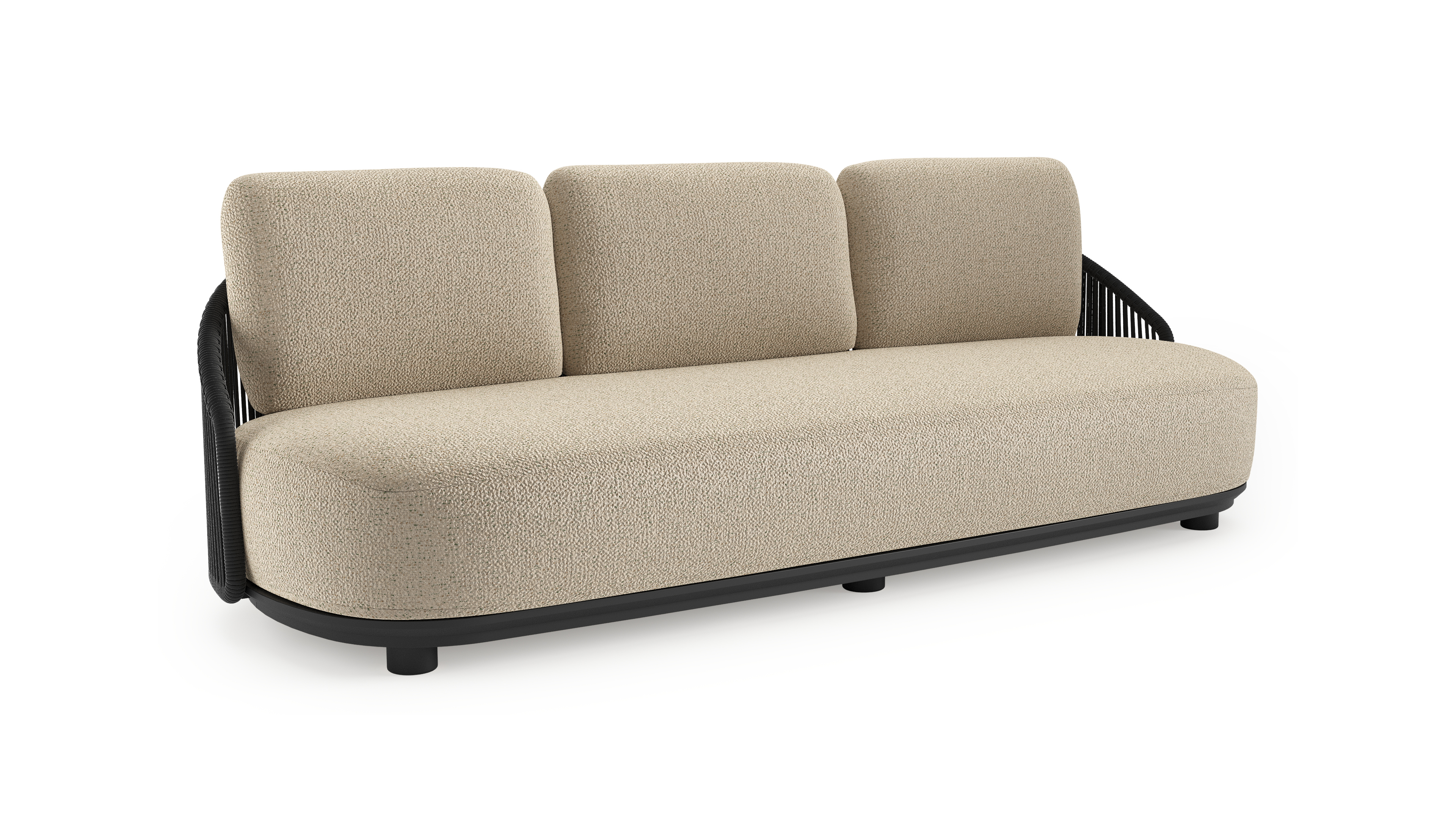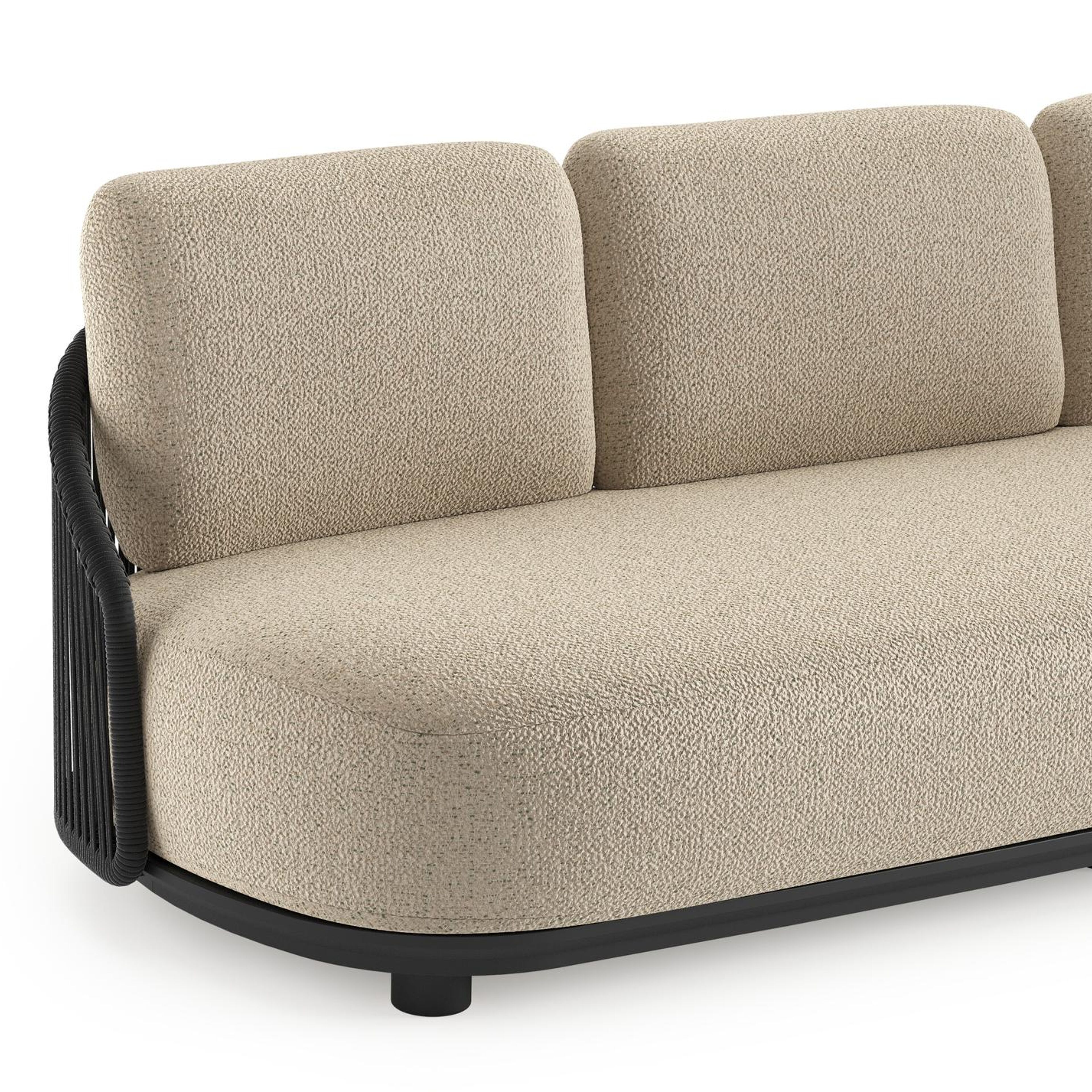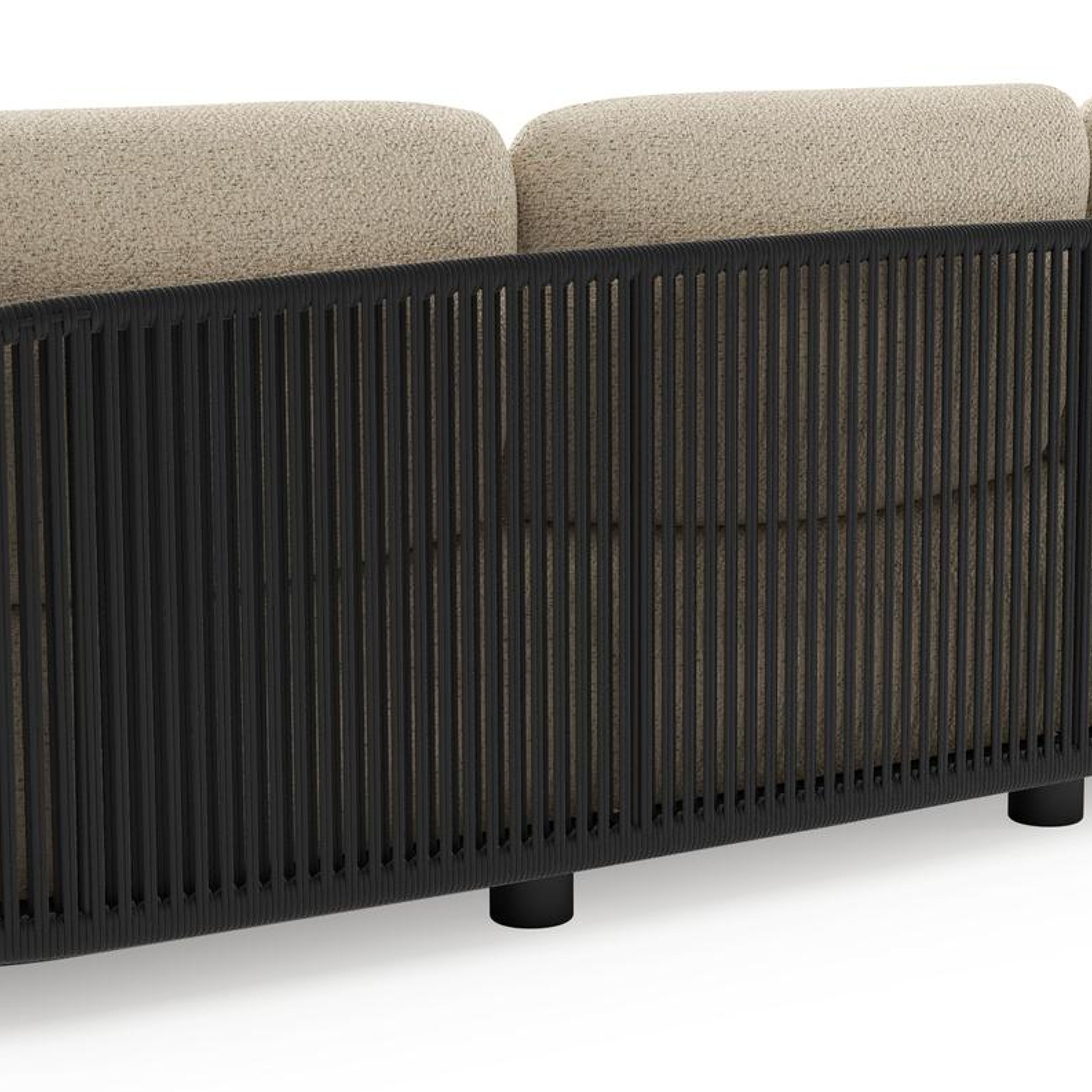 Canapé de jardin Vadelo en aluminium noir et corde ronde tissée verticalement noir et coussins en all weather cosytica bora forest | Exterioo mobilier de jardin