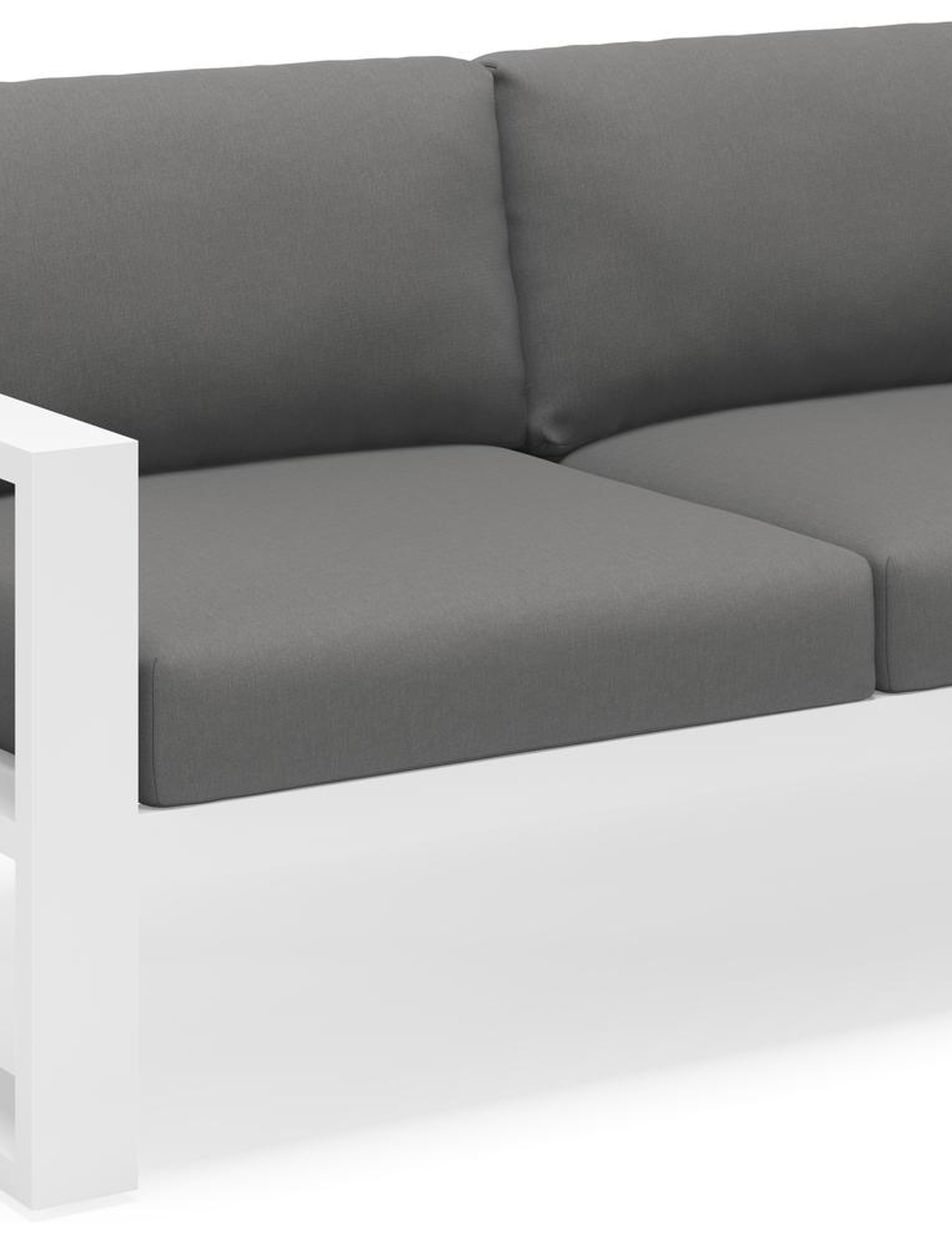 Verato loungebank 3-zit in wit aluminium met natte charcoal chine all weather sunbrella® luxe kussen | Exterioo mobilier de jardin