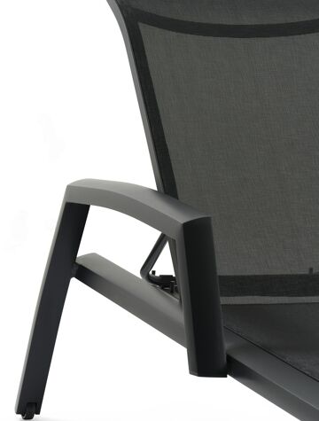 Le textilène est une matière élégante, qui est très solide et facile à entretenir. c'est en outre une matière qui résiste aux intempéries et qui sèche donc rapidement. Le textilène se plie facilement en suivant le corps tout en conservant sa forme initiale, de sorte qu’il ne s'affaissera pas rapidement. grâce à son élasticité, vous pourrez vous allonger et vous asseoir confortablement.