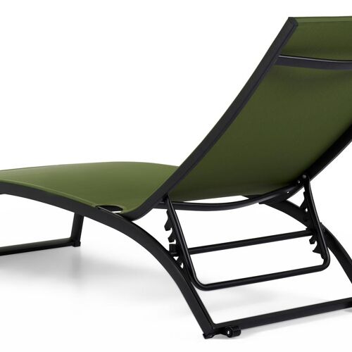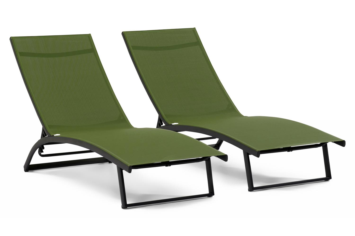 Ensemble de 2 chaises longues réglables Calvia en aluminium noir avec textilène vert | Exterioo