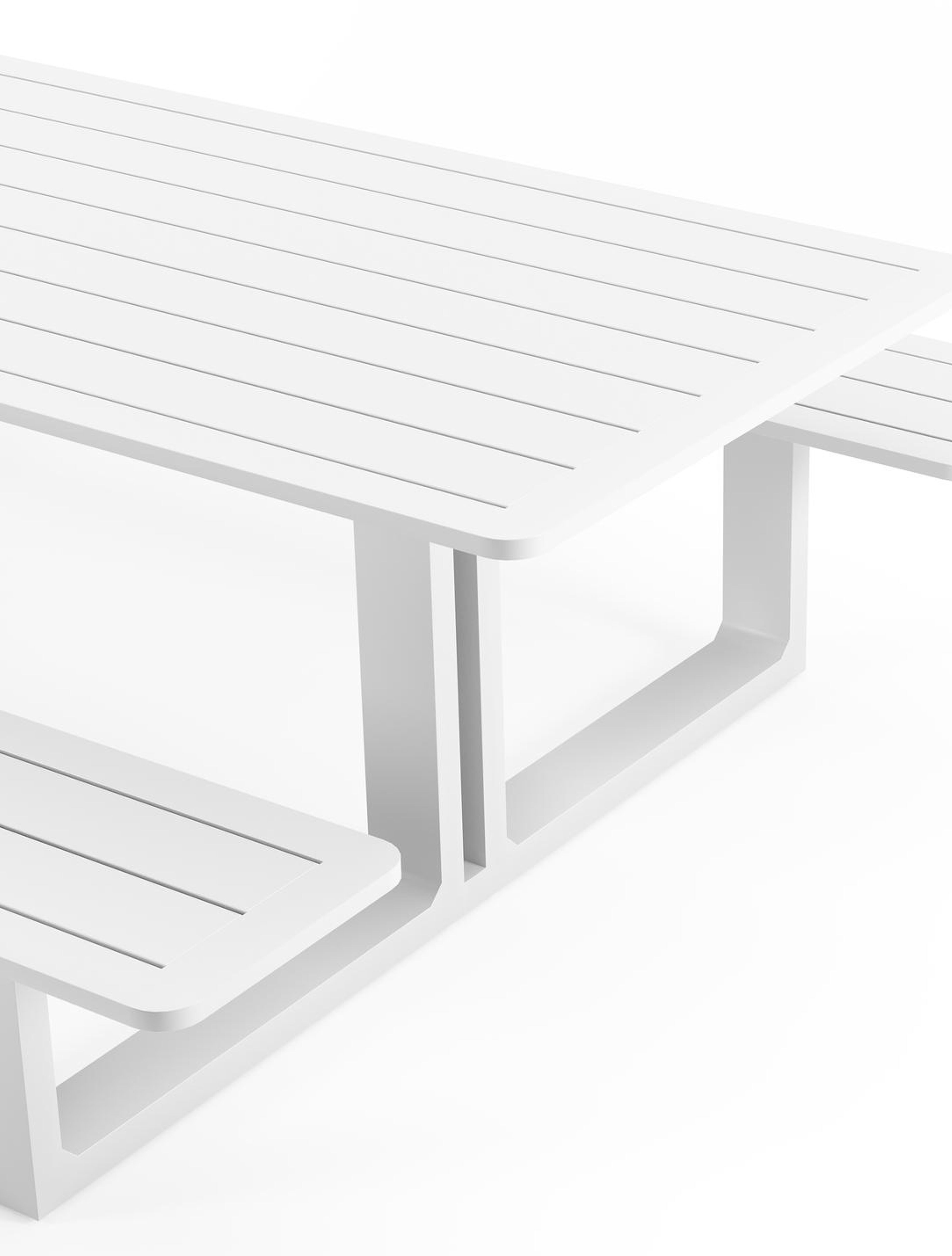 Table de pique-nique Merano en aluminium blanc - Lg 240 x Larg 181 x H 73 cm | Exterioo mobilier de jardin