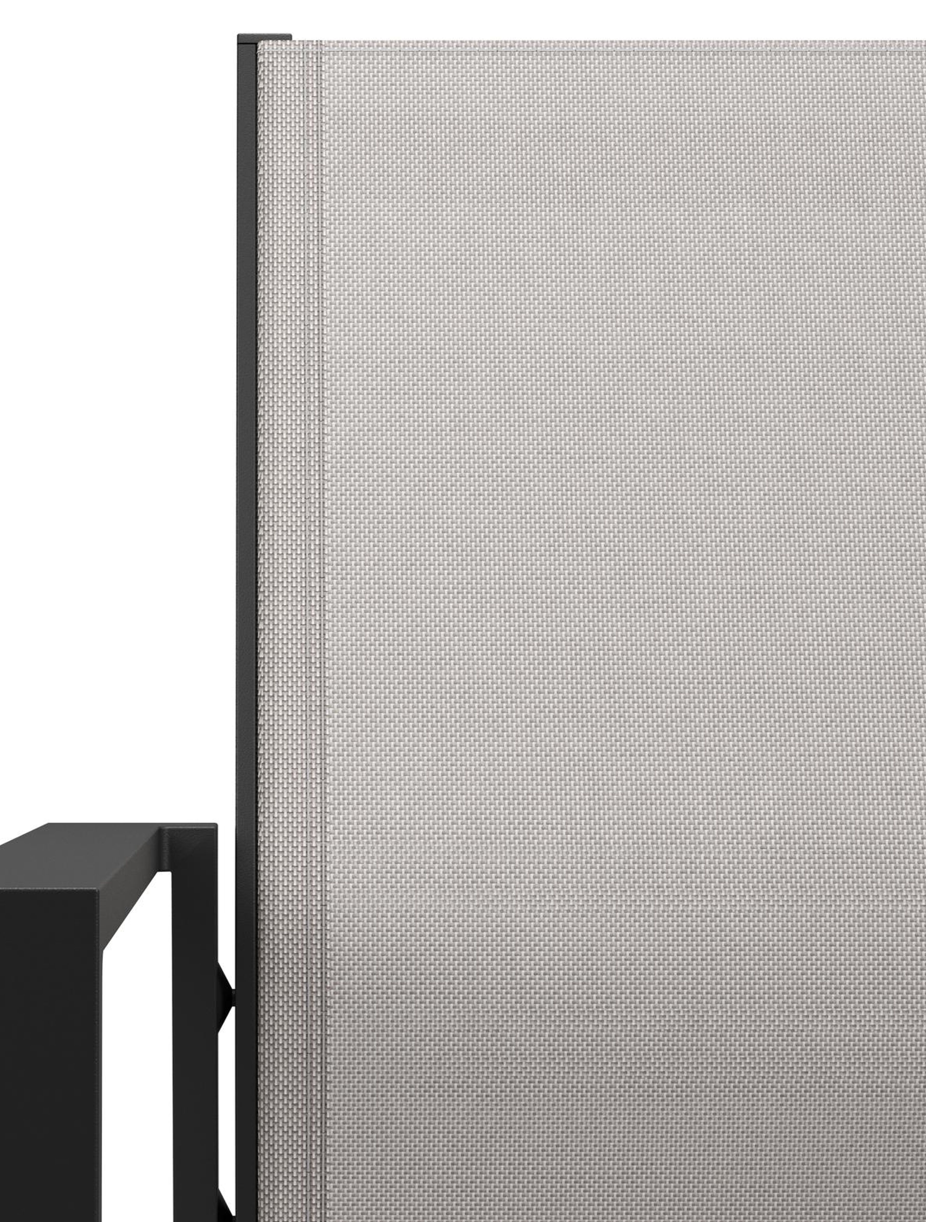 Le textilène est un revêtement composé de fils de polyester avec un revêtement en PVC. Le textilène est un matériau résistant aux intempéries, indéformable et qui sèche rapidement. Grâce à sa structure ouverte, il s’agit d’un revêtement respirant et son élasticité garantit un excellent confort d’assise. Sa composition en fait également un matériau très durable. Le single textilène se compose d’une seule couche de textilène pour l’assise et le dossier.