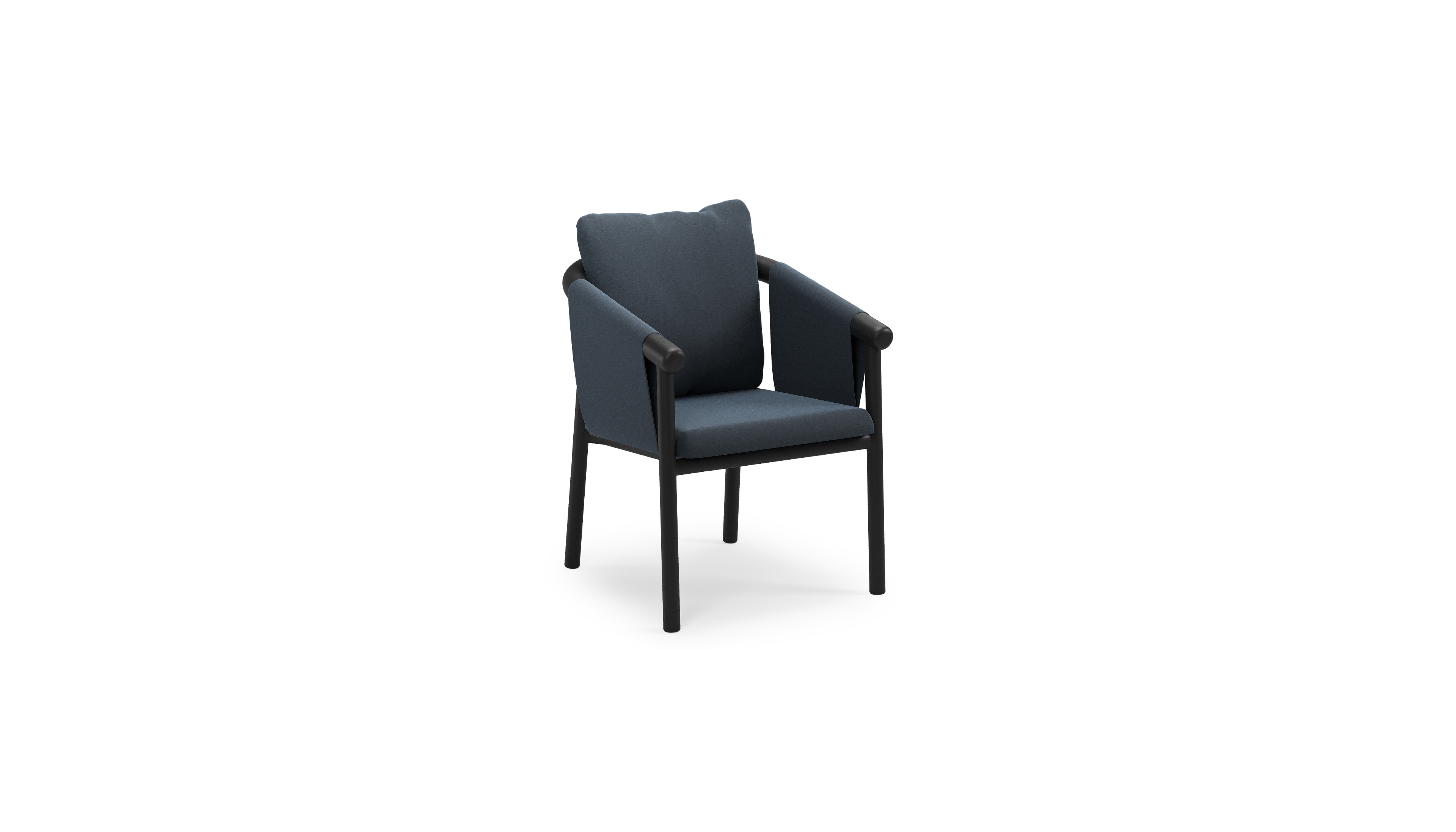 Chaise de jardin empilable Amico en aluminium noir et aluminium noir avec coussin en All Weather Sunbrella® Luxe Heritage Indigo | Exterioo mobilier de jardin