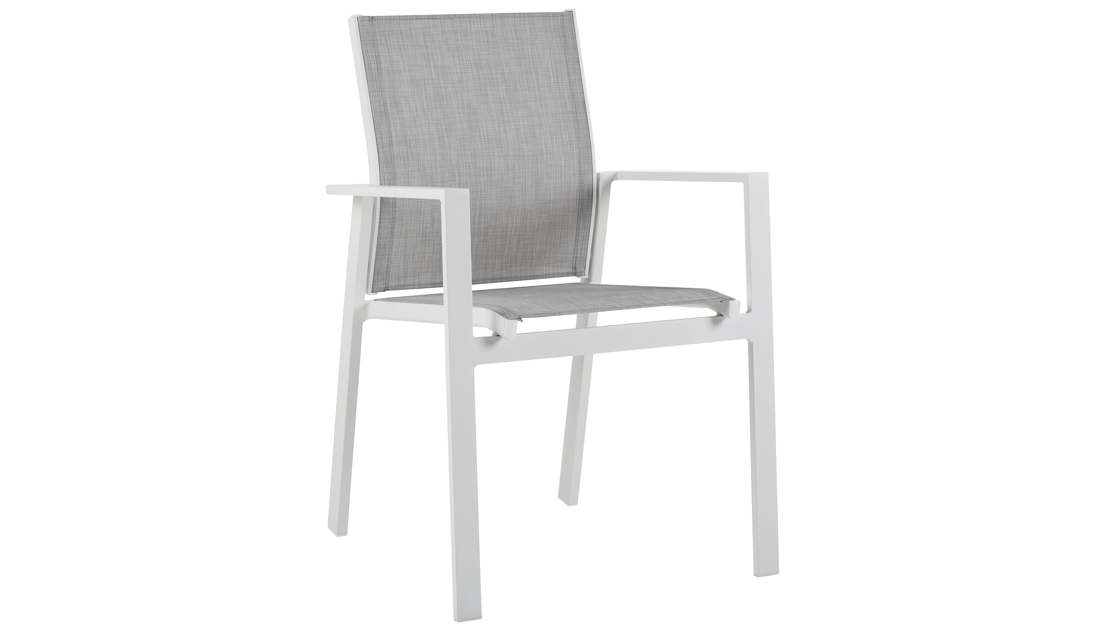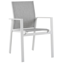 L’assise et le dossier sont en textilène solide, une matière élégante et facile d’entretien. La chaise est empilable et est donc facile à ranger.