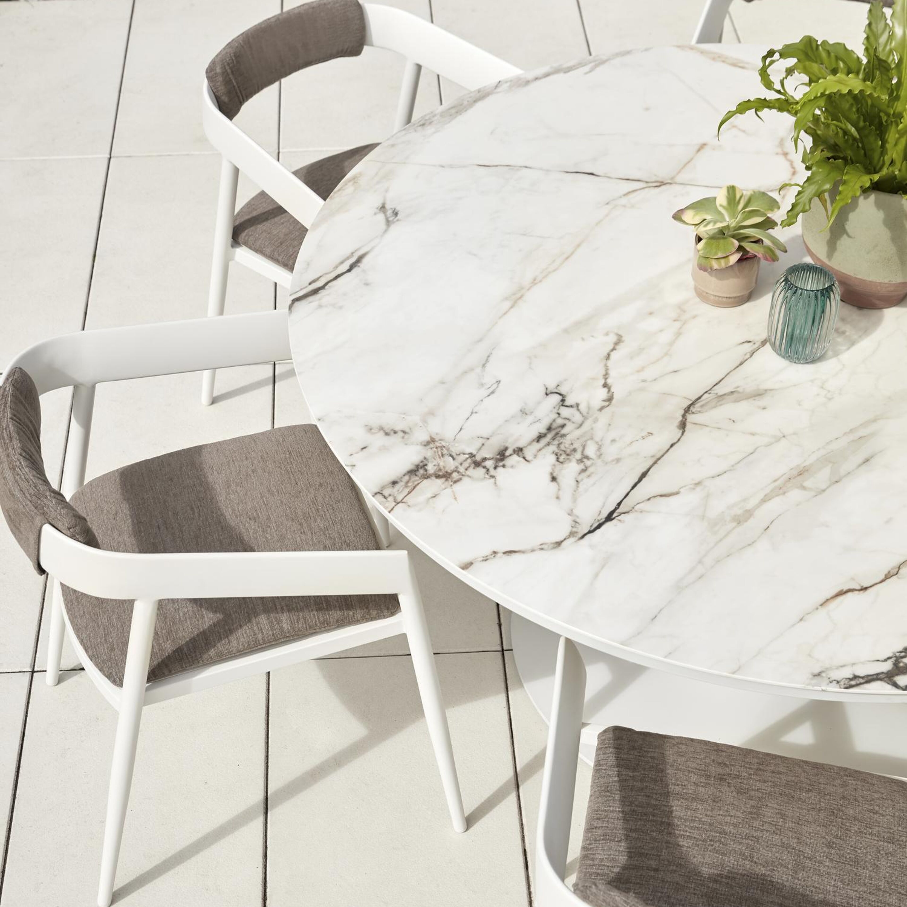 Donato embrasse la nature avec ses formes fluides, son teck chaleureux et son aluminium élégant disponible en blanc, noir ou beige. Un design qui respire la sérénité, ajoute du caractère et apporte une élégance naturelle à votre jardin.