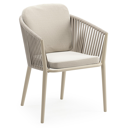 Chaise de jardin empilable Orso en aluminium beige et corde ronde tissée résille beige avec coussin en All Weather Sunbrella® Luxe Lopi Marble | Exterioo mobilier de jardin