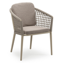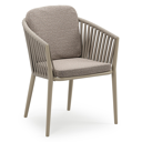 Chaise de jardin empilable Orso en aluminium brun foncé et corde ronde tissée verticalement brun foncé avec coussin en All Weather Sunbrella® Luxe Wander Manioc | Exterioo mobilier de jardin