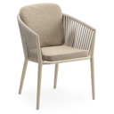 Chaise de jardin empilable Orso en aluminium brun foncé et corde ronde tissée verticalement brun foncé avec coussin en All Weather Cosytica Madagascar Oak | Exterioo mobilier de jardin