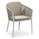La chaise de jardin Orso présente un design élégant aux formes arrondies. Le dossier se plie visiblement à l'accoudoir et le pied conique complète le design. La chaise offre une expérience d'assise confortable.