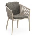 La chaise de jardin Orso présente un design élégant aux formes arrondies. Le dossier se plie visiblement à l'accoudoir et le pied conique complète le design. La chaise offre une expérience d'assise confortable.