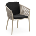Chaise de jardin empilable Orso en aluminium noir et corde large plate de luxe tissée verticalement beige avec coussin en All Weather Sunbrella® Luxe Lopi Baribal | Exterioo mobilier de jardin