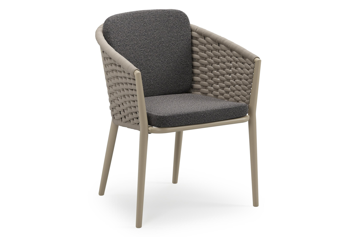 Chaise de jardin empilable Orso en aluminium beige et corde ronde tissée horizontalement beige avec coussin en All Weather Solica Firenze Tunder | Exterioo