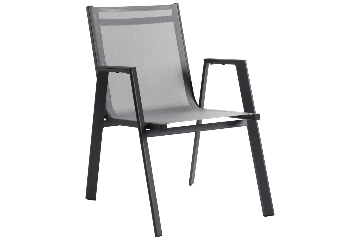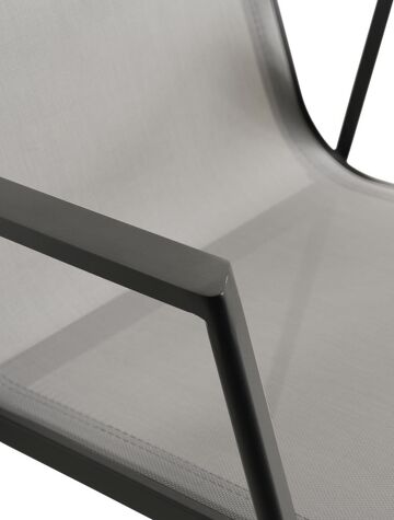 L’assise et le dossier sont en textilène, une matière élégante et facile d’entretien. La chaise est empilable et est donc facile à ranger.