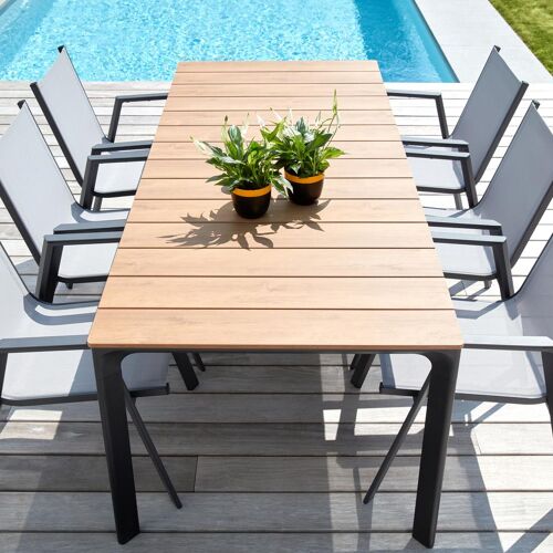Aluminium est un matériau robuste mais léger, qui est facile à déplacer. La surface présente une finition lisse, de sorte qu’elle n’attire pas la saleté et est facile à entretenir. Le revêtement poudré garantit en outre une résistance aux UV et aux intempéries.