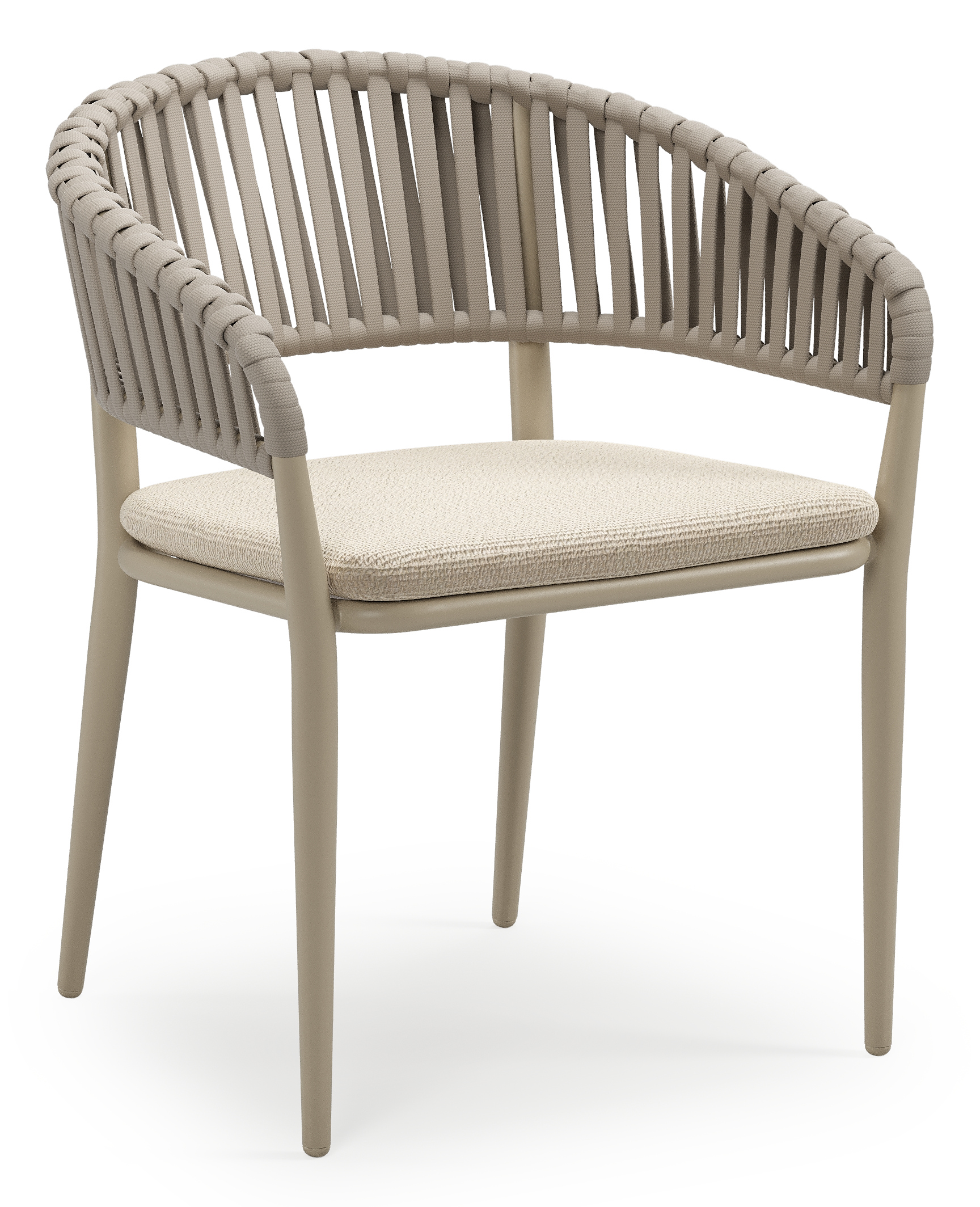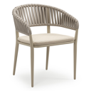 Chaise de jardin empilable Tolfa en aluminium beige et corde large plate de luxe tissée verticalement beige avec coussin en All Weather Cosytica Althea Chalk | Exterioo mobilier de jardin