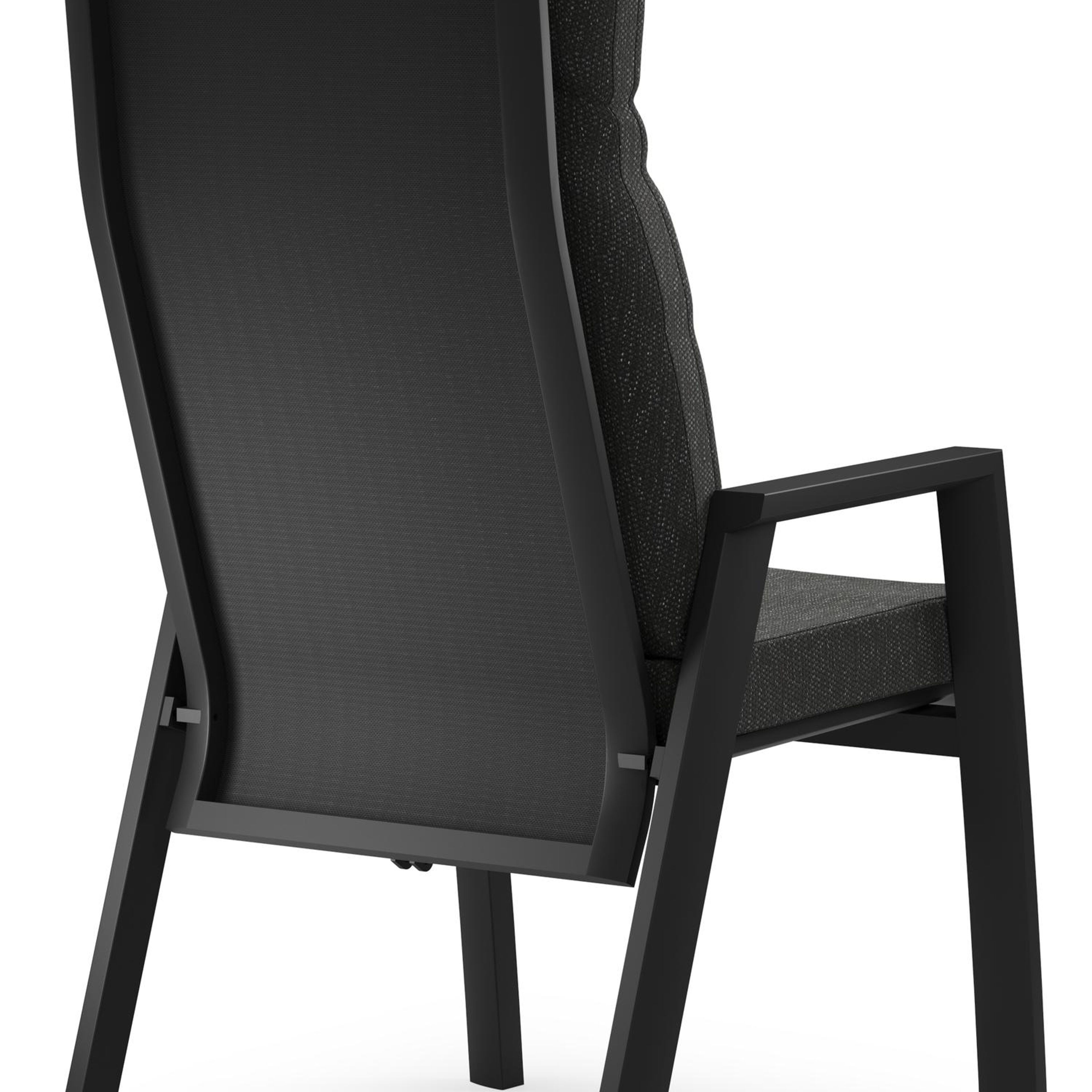 Chaise de jardin Leon en aluminium noir et textilène noir avec coussin en Sky Black Weather+ Softtouch | Exterioo mobilier de jardin