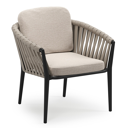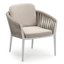 Chaise de jardin low dining Orso en aluminium beige et corde large plate de luxe tissée verticalement beige avec coussin en All Weather Sunbrella® Luxe Slow Farafra | Exterioo mobilier de jardin