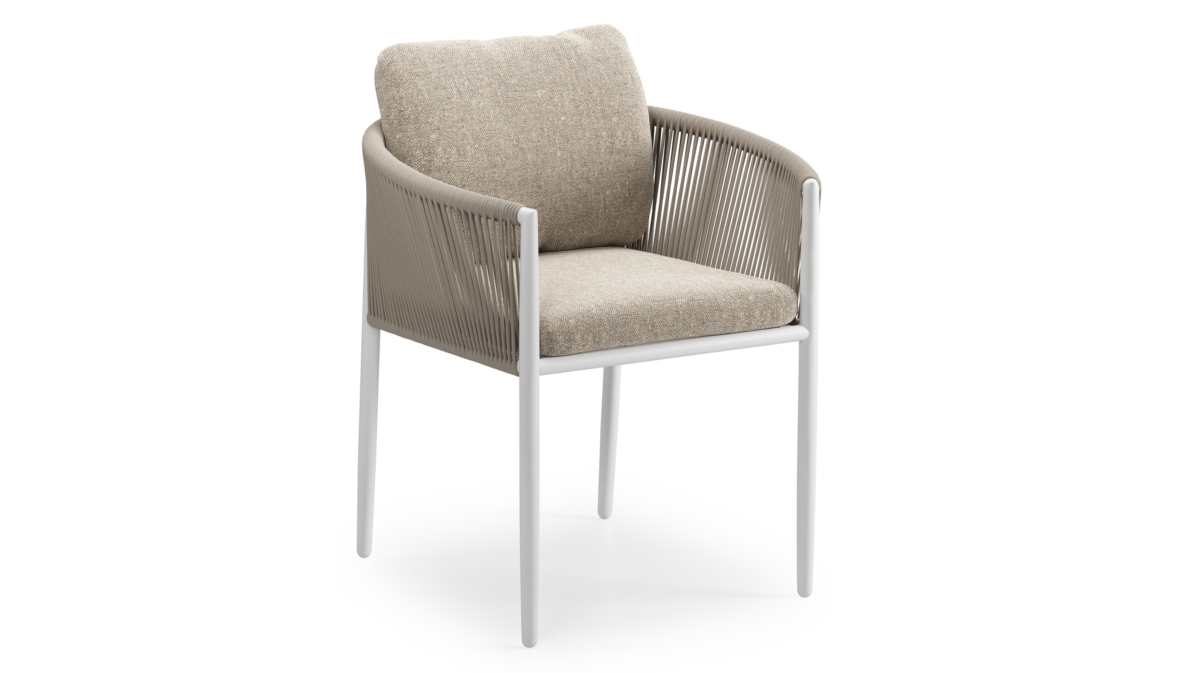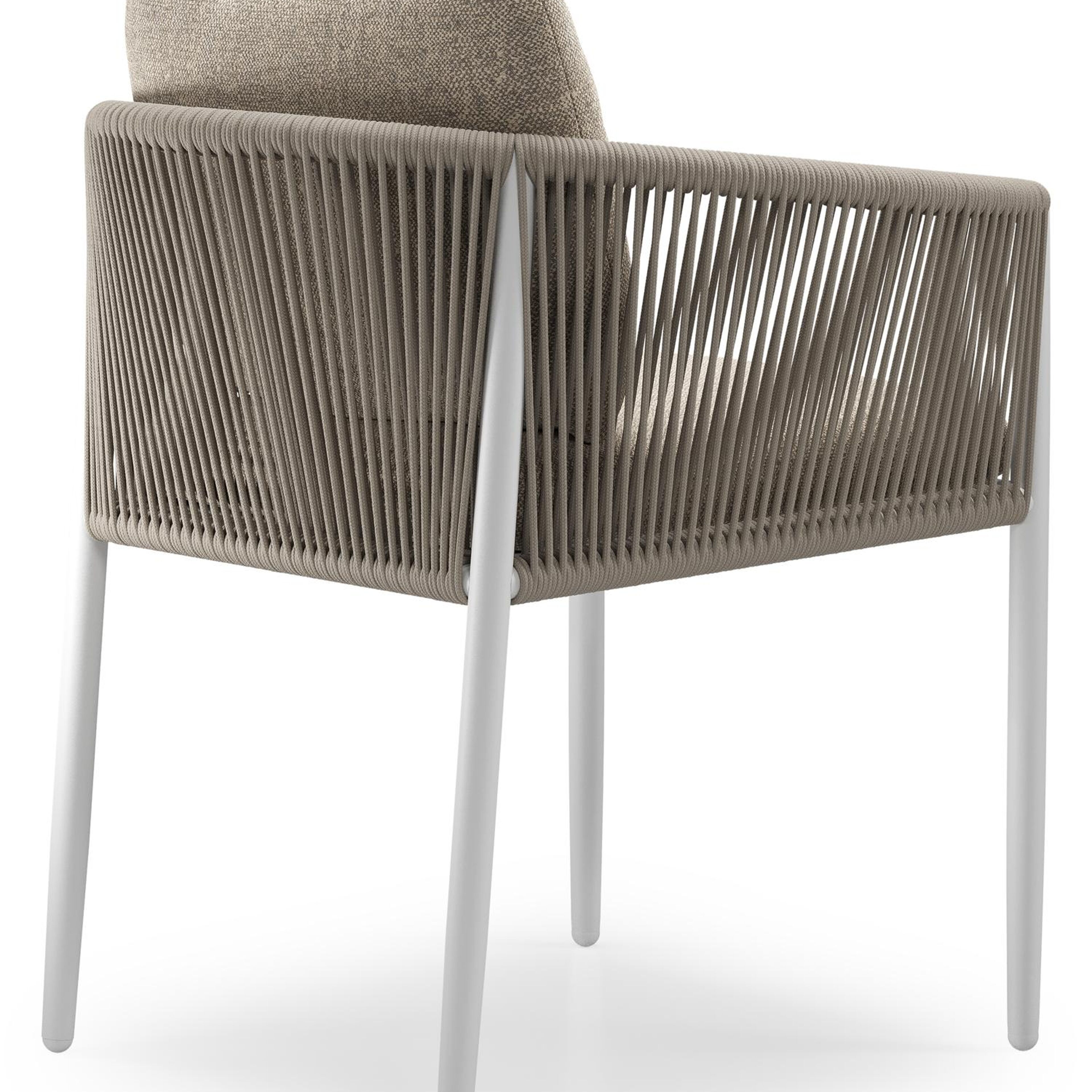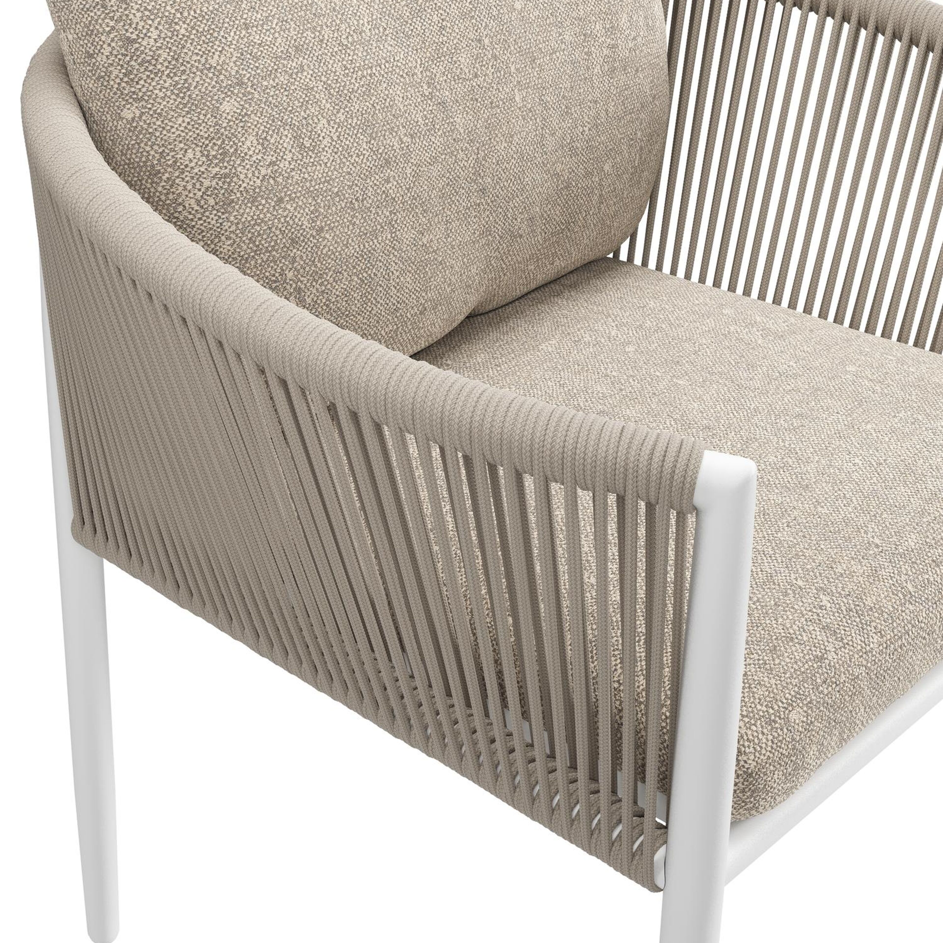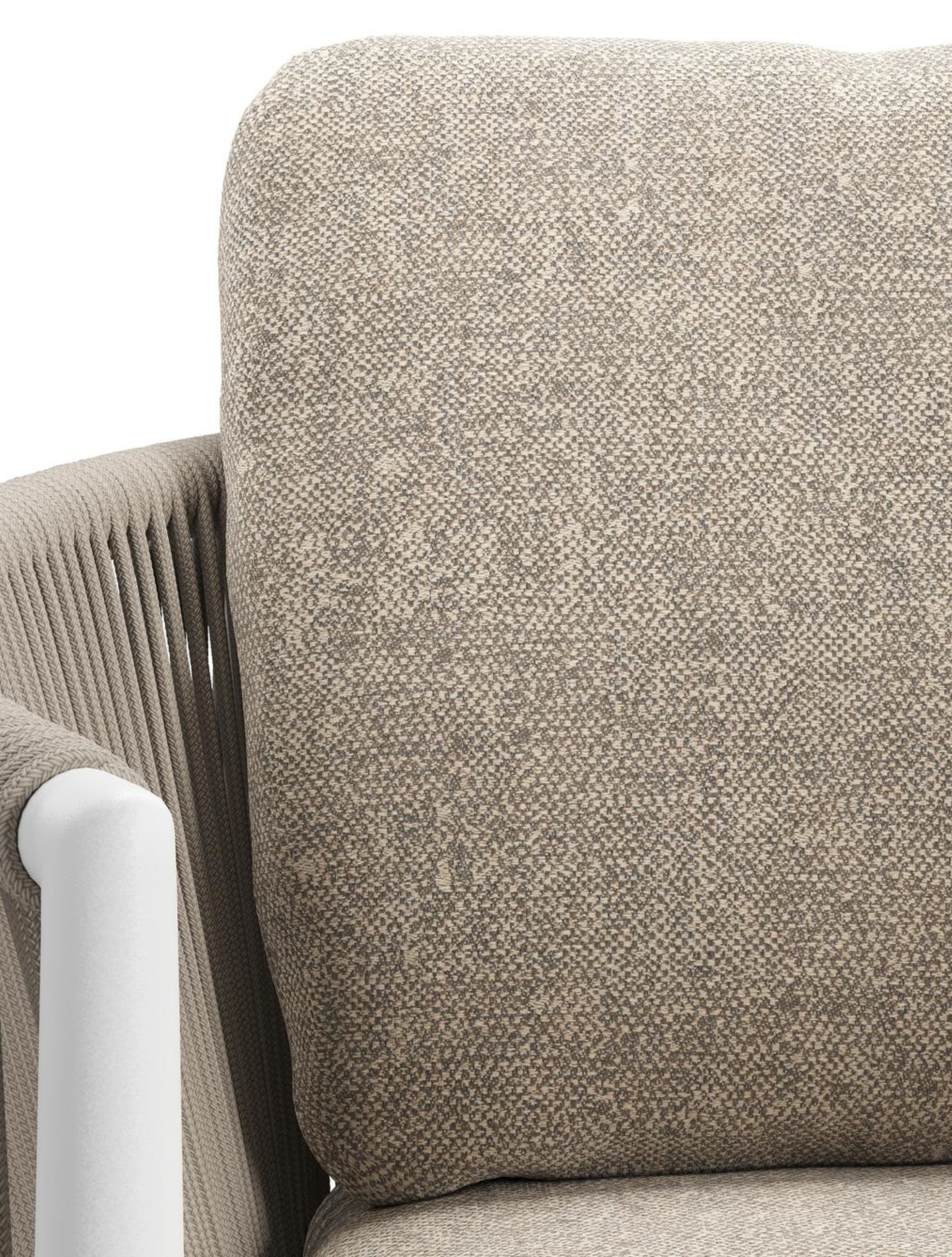 Chaise de jardin Organo en aluminium beige et corde ronde tissée verticalement beige avec coussin en All Weather Sunbrella® Luxe Chartres Pewter | Exterioo mobilier de jardin