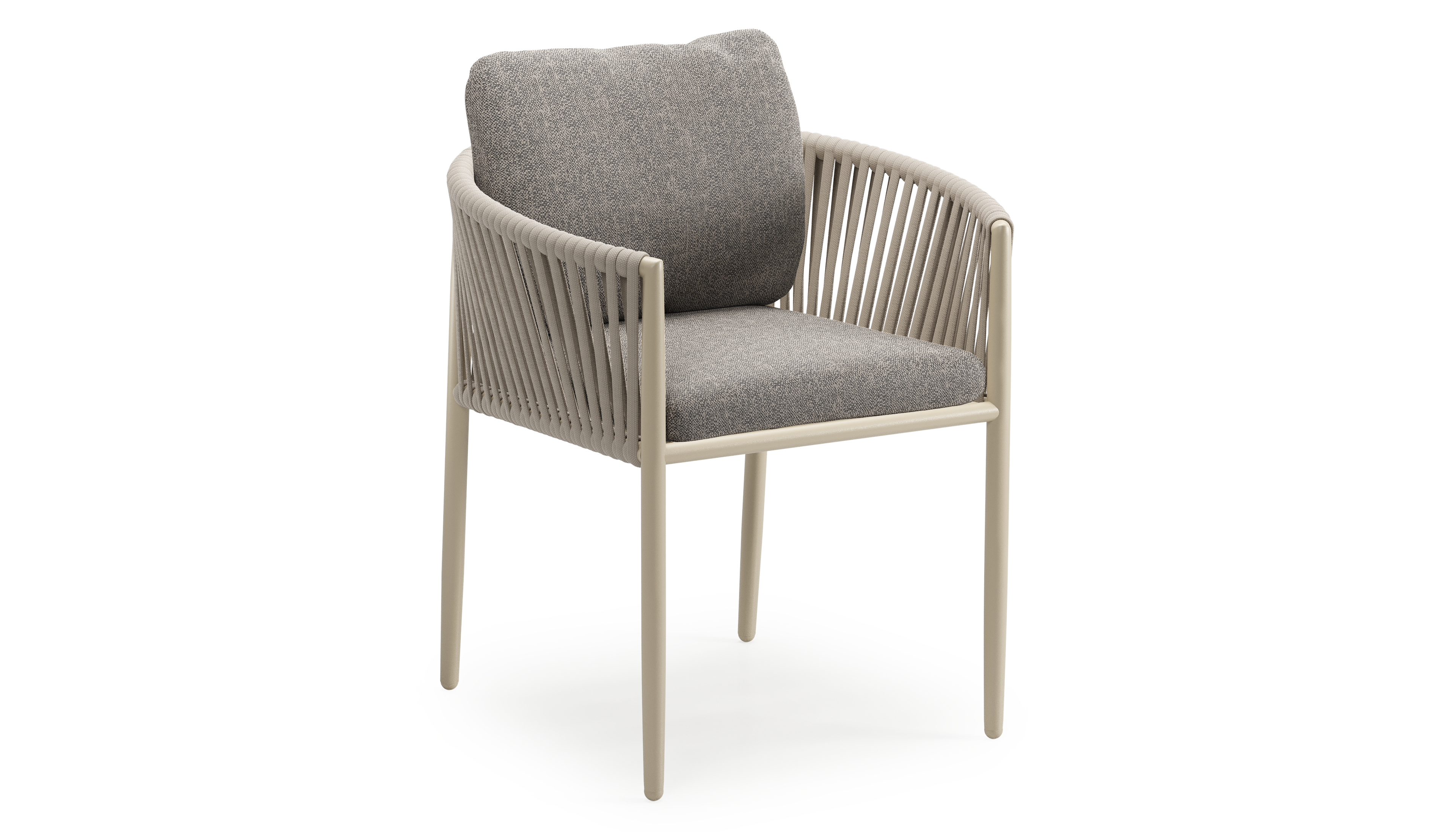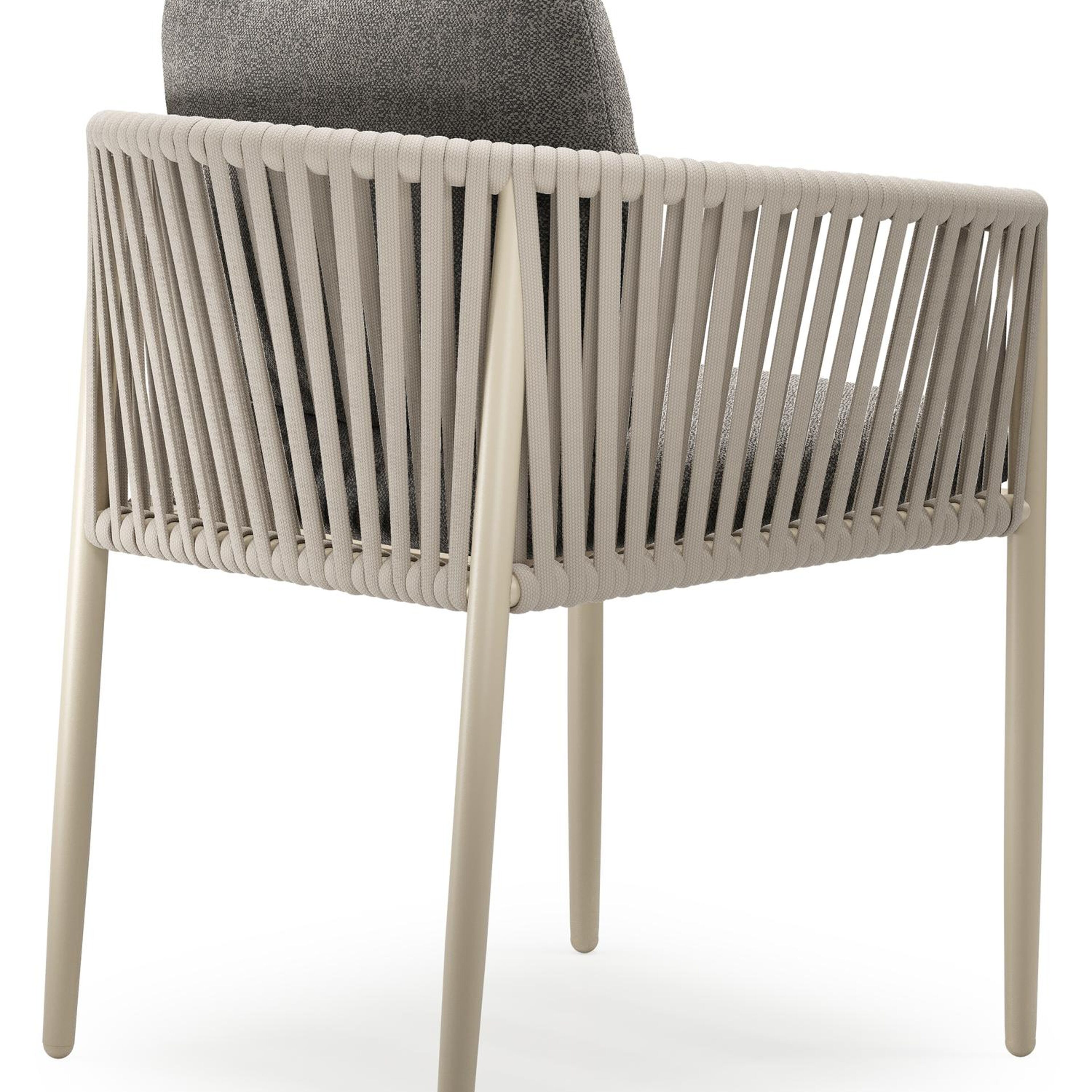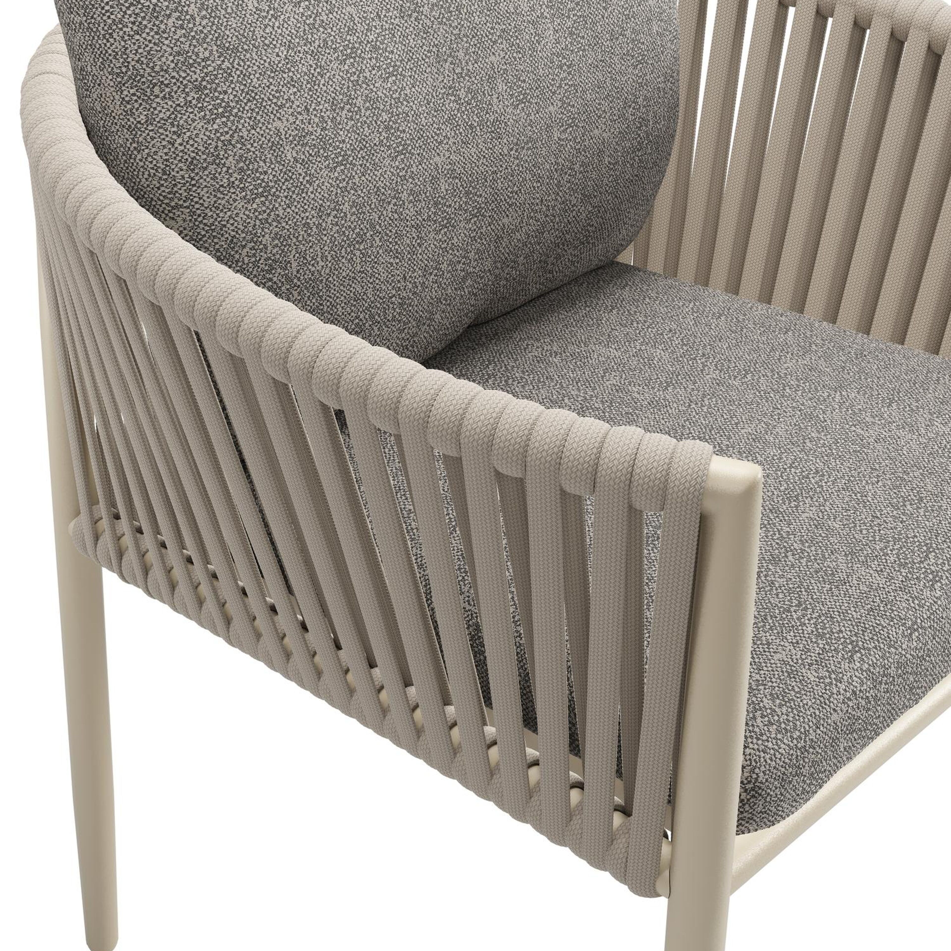 Chaise de jardin Organo en aluminium beige et corde luxe plate tissée verticalement beige avec coussin en All Weather Sunbrella® Luxe Chartres Drizzle | Exterioo mobilier de jardin