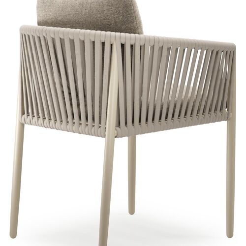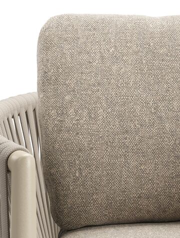 Chaise de jardin Organo en aluminium beige et corde luxe plate beige tissée verticalement avec coussin en All Weather Sunbrella® Luxe Chartres Pewter | Exterioo