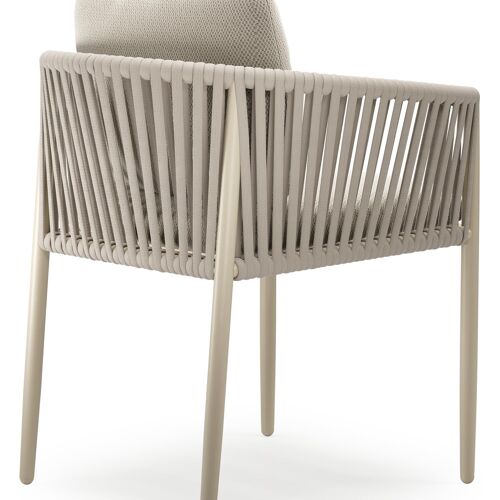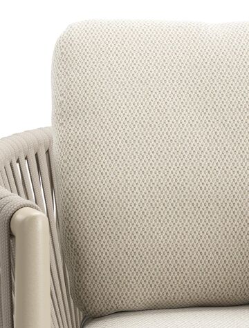 Chaise de jardin Organo en aluminium beige et corde luxe plate beige tissée verticalement avec coussin en marbre All Weather Sunbrella® Luxe Lopi | Exterioo