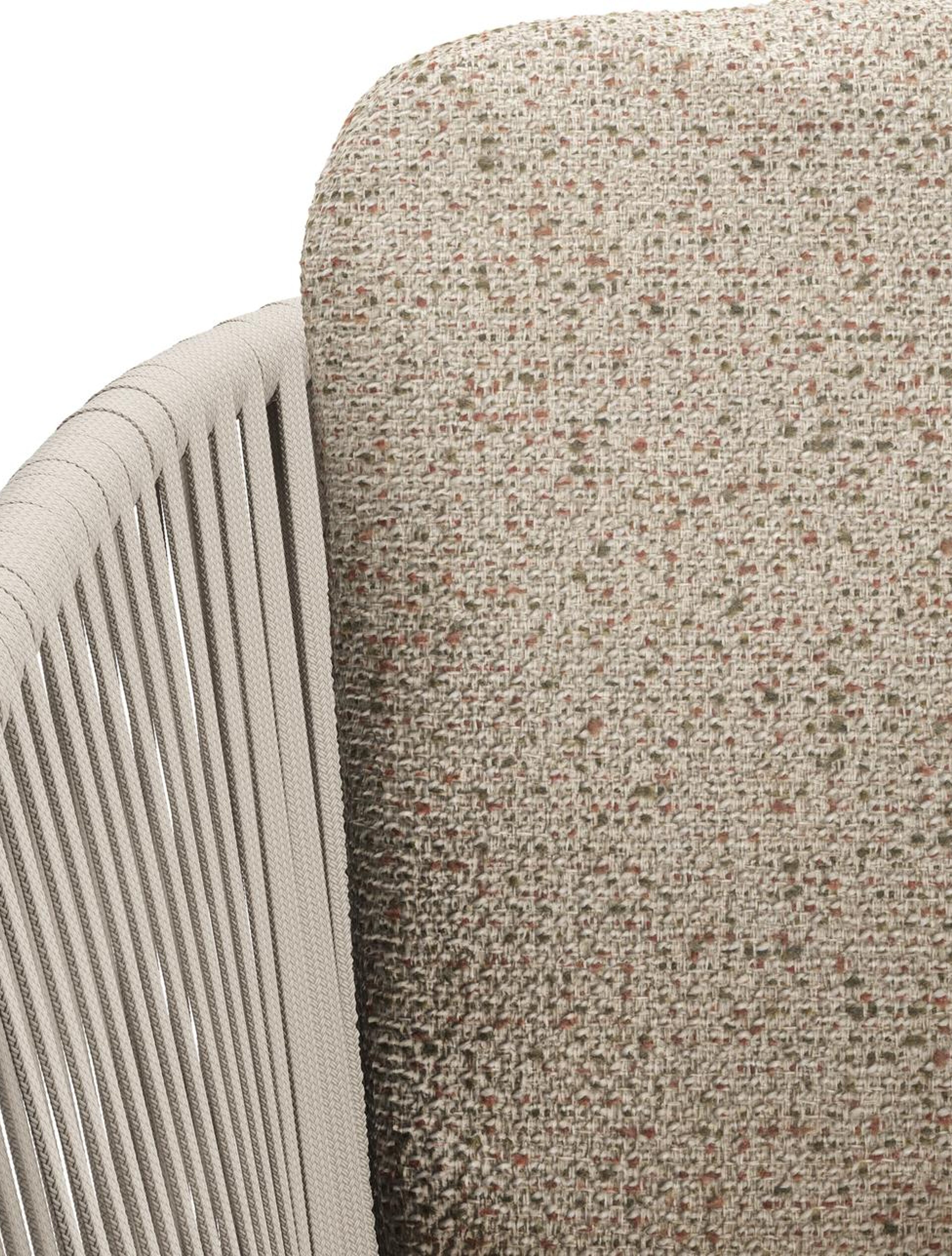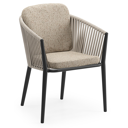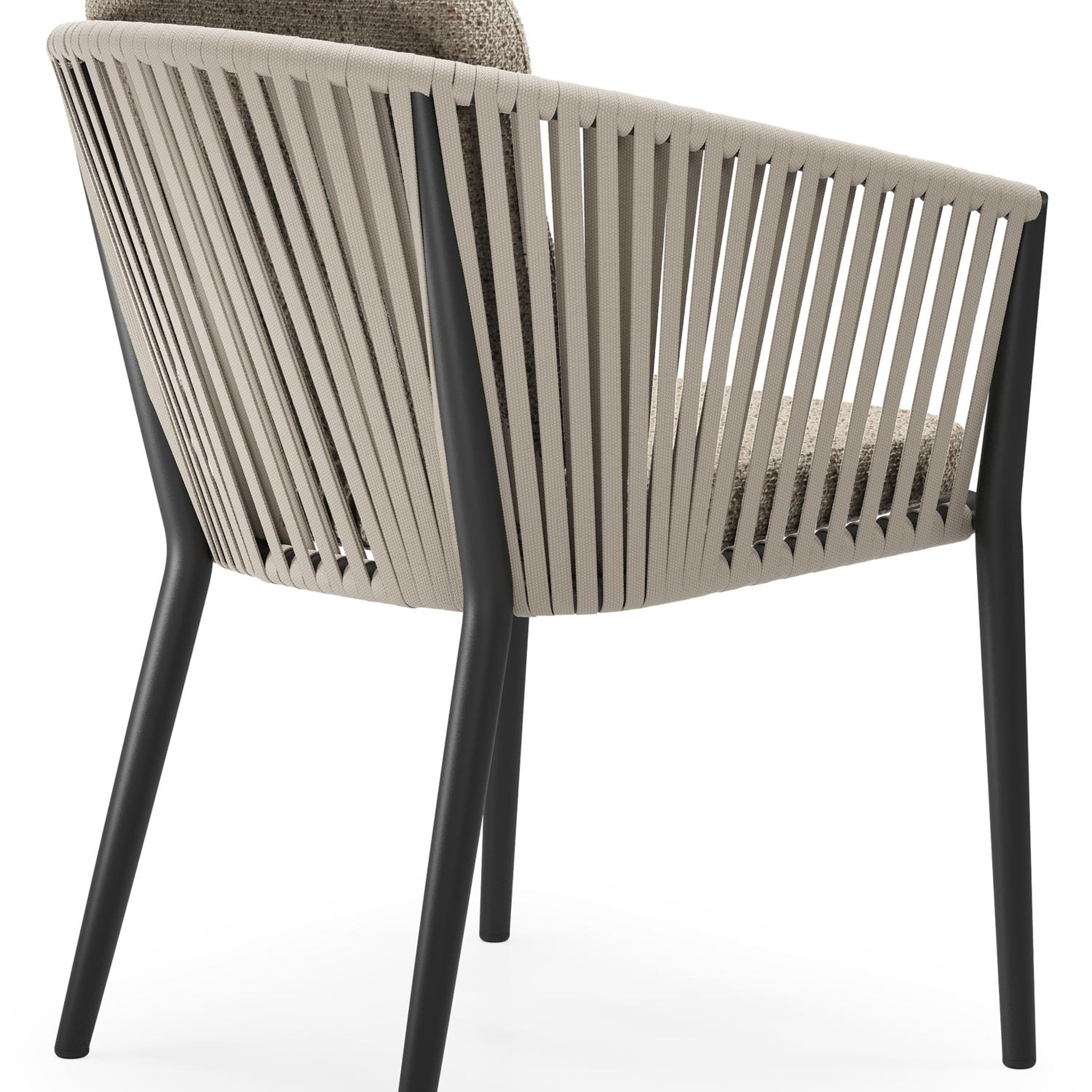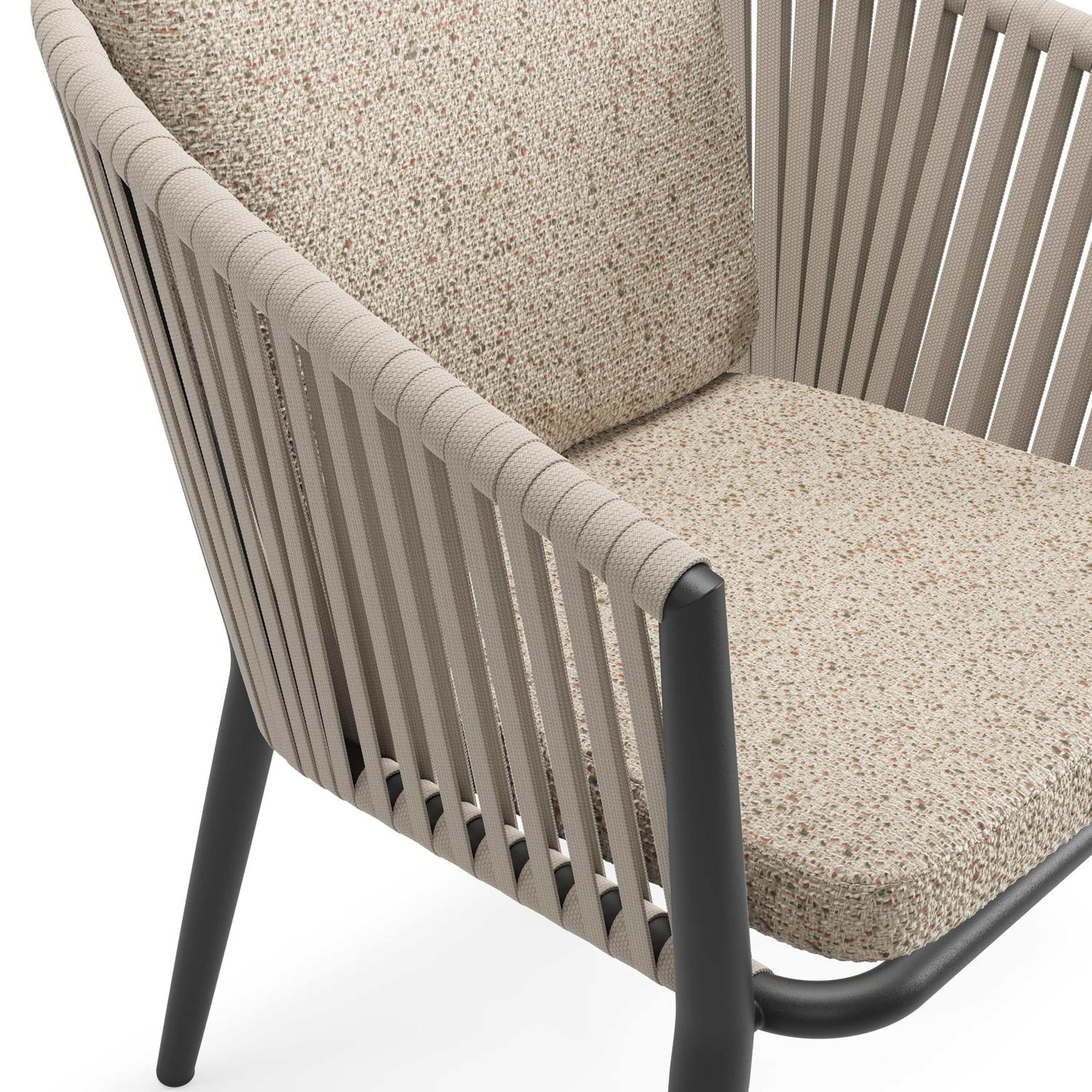 Chaise de jardin Orso en aluminium noir et corde plate tissée verticalement beige avec coussin luxe en All Weather Cosytica Bora Jungle | Exterioo mobilier de jardin
