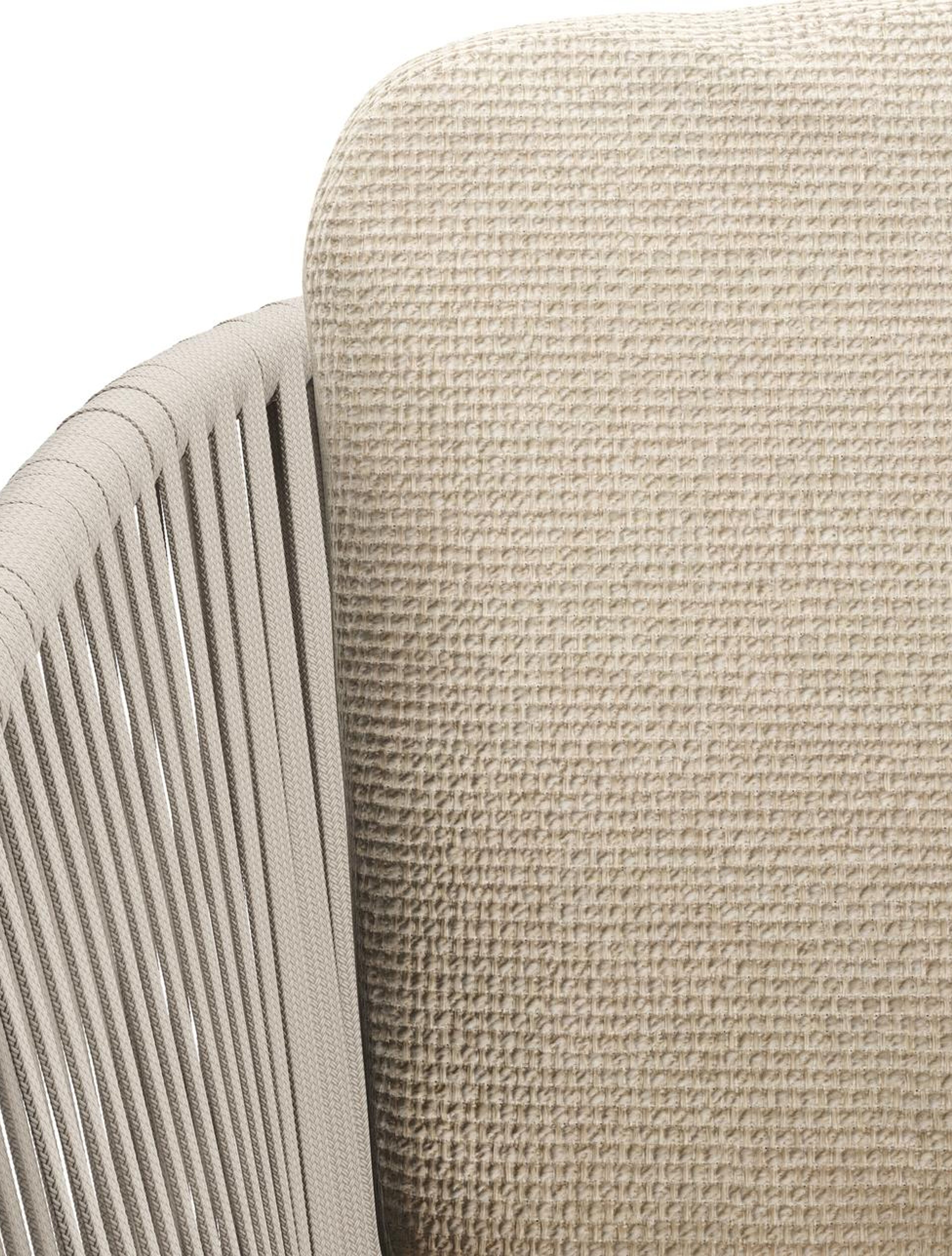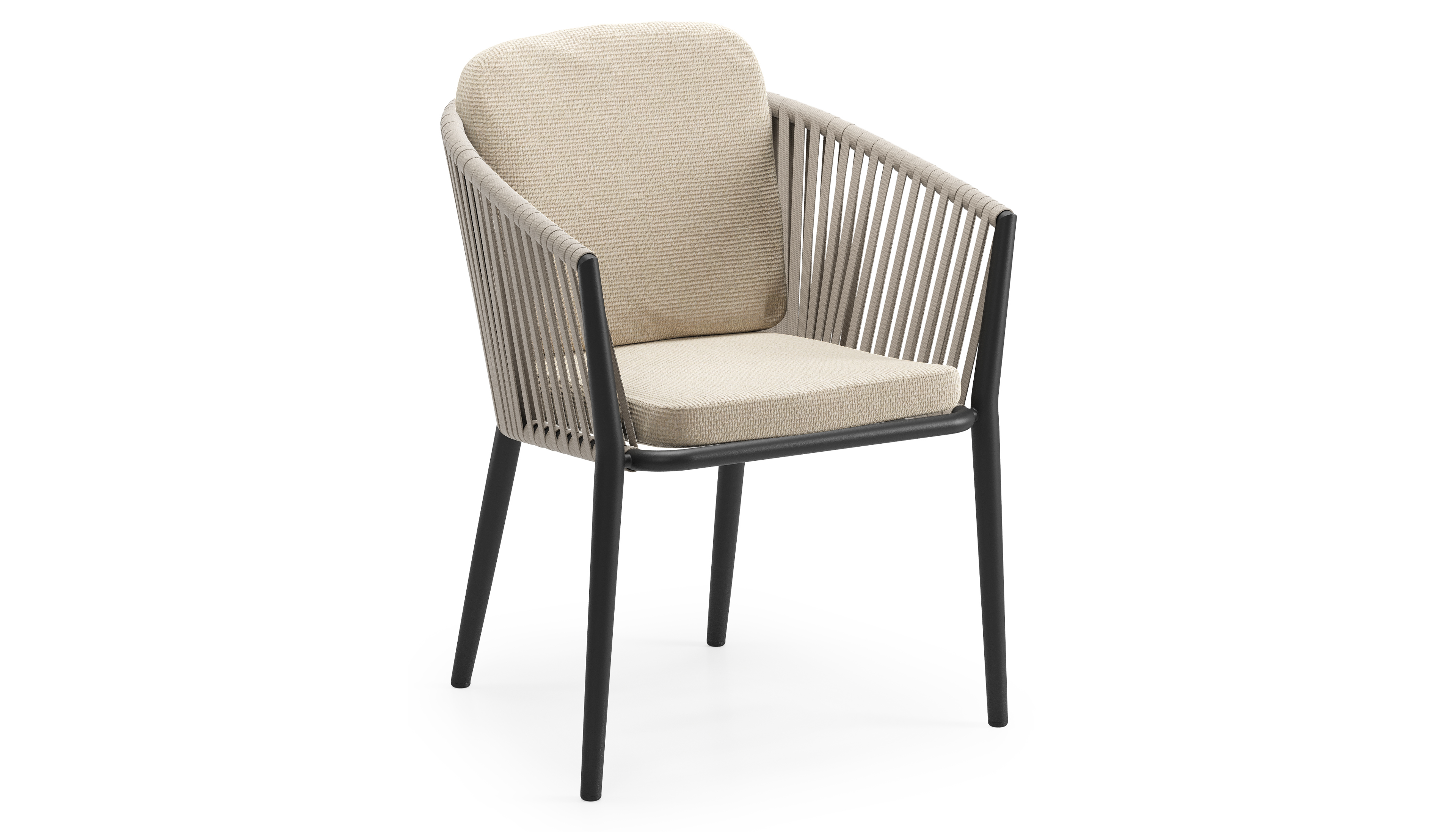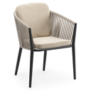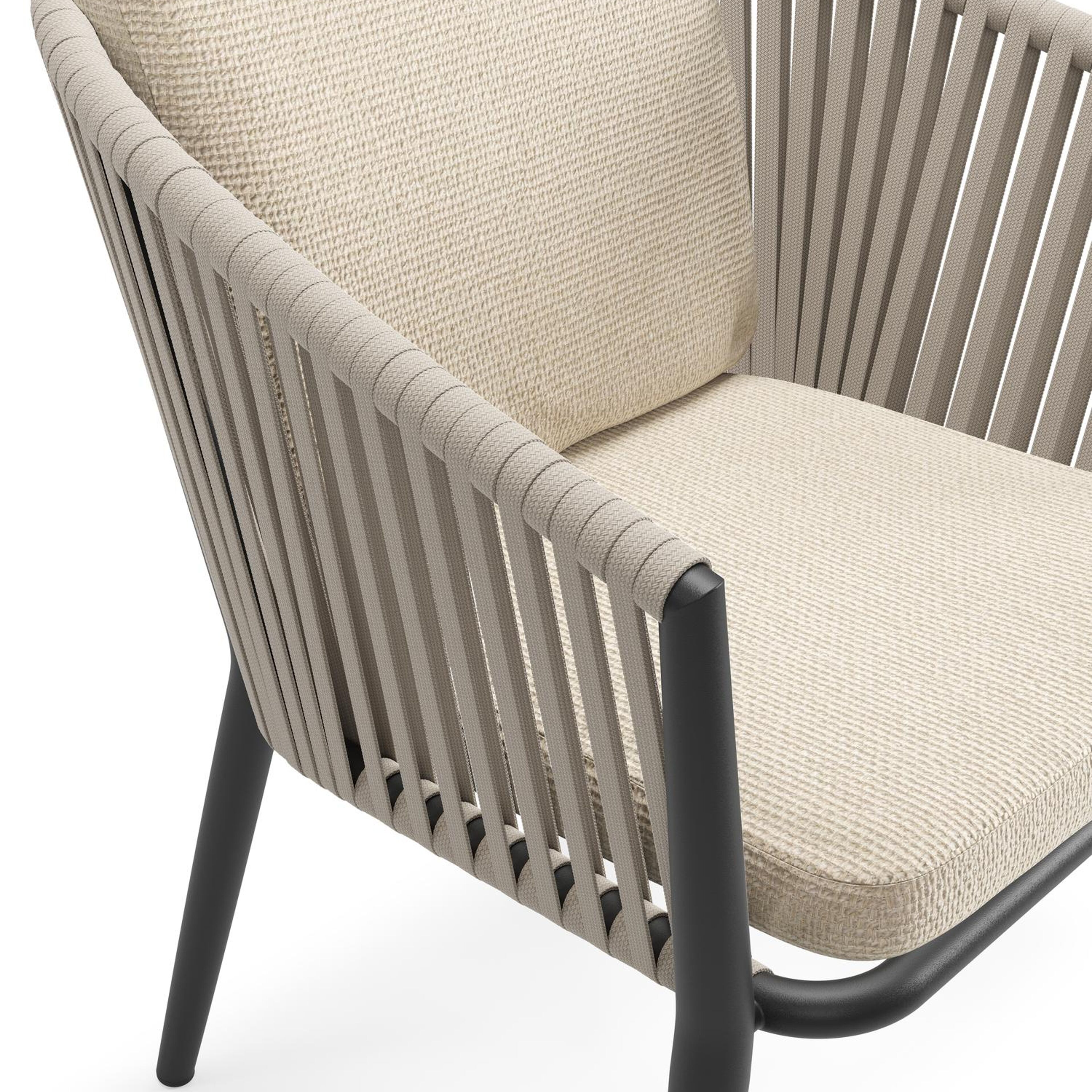 Chaise de jardin Orso en aluminium noir et corde plate tissée verticalement beige avec coussin luxe en All Weather Cosytica Althea Chalk | Exterioo mobilier de jardin