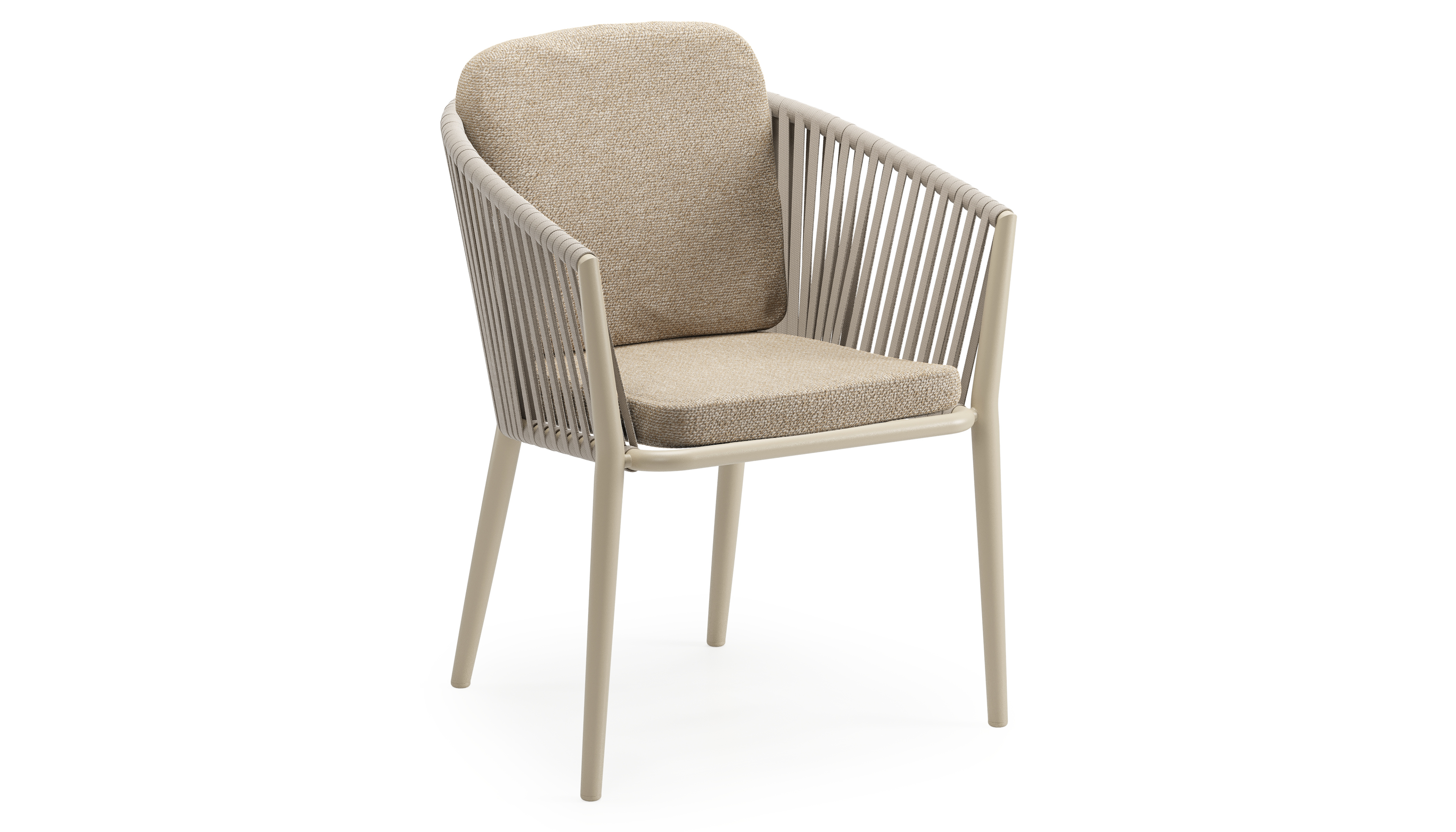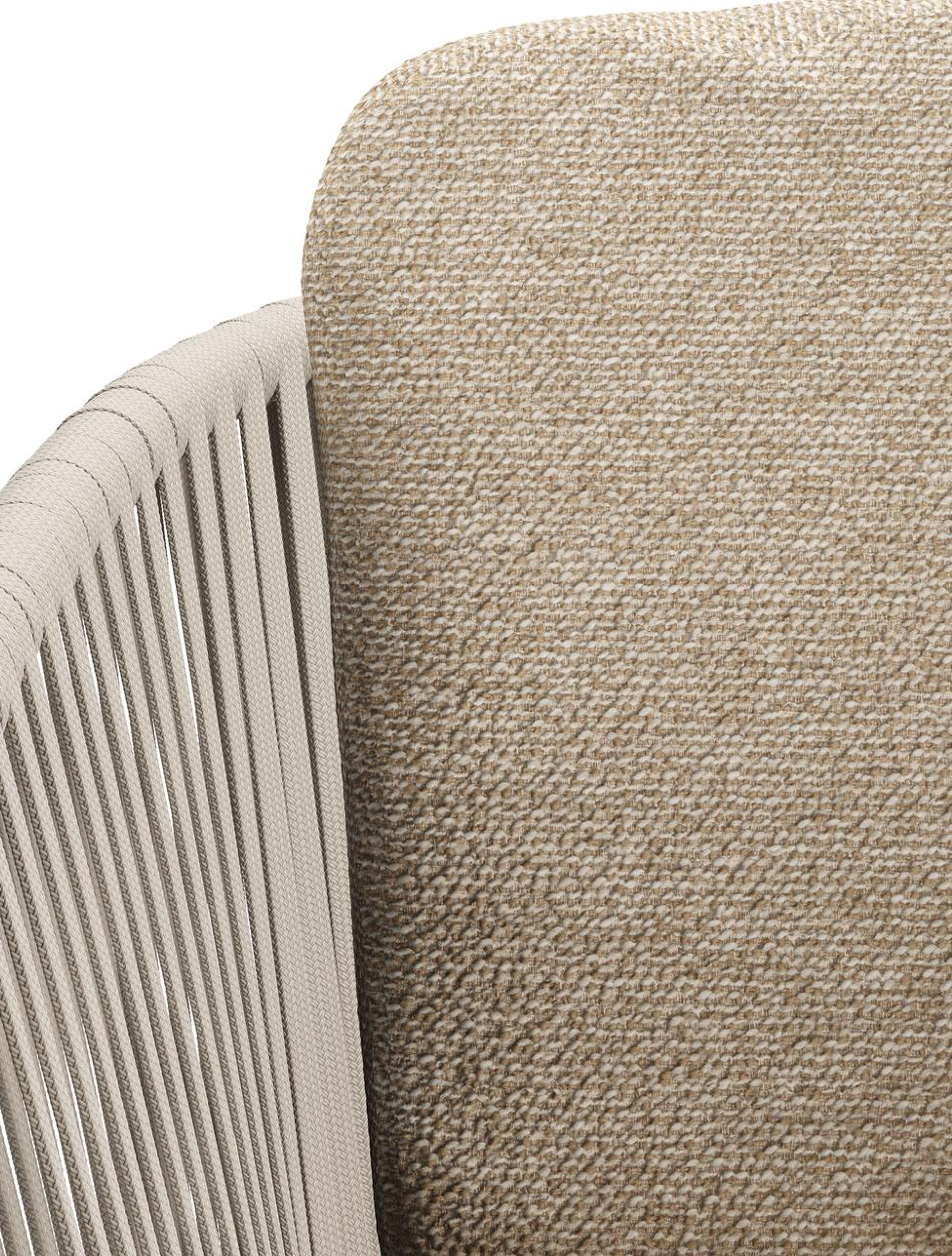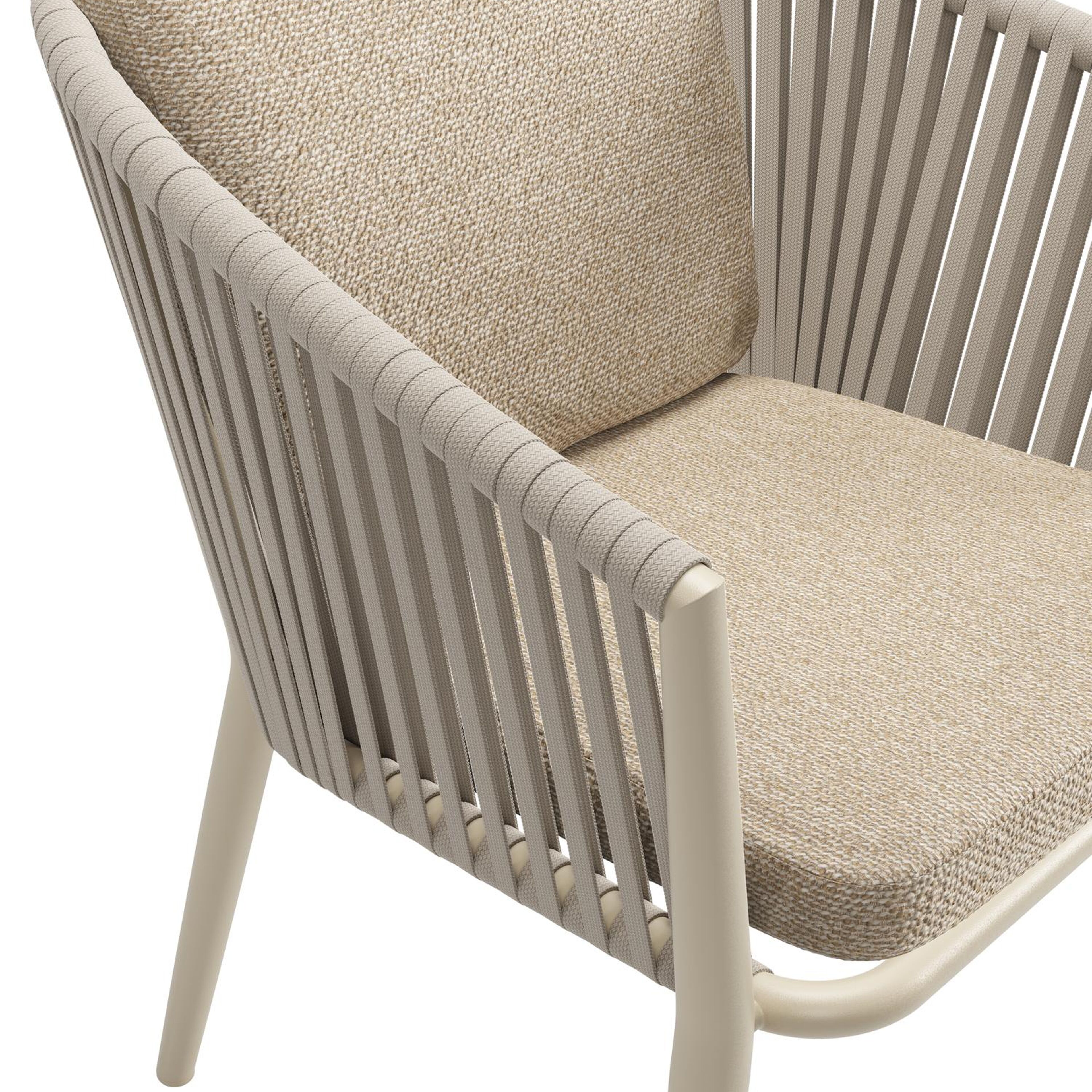 Chaise de jardin Orso en aluminium beige et corde plate tissée verticalement beige avec coussin luxe en All Weather Cosytica Madagascar Oak | Exterioo mobilier de jardin