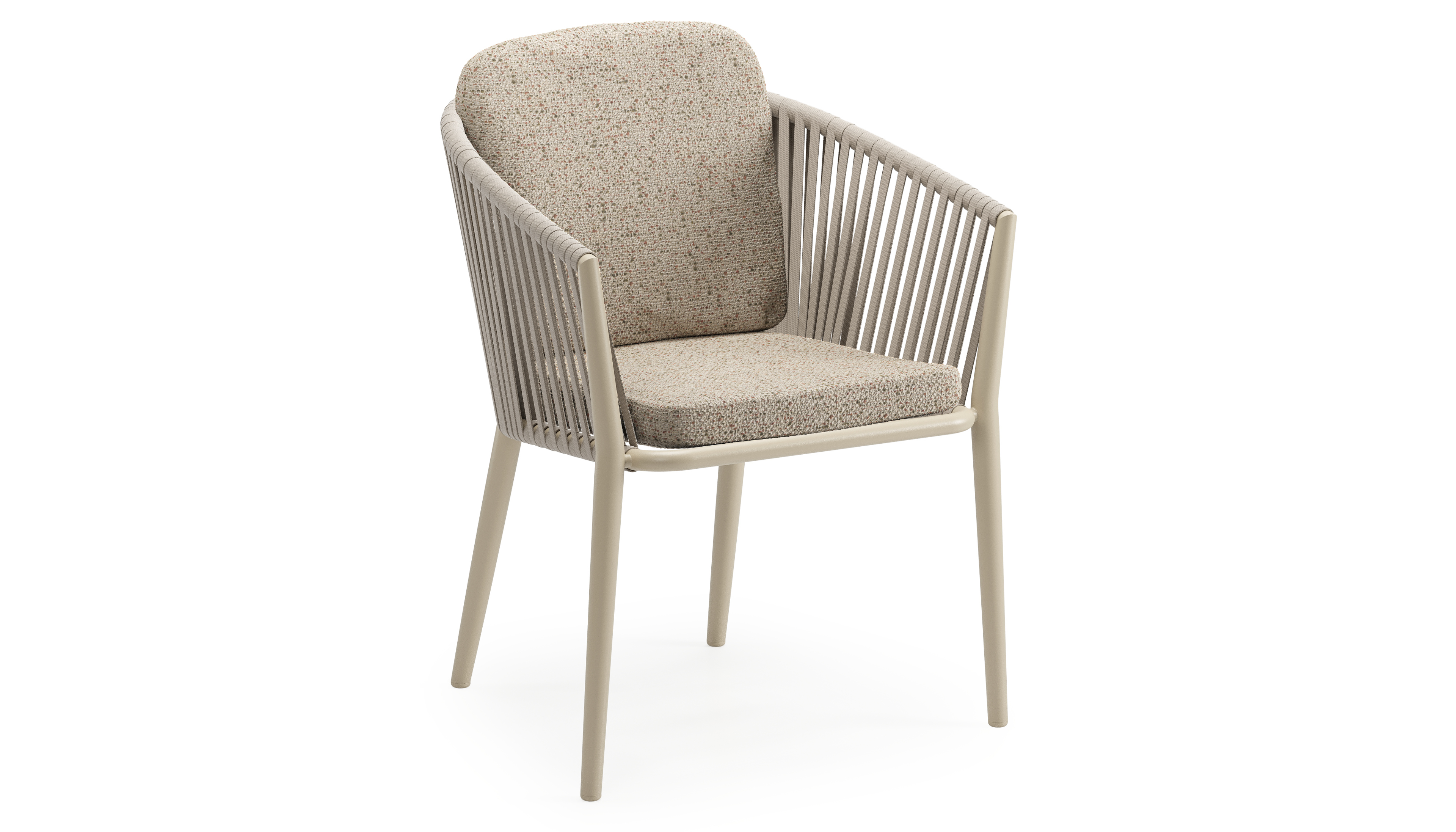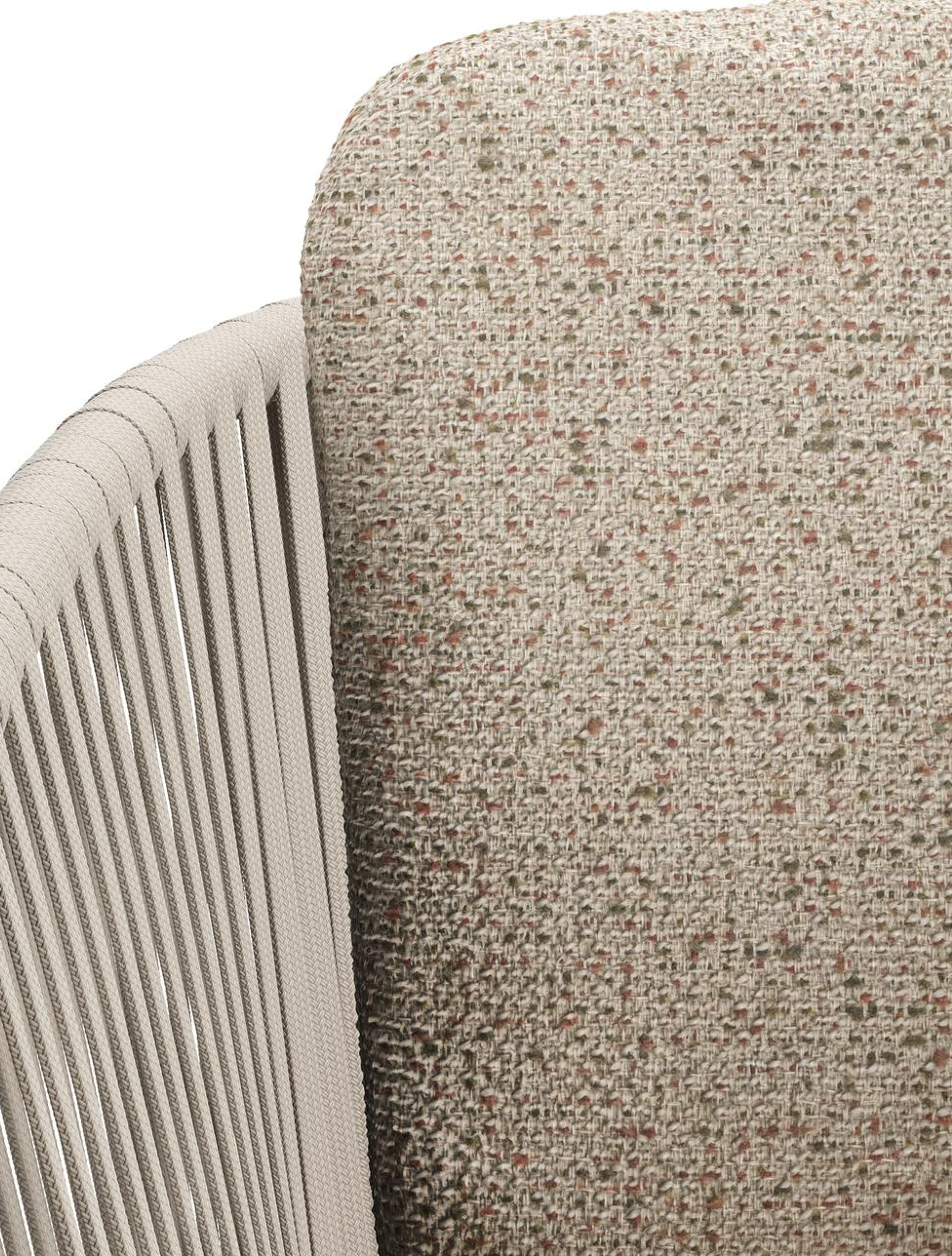Chaise de jardin Orso en aluminium beige et corde plate tissée verticalement beige avec coussin luxe en All Weather Cosytica Bora Jungle | Exterioo mobilier de jardin