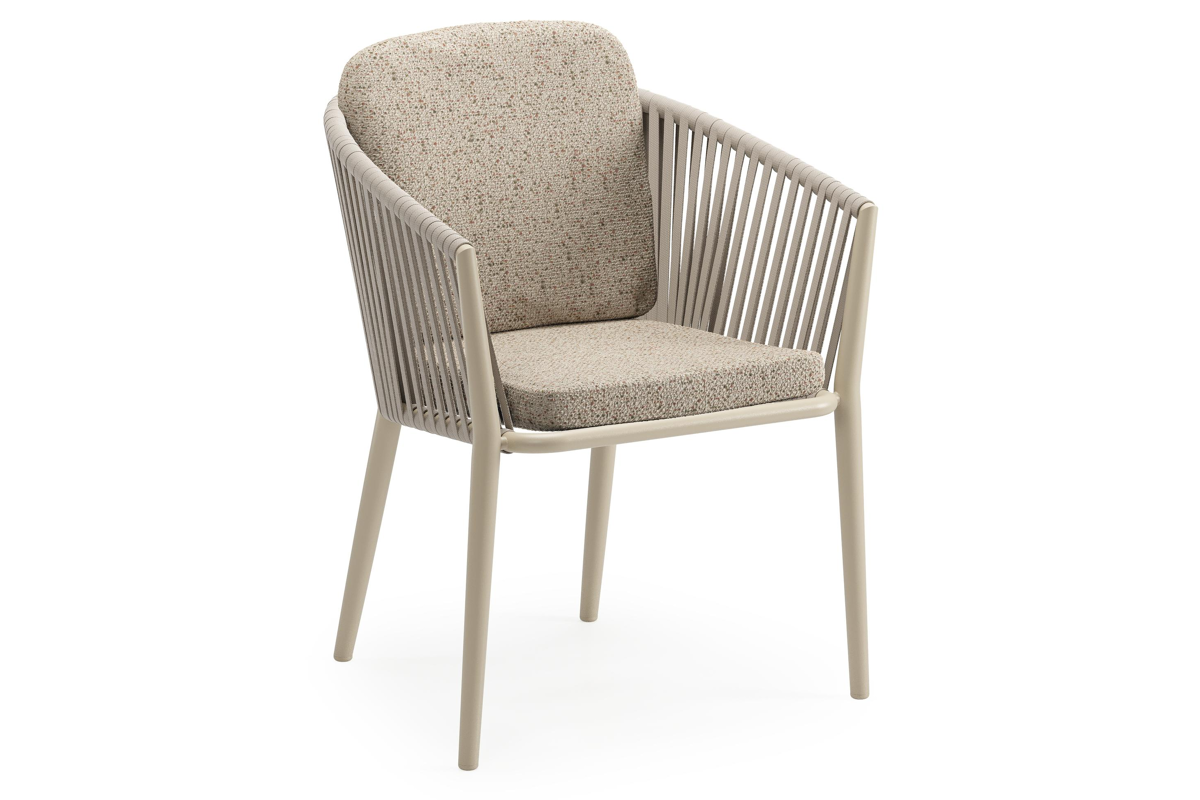 Chaise de jardin Orso en aluminium beige et corde plate tissée verticalement beige avec coussin luxe en All Weather Cosytica Bora Jungle | Exterioo