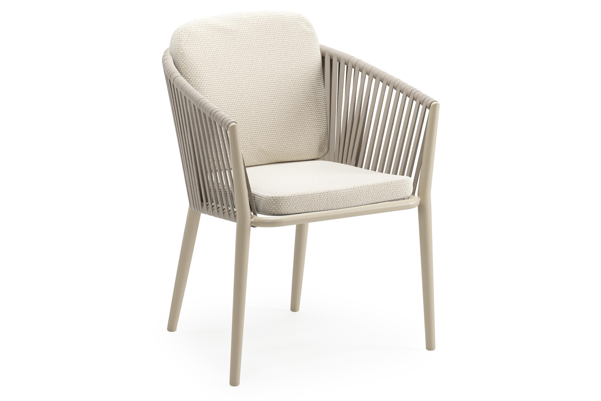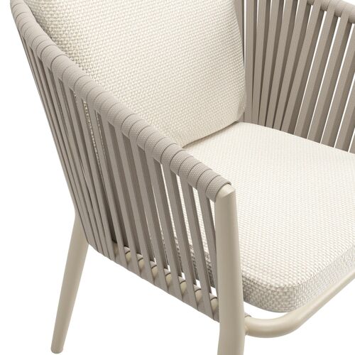 Chaise de jardin Orso en aluminium beige et corde plate tissée verticalement beige avec coussin luxe en All Weather Cosytica Althea Off White | Exterioo