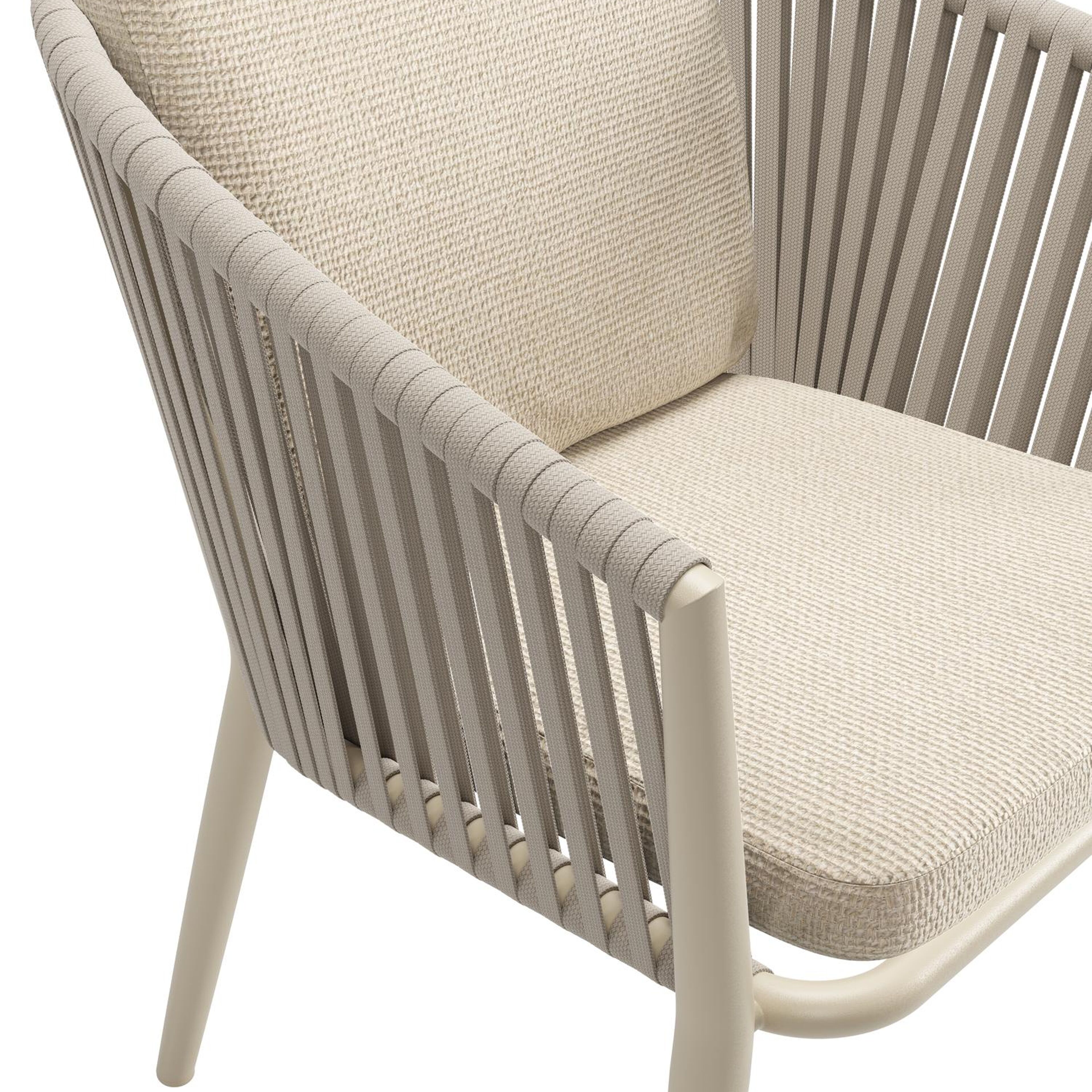 Chaise de jardin Orso en aluminium beige et corde plate tissée verticalement beige avec coussin luxe en All Weather Cosytica Althea Chalk | Exterioo mobilier de jardin