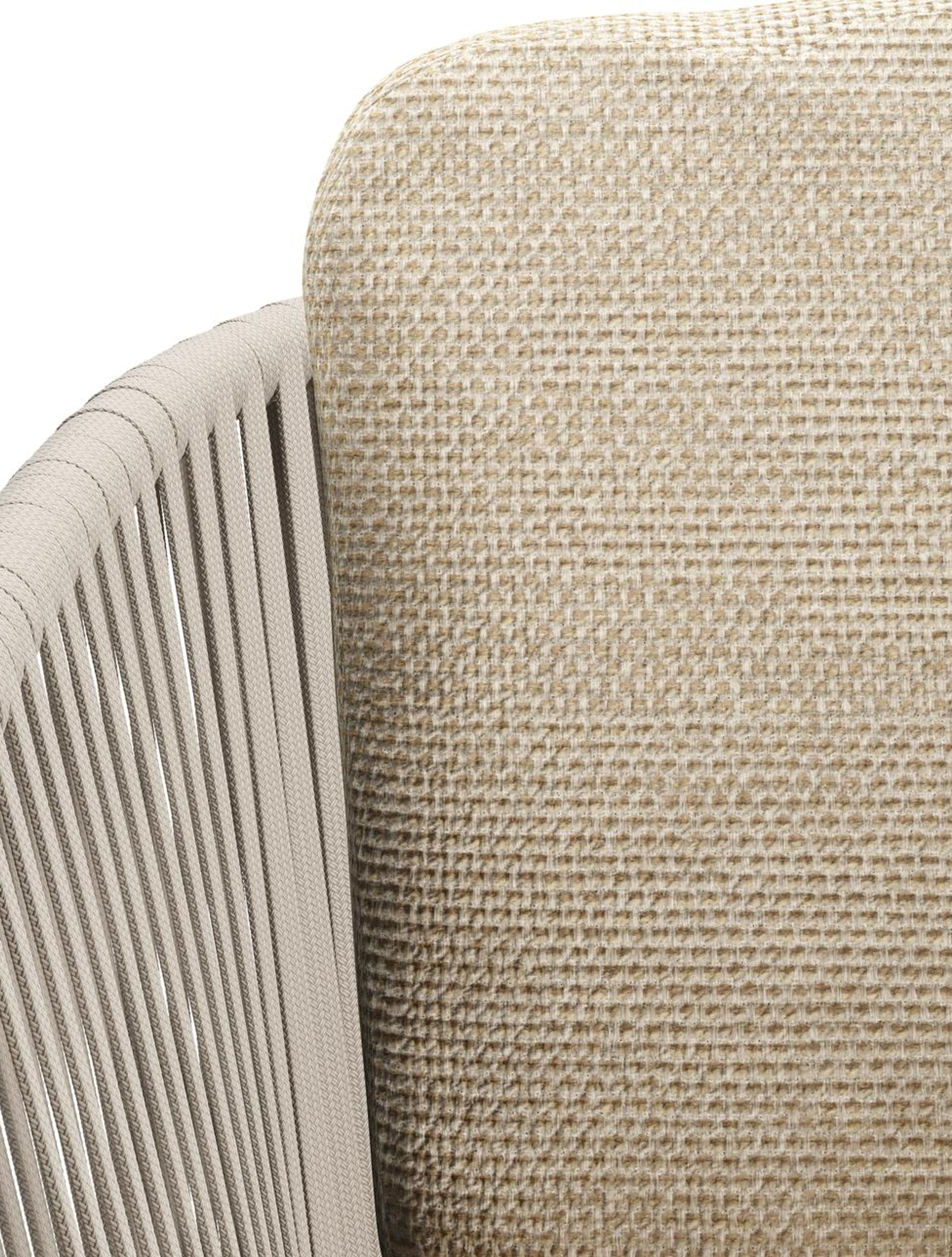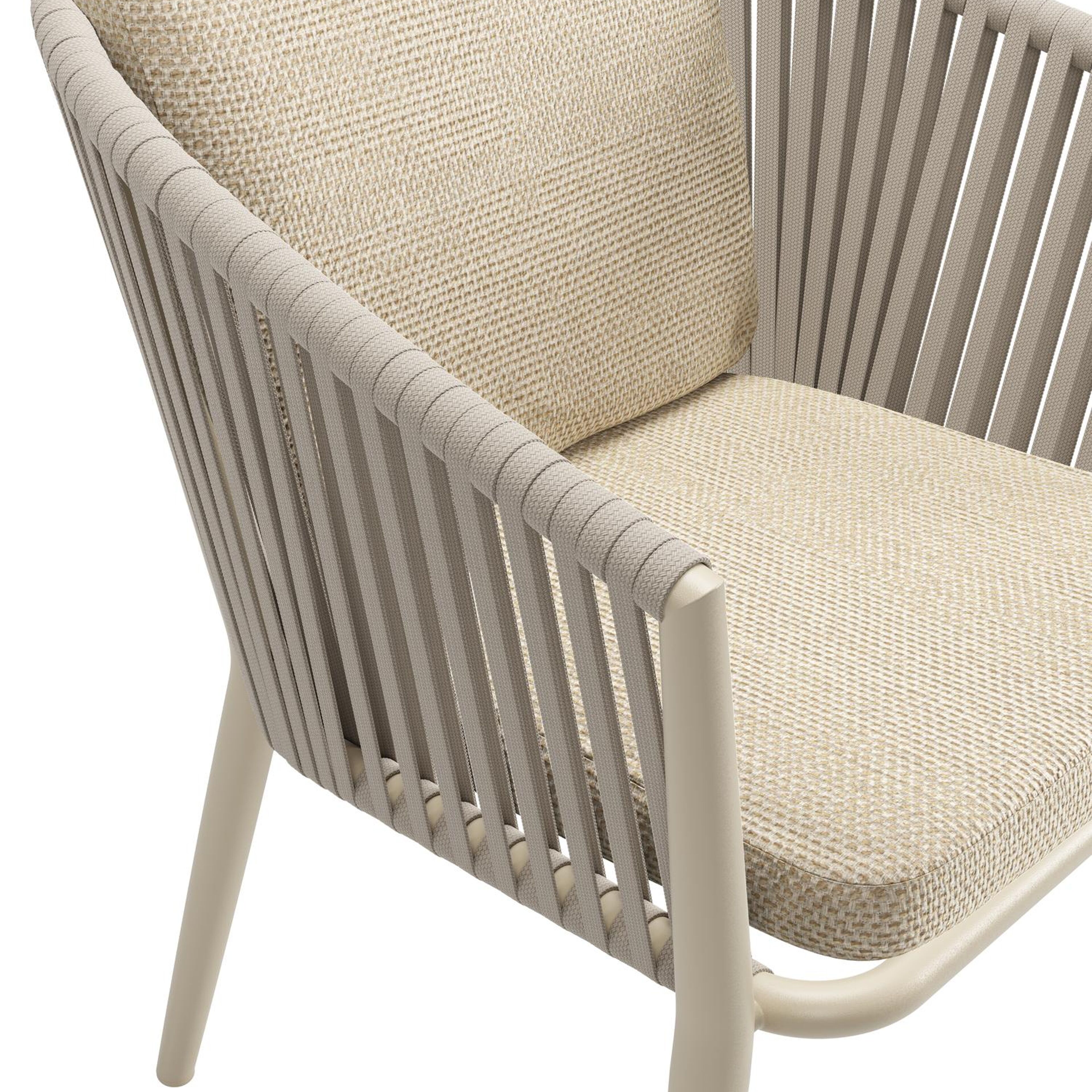 Chaise de jardin Orso en aluminium beige et corde plate tissée verticalement beige avec coussin luxe en All Weather Cosytica Althea Camel | Exterioo mobilier de jardin