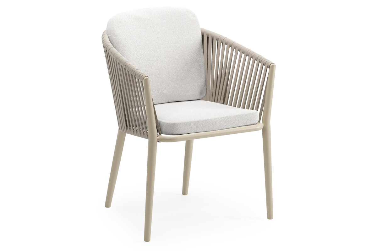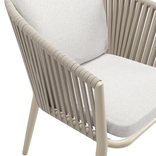 Chaise de jardin Orso en aluminium beige et corde plate tissée verticalement beige avec coussin luxe en All Weather Solica Soul Optik | Exterioo