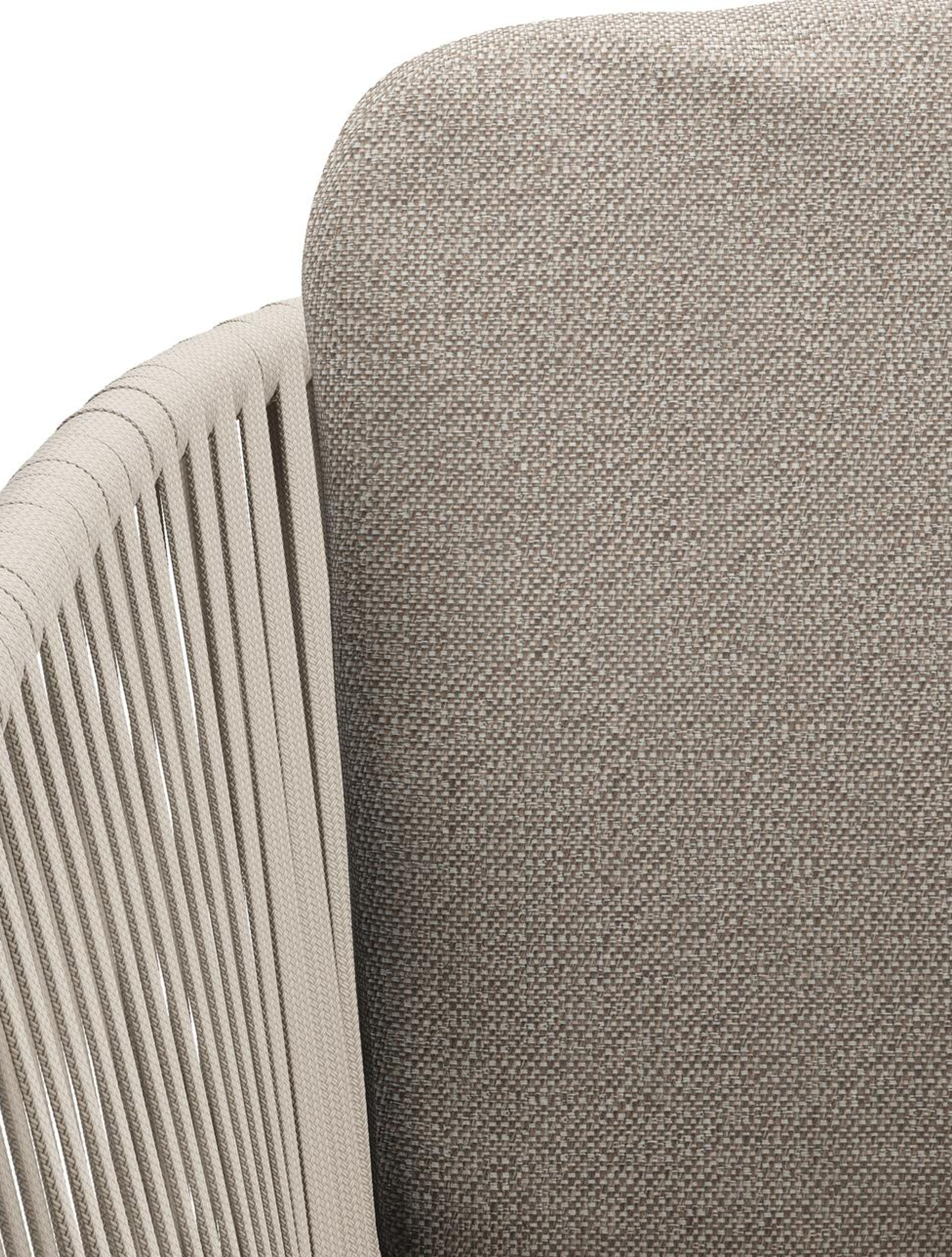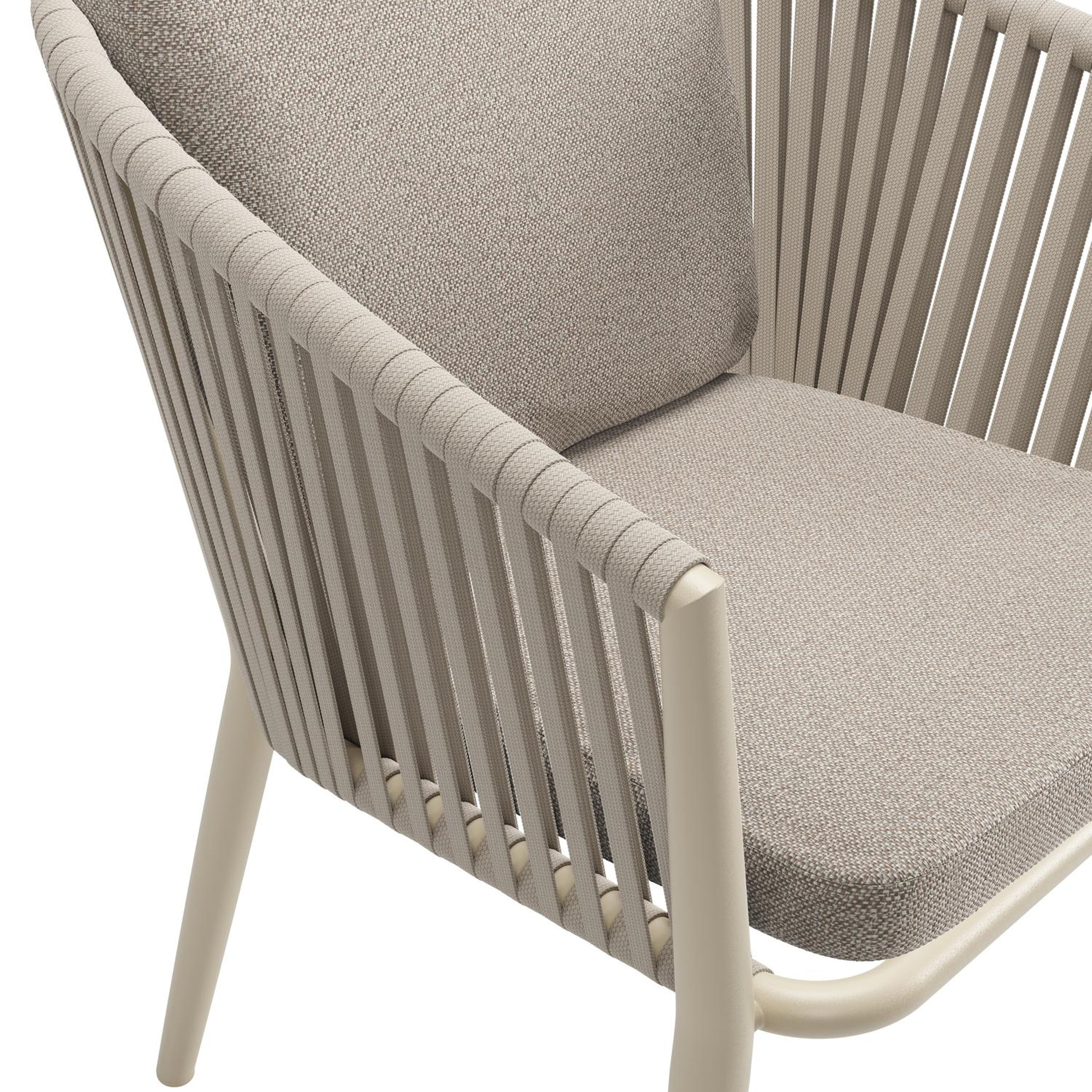 Chaise de jardin Orso en aluminium beige et corde plate tissée verticalement beige avec coussin luxe en All Weather Sunbrella® Luxe Savane Coconut | Exterioo mobilier de jardin