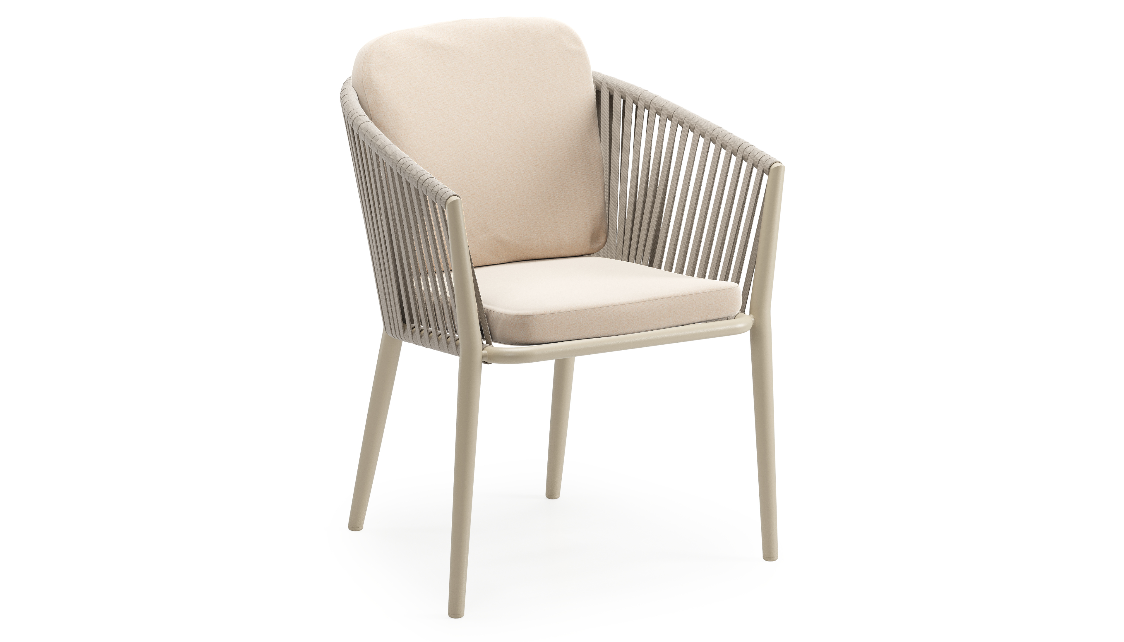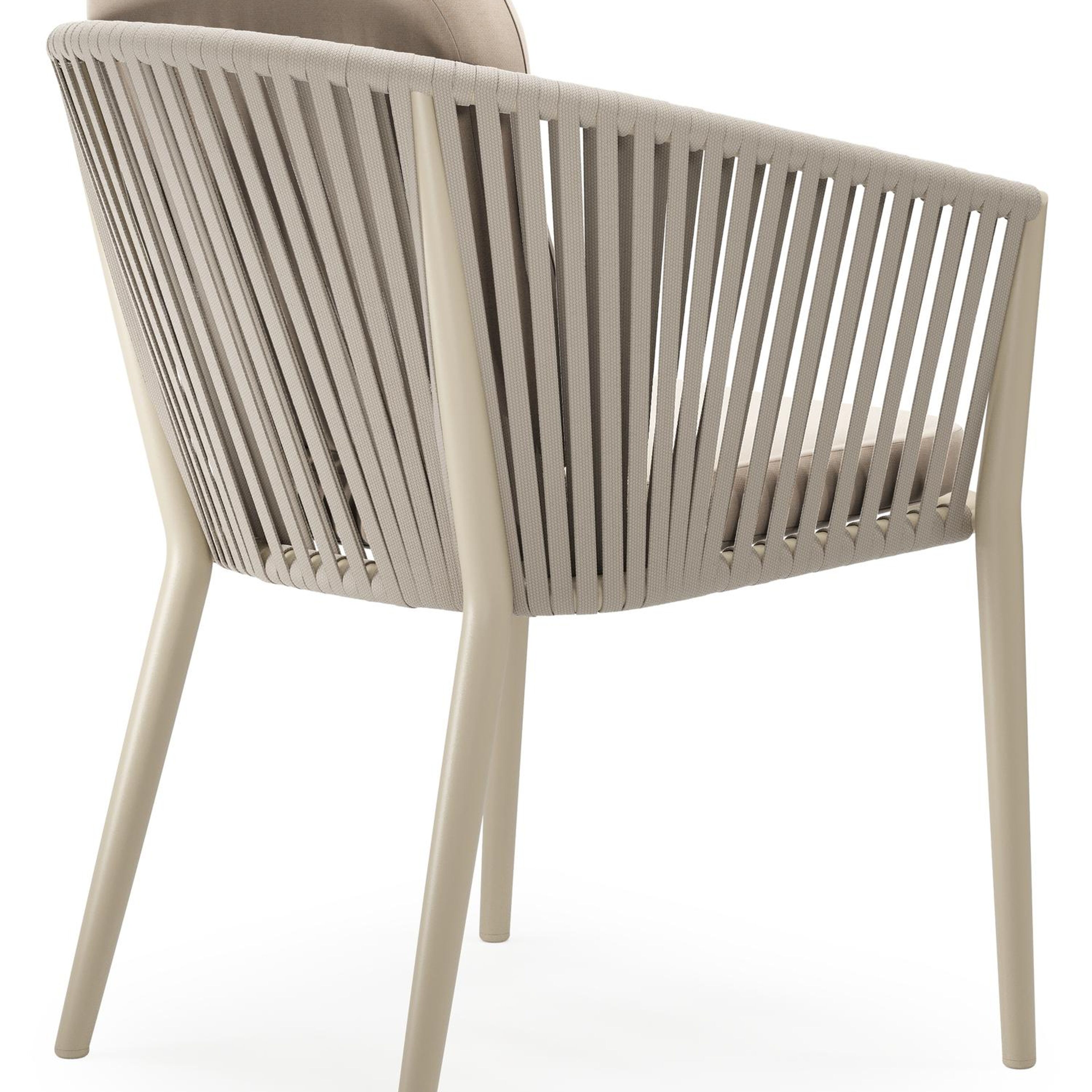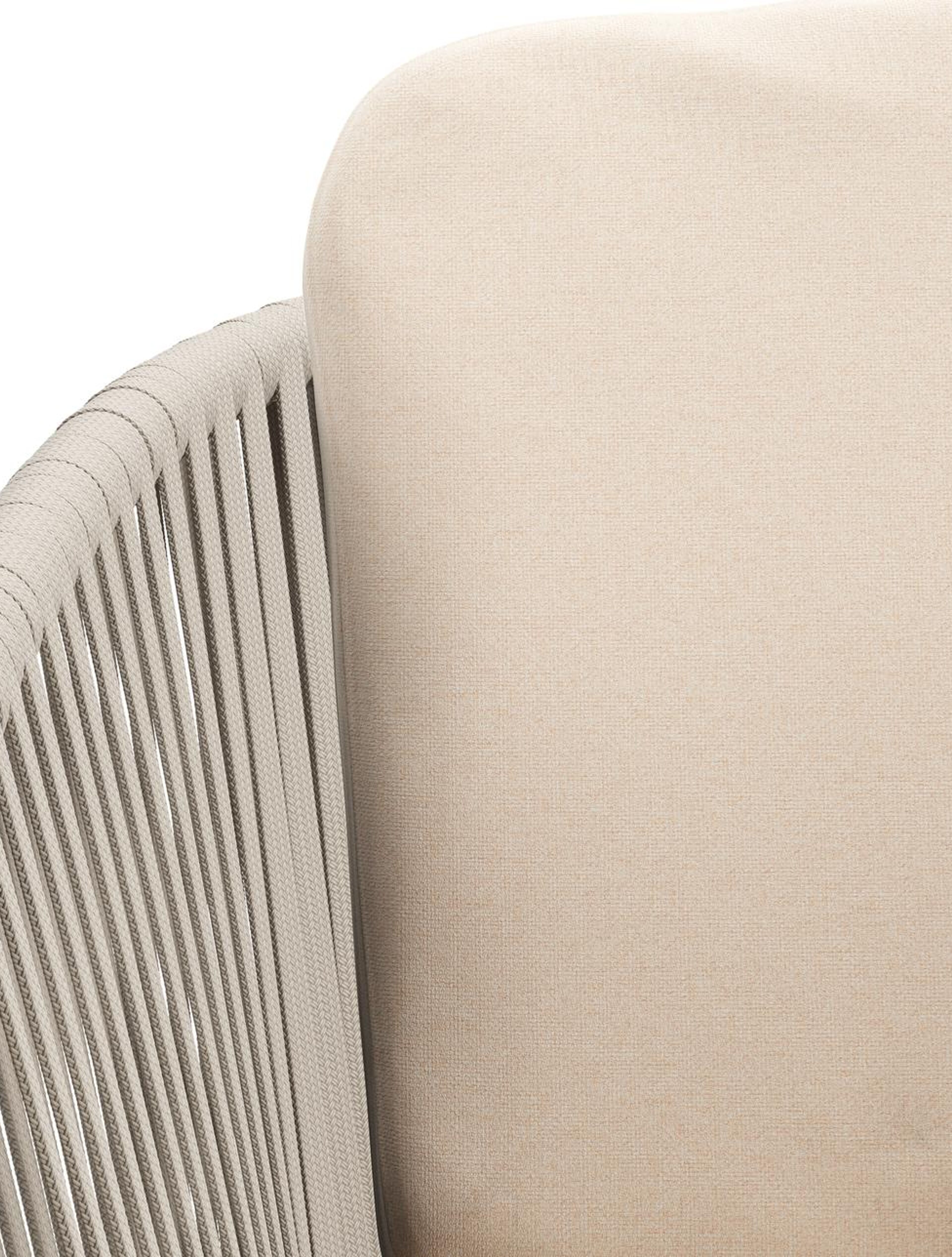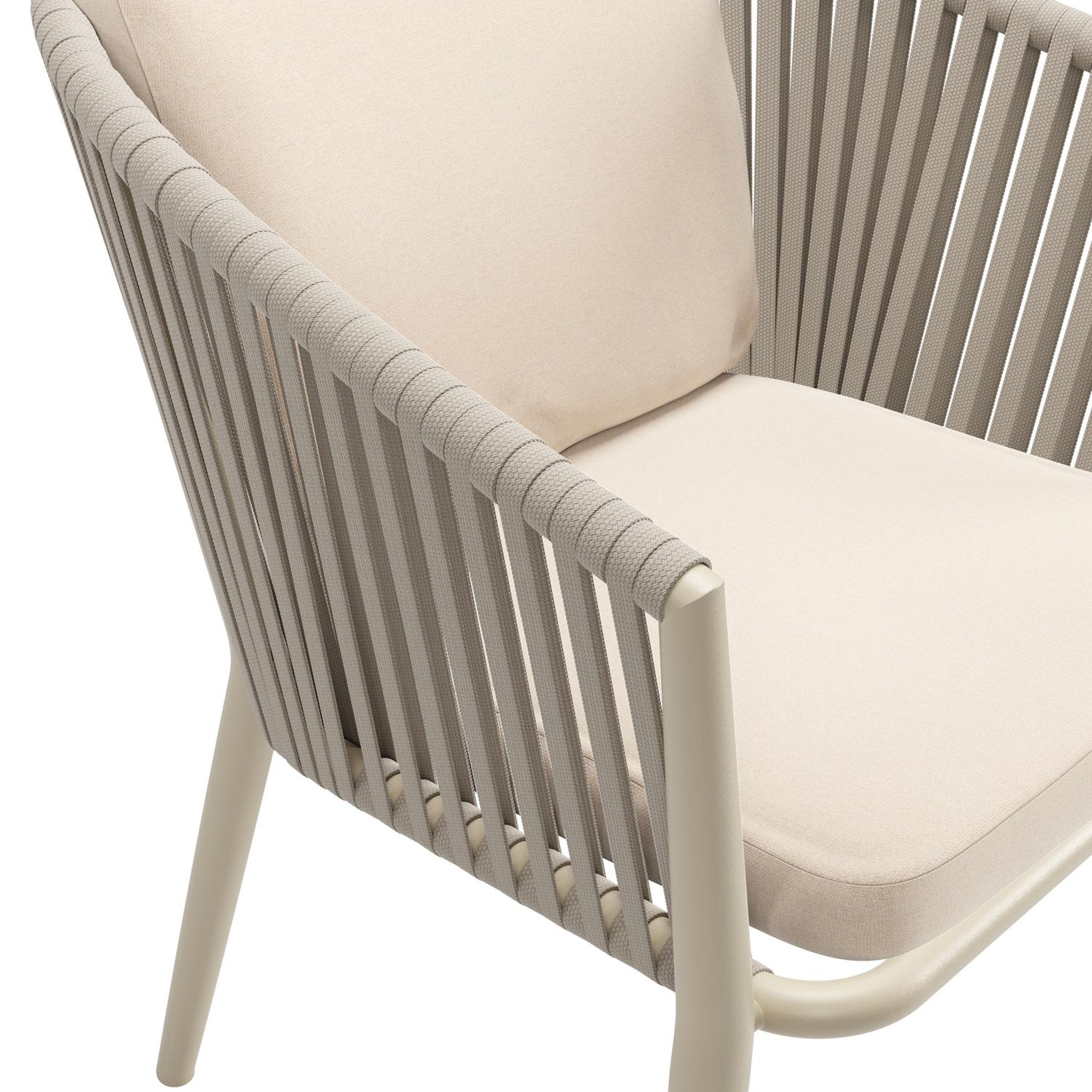 Chaise de jardin Orso en aluminium beige et corde plate tissée verticalement beige avec coussin luxe en All Weather Sunbrella® Luxe Natte Linen Chalk | Exterioo mobilier de jardin